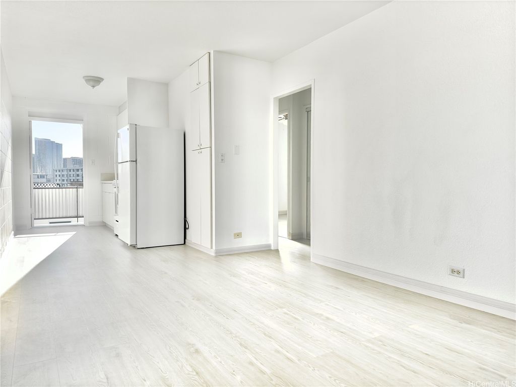 Conveniently located and newly renovated condo in the heart of Makiki is now available! This charming corner unit is minutes away from Ala Moana and a plethora of dining and shopping options. The Makiki Park with pools, skatepark and tennis courts are a short walk away. Nestled on the top floor, this rarely available, corner unit boasts the utmost privacy with minimal foot traffic and only two adjacent neighbors (no upstairs neighbors!). The unit comes with two bedrooms, one bathroom and a kitchen. Ceiling fans in each room keep the unit cool. Built in hall closets provide ample storage in this condo. Renovations completed at the beginning of 2025 include new vinyl flooring, paint and other features. The unit is in pristine condition and is ready for your personal touch. Relax on the lanai with a refreshing breeze and view of the skyline. This unit includes one assigned parking stall as well as two guest parking spots. As a bonus, the assigned parking stall is the only standalone without any adjacent neighbors. Don't miss your chance at this desirable top floor corner unit!
