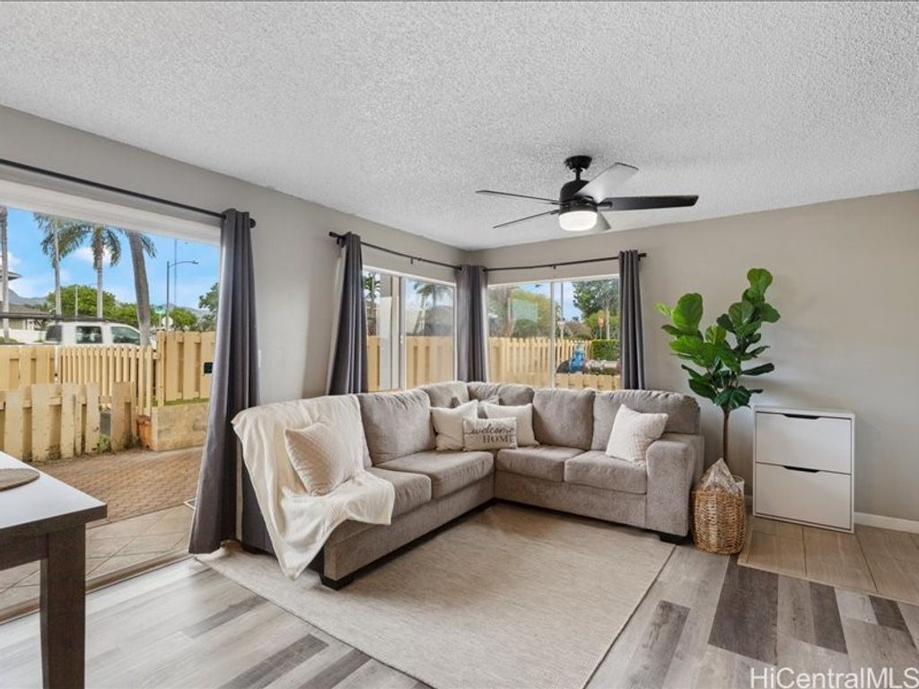 Corner Ground-Floor Unit in Gated Community - Kulana Knolls 2 Beautifully maintained 2-bedroom, 2-bathroom corner unit located on the ground floor of the desirable gated community, Kulana Knolls. This residence features an open-concept layout with gray, white-wash laminate wood flooring throughout, creating a modern and cohesive aesthetic. The spacious living area flows seamlessly into a private courtyard"”an ideal setting for outdoor entertaining. The kitchen is in excellent condition, showcasing white shaker cabinets, beige countertops, and an open layout that enhances connectivity to the living and outdoor spaces. Conveniently situated near a variety of shopping centers, restaurants, cafés, and retail stores, this home offers both comfort and accessibility in a sought-after location. Seller credit $5,000 and covering 6 months maintenance fee at closing.
