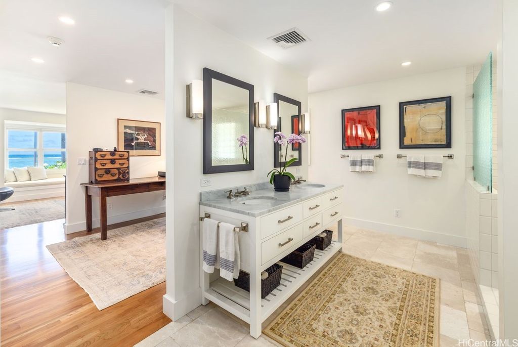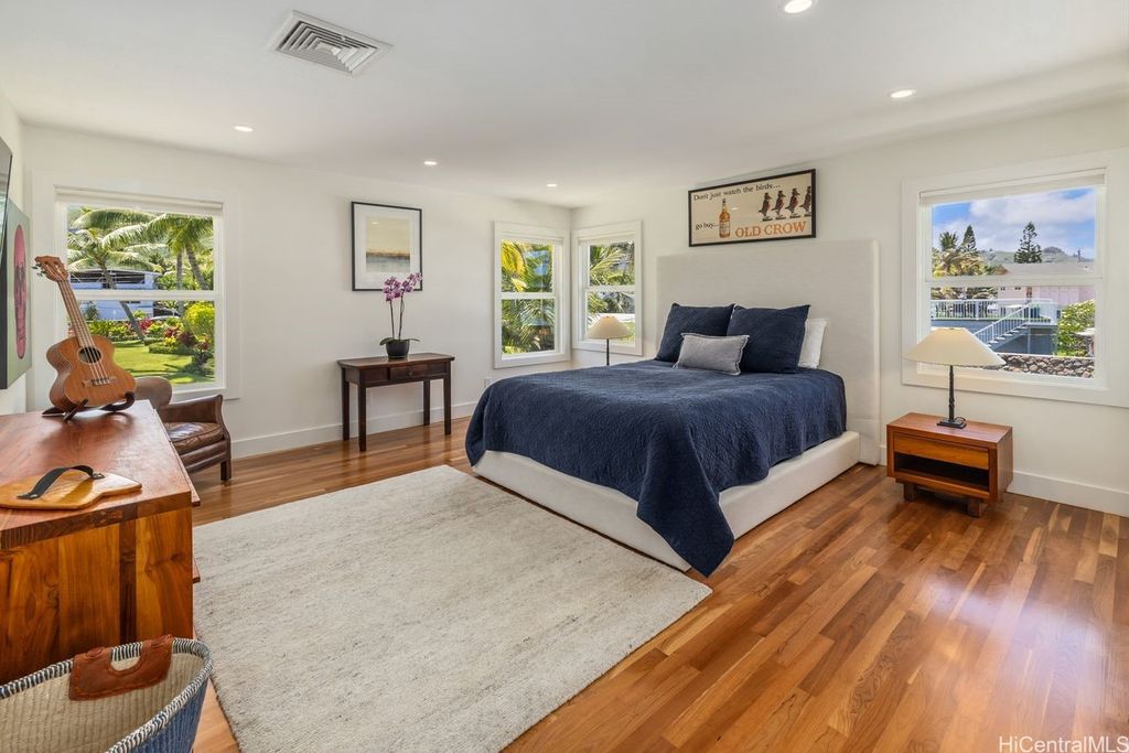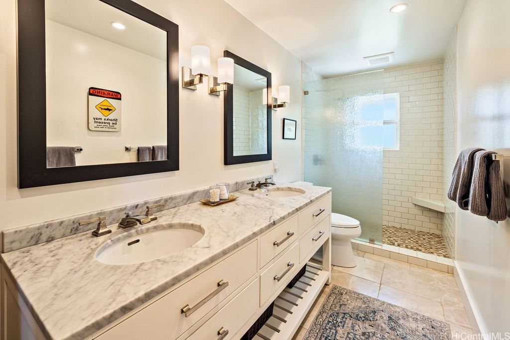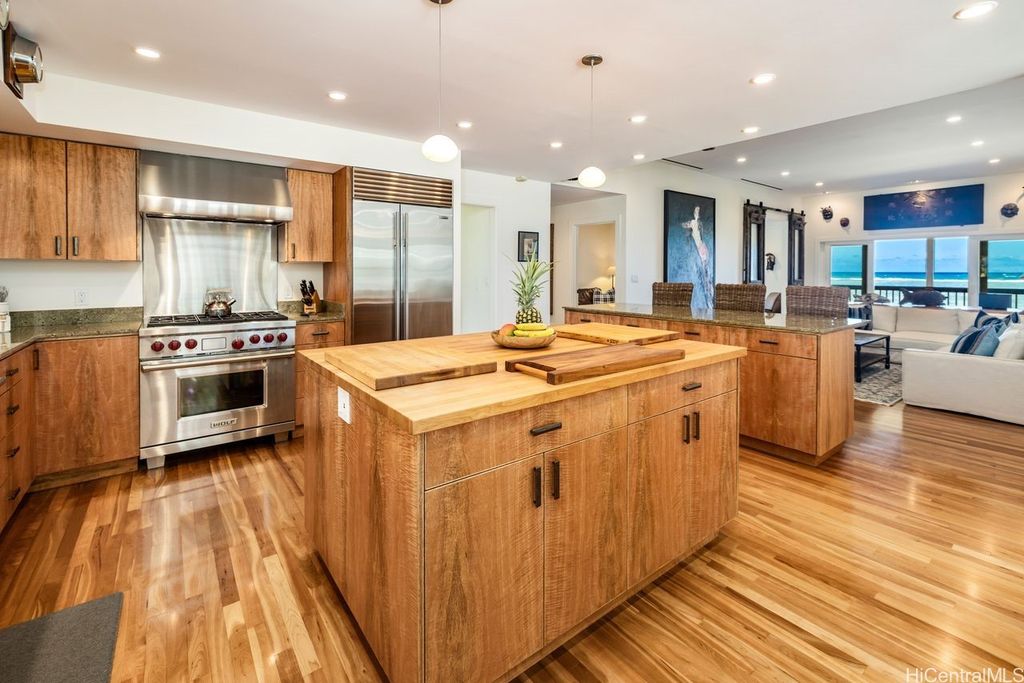 Soak in unobstructed ocean views and cool sea breezes from this exceptional home in a prime Hauula location- just steps from the beach! Completely remodeled in 2014 and meticulously maintained, this 3 bedroom, 4 bath home blends comfort, luxury and island charm. The chef-inspired kitchen is built to impress featuring custom mango wood cabinetry, dual islands, granite countertops, a butcher block prep space, Sub Zero fridge, Wolf gas range and a huge walk-in pantry. Entertaining is effortless! Inside, rich cherry wood flooring add warmth throughout while outside Ipe decks and gates offer durability, style & timeless appeal. Stay cool and connected w/ 2 split AC systems, Nest thermostat, integrated sound system,security cameras and a newer roof (2016). The lower level offers generous storage for all your gear and an outdoor shower to rinse off after a day in the waves. It's everything an active lifestyle demands. And the yard? Massive, lush, tropically landscaped. Perfect for hosting, lounging or just soaking in paradise! This home checks every box- location, elevated finishes and a lifestyle that embraces everything Hawaii has to offer! To be sold simultaneously with MLS 202510245.