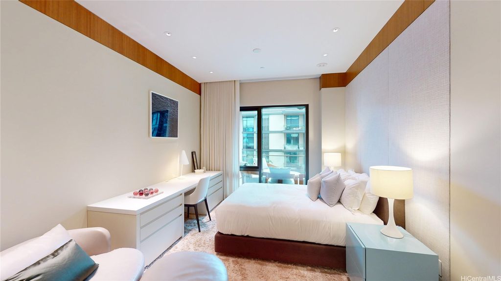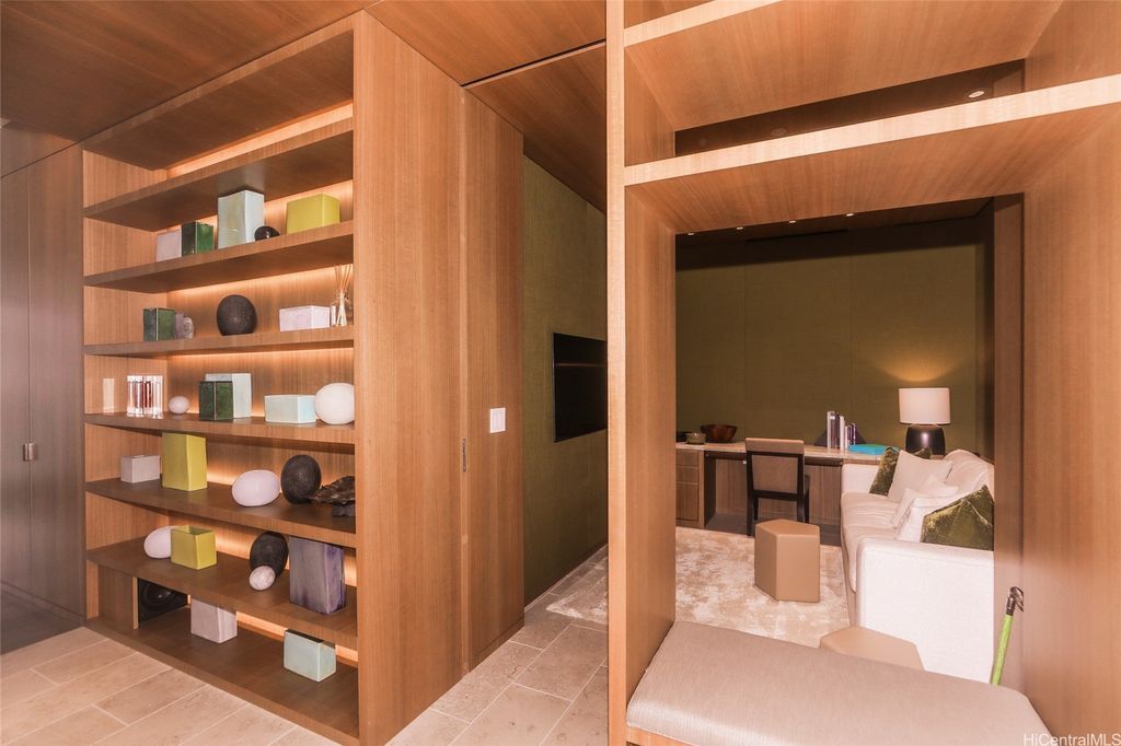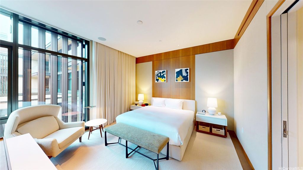 An original one-of-a-kind 2 bedroom 2.5 bath plus den tastefully remodeled unit redesigned by David Oldroyd of ODADA Design Studios available for sale in the iconic Park Lane. 2 parking with 6(!) extra storage units. Significant remodel with Big Island Eucalyptus wood paneling, german limestone entry, luxury upholstery on the bedroom walls and window coverings, luxury lighting, custom closets, drywall and extra tall doorways. Top to bottom~! This home is offered furnished with designer furnishings. Private showings only.