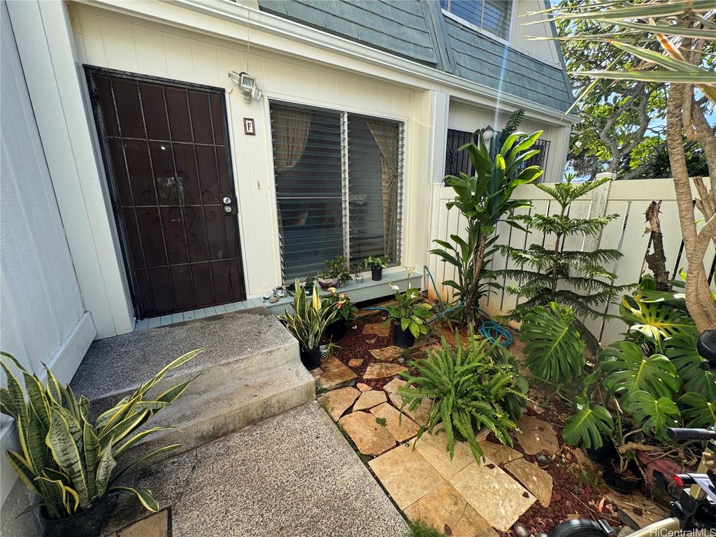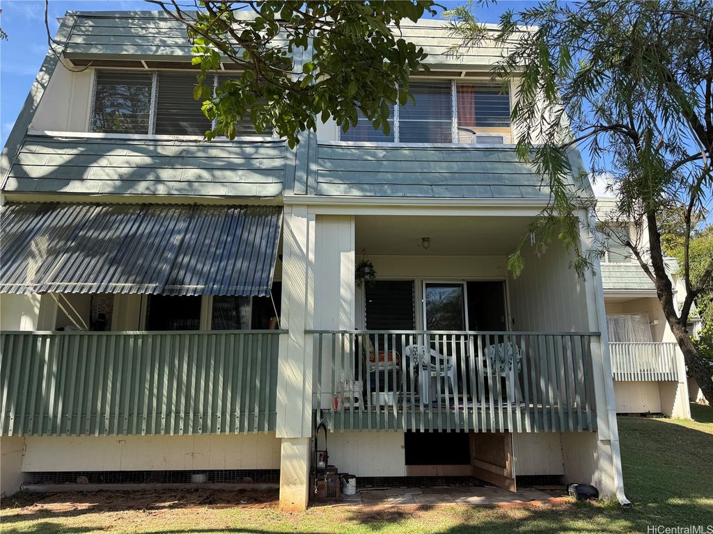 New REDUCED $10K credit for new bedroom floor & Appliances ...Two Story Townhome located on the 12' th hole of Golf Course.977 sq. ft. interior located in Pearl City. Laminate Floors . Upstairs Main bedroom has nice Ocean and golf course views. Window AC and Extra storage area under windows and walk in closet. Back Bedroom cool mountain breezes have extra storage under windows. New Remodeled bathroom with a new bathtub, new sink, and new lights. Downstairs living room and stairway just painted. An open kitchen with room for an Island. New kitchen faucet and values. Relax on lanai with cool breezes, offering serene and peaceful views and birds signing in background. -104 sq. You Can see fireworks sometimes. New Washer and Dryer. Huge Storage area under the lanai.2 Solar panels owned on roof with a newer solar water Heater. Front area gated and private for garden and plants, pets and Children to play. 2 open parking stalls side by side. Take nice walks then jump into the Large Pool right outside your door . Close to Pearl Ridge Mall, Movies, restaurants, shopping, H-1,H-2,& H-3 freeways. Minutes away from Pali Momi Hospital .& Pearl Harbor .Close to schools and Churches.