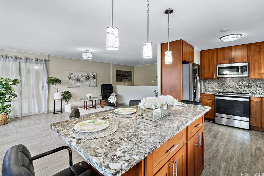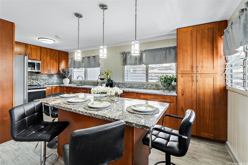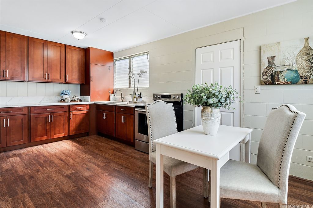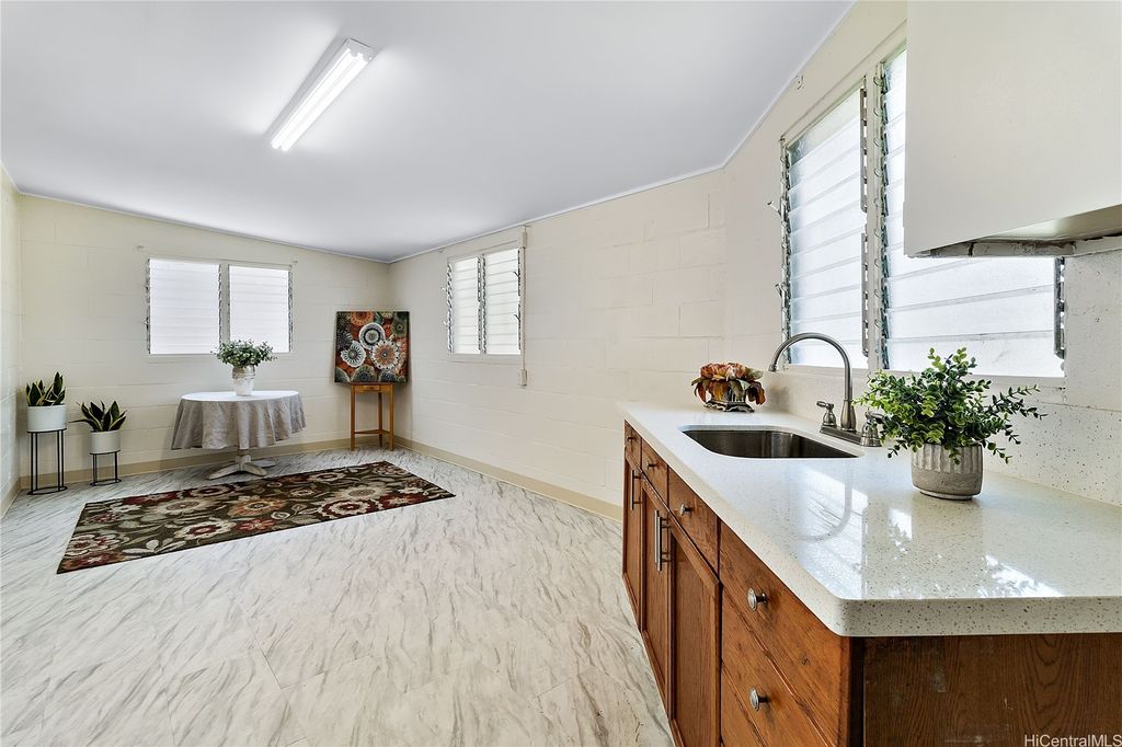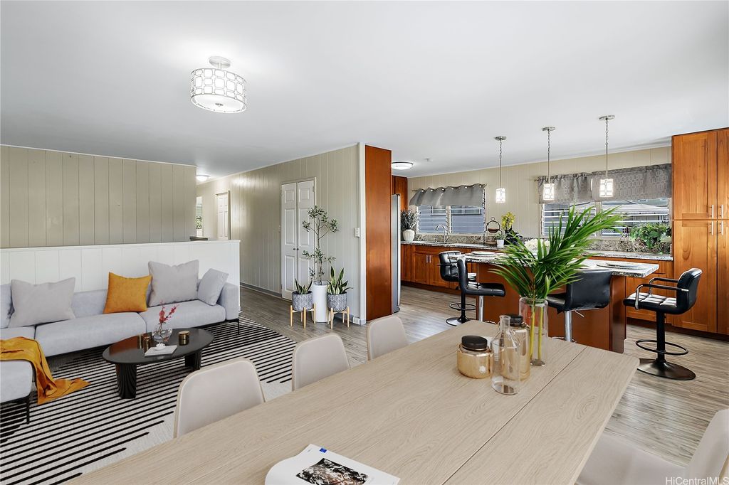 CURRENT APPRAISED VALUE AT $1,485,000. Well suited for multigenerational living with rental potential. This unique home combines flexibility, privacy, and comfort with its separate entrances to multiple living spaces. It is in the heart of lower Kalihi Valley on a flag lot with convenient access to H1-East, H1-West, and the Wilson Tunnel, as well as being just 5 minutes from Kamehameha Shopping Center and Kamehameha Schools. The carport and open stalls can accommodate 7 vehicles tidily and up to 12 vehicles when using the entire driveway, a treasured feature in the area. The entire home has been tastefully upgraded with new kitchen cabinets, sinks, granite countertops, and bathrooms. Both the interior and exterior have been freshly painted. You must come and see! NOTE: ADU permit in progress