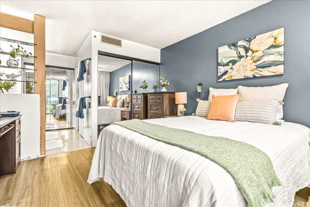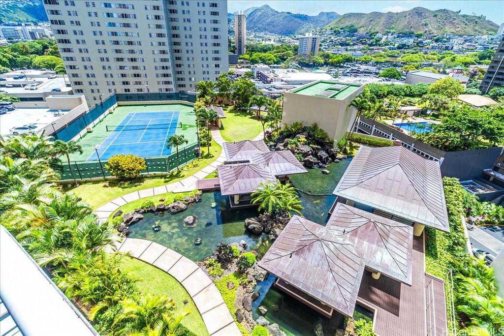 Tranquil Urban Living in the Heart of Honolulu. Welcome home to this serene, mountainside unit overlooking a peaceful koi pond, where the gentle sound of cascading waterfalls creates a true retreat in the city. Located on the cooler side of the building, this unit enjoys refreshing mountain breezes and features a spacious lanai"”perfect for relaxing with your morning coffee or evening wine. This pet-friendly home includes 1 parking stall and access to an impressive list of resort-style amenities: BBQ cabanas, koi ponds, a party room, tennis court, golf driving range, bowling lanes, two-story fitness center, basketball and racquetball courts, recreation areas, a heated pool, whirlpool spa, car wash station, and more. With 40 guest parking stalls, 24-hour security, and a dedicated resident manager, convenience and peace of mind come standard. Enjoy being moments from downtown Honolulu's financial district, vibrant Chinatown, hospitals, dining, shopping, and easy H-1 access. Whether you're looking for a convenient city base or a tranquil escape, this gem offers the best of both worlds. One of more photos have been enhanced