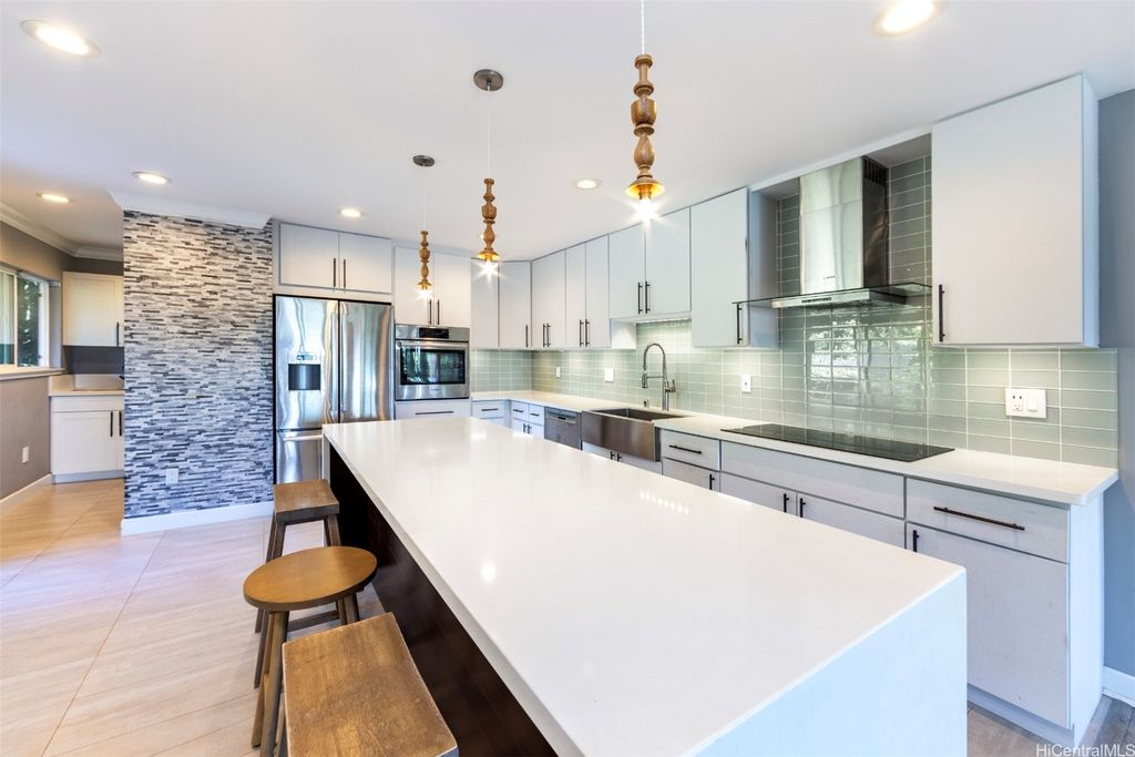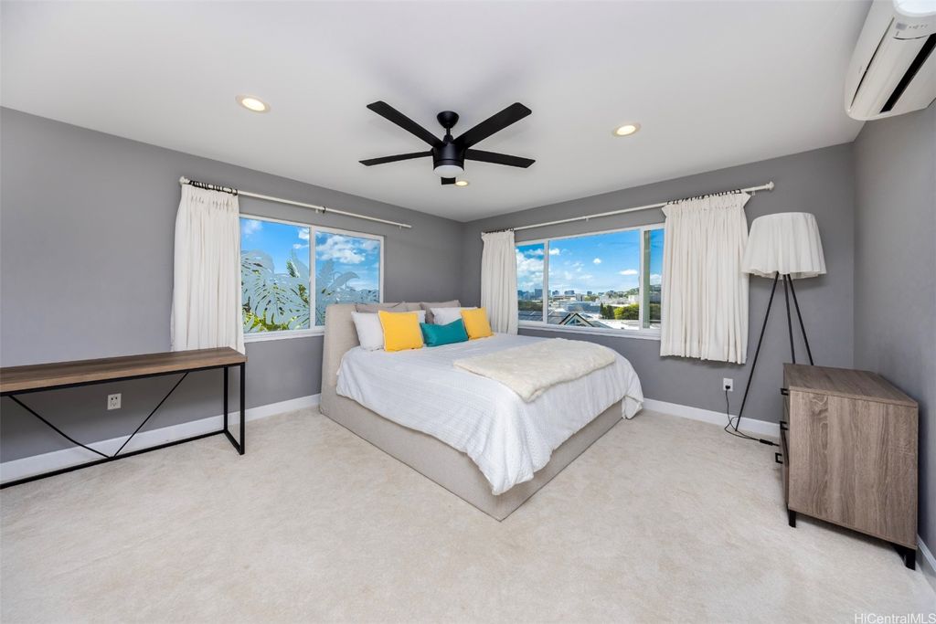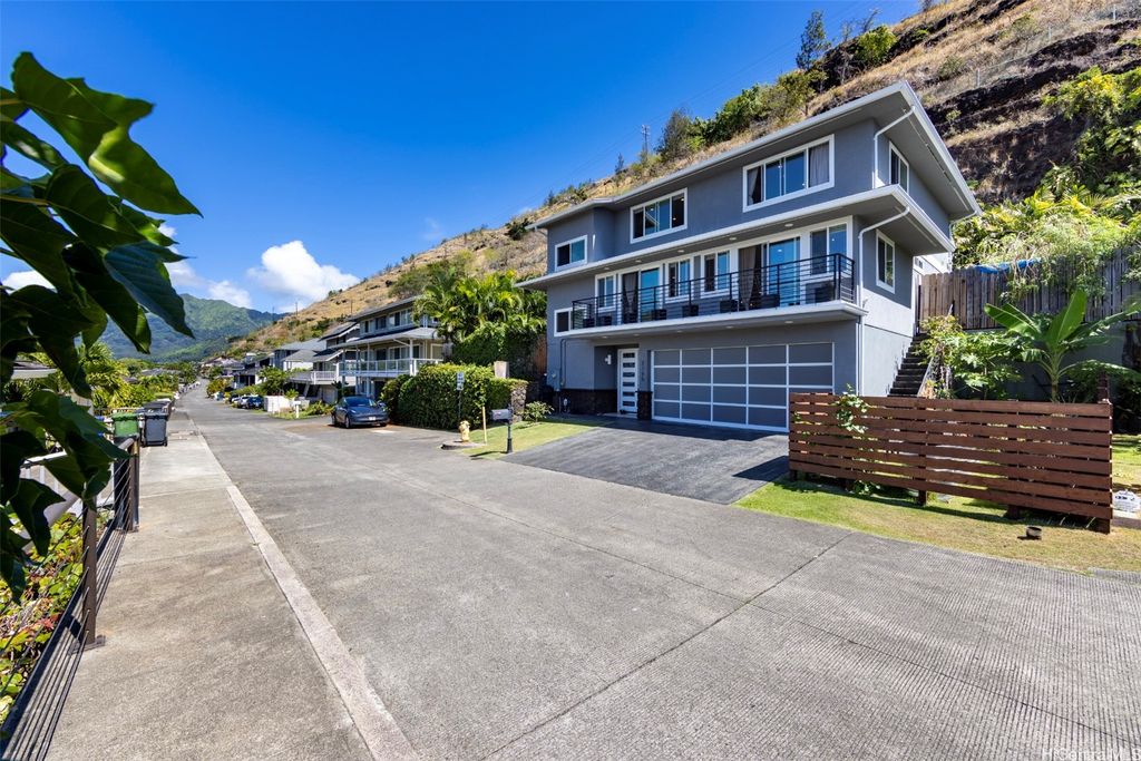 Situated along a quiet, gated Manoa hillside community, 2755 Kalawao Street feels uniquely special. Constructed in 2017, well-kept curb appeal and a modern exterior design welcomes you home. Inside, a flexible 3-story, 4-bedroom, 4-bath, 3,114 sq.ft. floor plan has a warm island-contemporary aesthetic. The primary living level enjoys an open-concept design, joining kitchen, living, and dining room spaces. Off the primary living area, a garden courtyard with a covered lanai and grassy yard space brings a private oasis to your lifestyle. One large resort-style bedroom is positioned on the primary level. Upstairs, three additional bedrooms, including an additional primary bedroom suite, plus a second living room space, offer ample flexibility in setting up your new home. From the top floor, enjoy 180-degree views stretching from Honolulu to the Koolau Mountains, with partial Pacific Ocean peek-a-boo views. This wonderful Manoa, small gated community has a wonderful atmosphere with great neighbors. Superb location is just minutes from urban Honolulu, Waikiki, beaches, and more, while maintaining a private, secure, and secluded feeling. Conveniently located near Manoa market place!