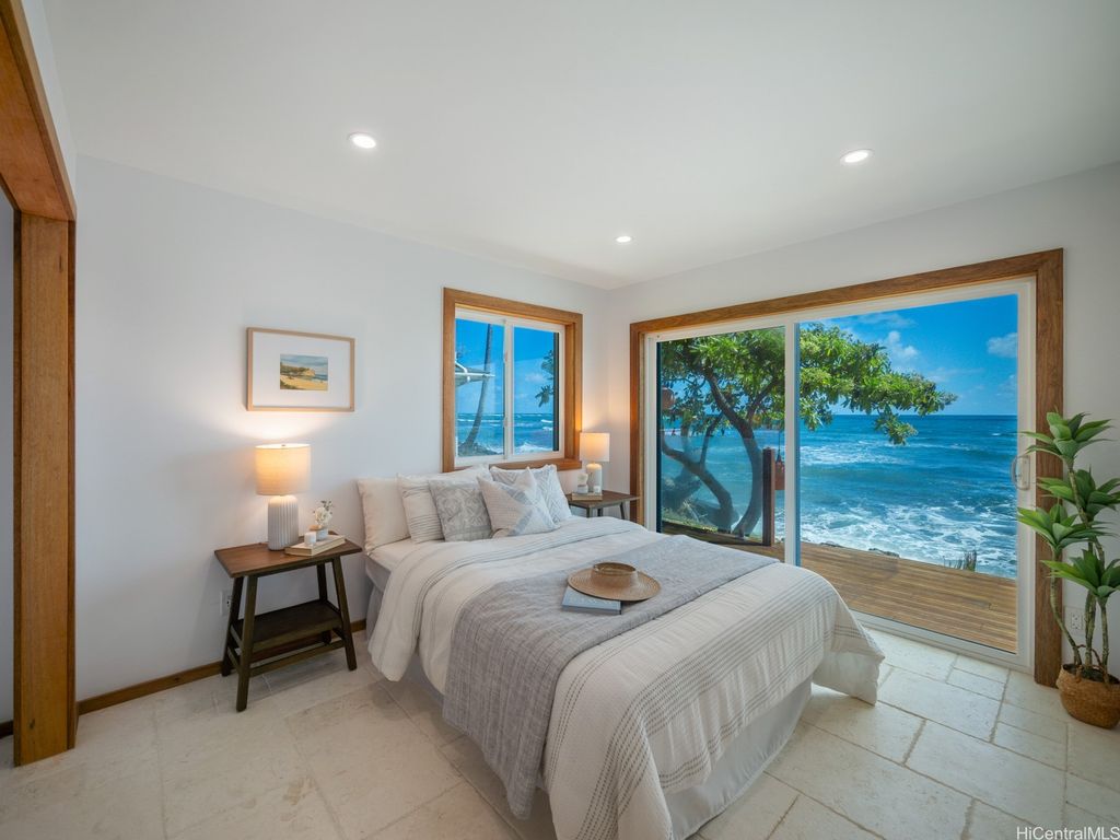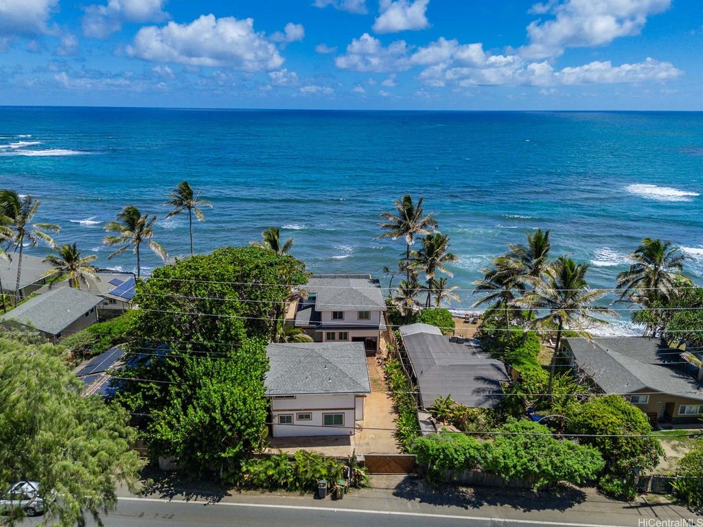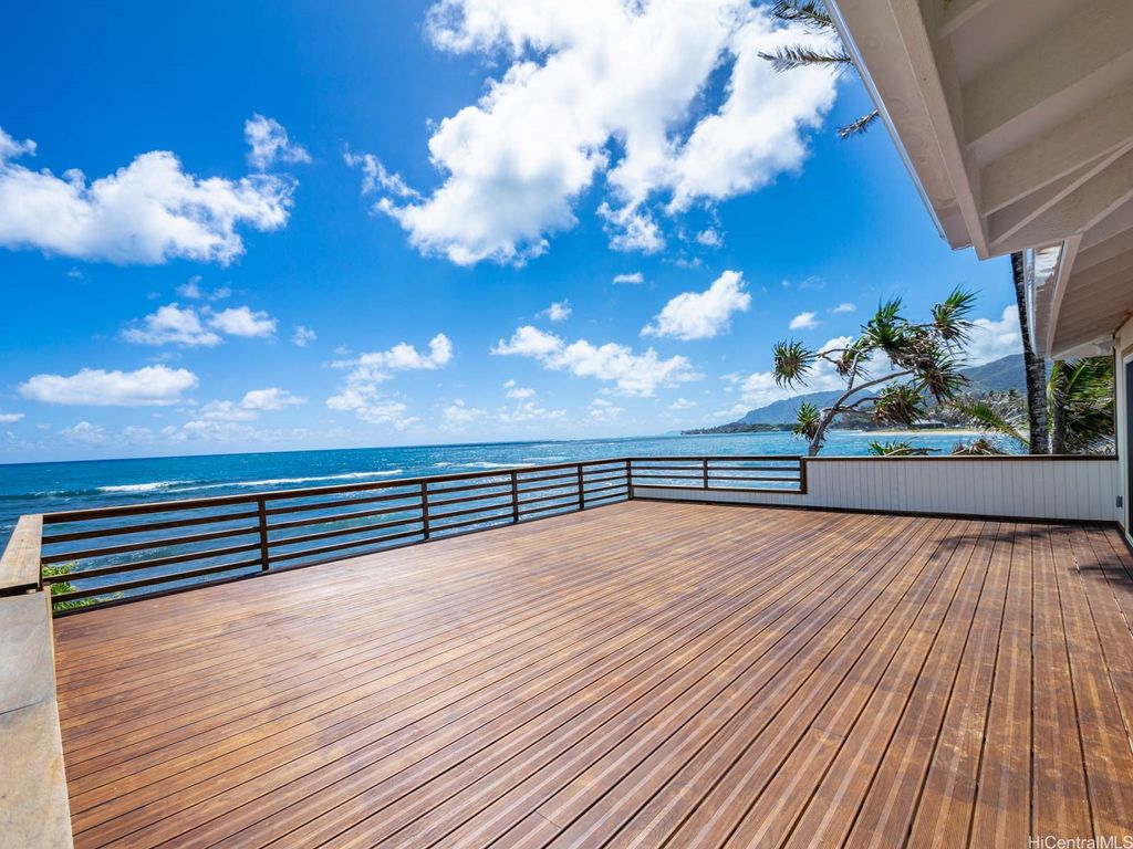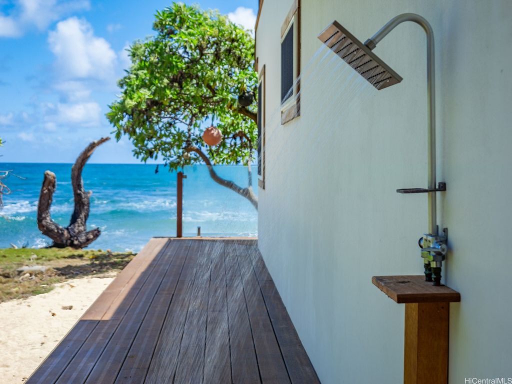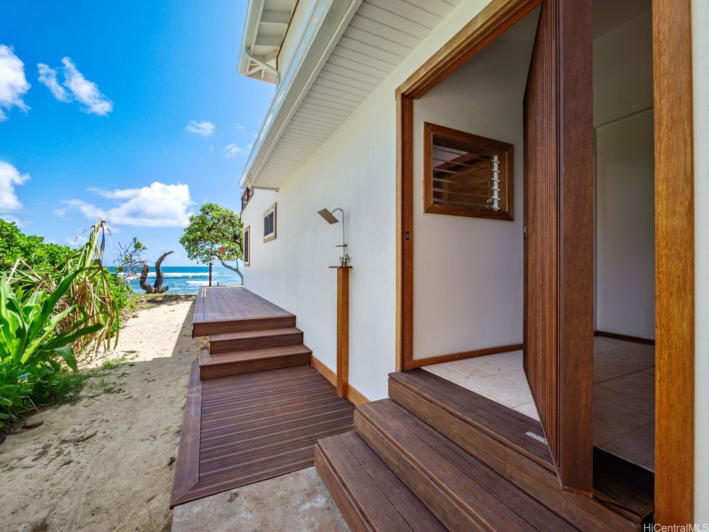 Two luxury ocean front homes that have multiple living spaces. Fully wrapped in African Mahogany trim, a top of the line hardwood known for its durability against natural elements. Soak in the landscape with views from every room, and enjoy the approx 875 s.f. lanai made of Vulcan Abodo decking, meant to last a lifetime & FSC certified sustainable. The interior white coral flooring transitions the ocean elements into the homes seamlessly. The kitchens and bathroom are Italian Moonstone and some Topäz porcelain. Thoughtfully designed interior doors and electric front gate are Brazilian Sapele hardwood, also known for its durability with coastal elements. Landscaped with hala, palms and travelers trees. Front house has 3BR/3.5BA downstairs & 2BR/1BA upstairs. Back house has 2BR/1BA with kitchen/wet bar on each floor. Property specs do not match tax records.