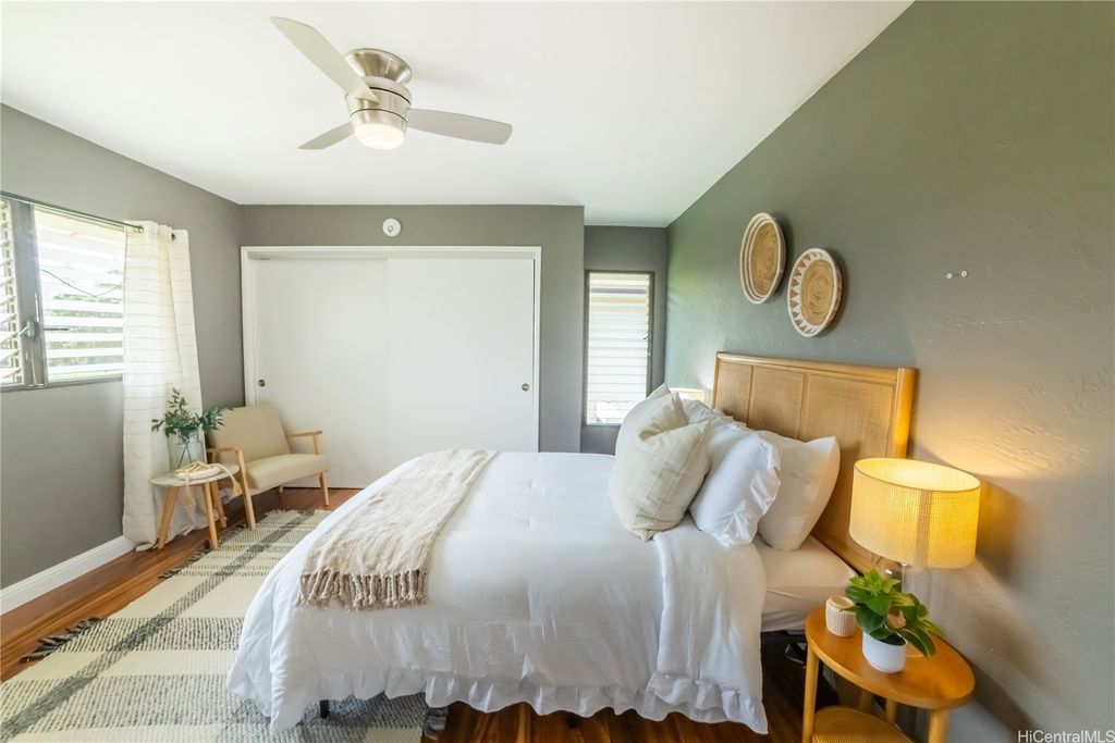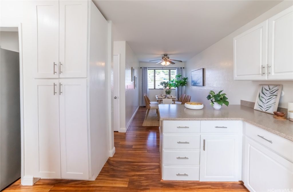 Back on the Market! Buyer was unable to complete financing"”no fault of the seller. Step inside this rarely available bright, airy, and inviting 3-bedroom, 2.5-bath split-level townhome tucked away in the heart of Aiea. This spacious corner unit at Tropicana Village feels like a single-family home with 1,361 sq ft of interior space and two side-by-side parking stalls right outside your door. Large windows fill the home with natural light, while gentle cross breezes flow through the open-concept layout, keeping the space cool and comfortable year-round. The kitchen, dining, and living areas connect seamlessly for easy entertaining, and your private lanai opens to lush greenery and peaceful golf course views, perfect for morning coffee or weekend BBQs. Enjoy the calm surroundings of this well-maintained, pet-friendly community just minutes from Pearlridge Shopping Center, freeway access, schools, restaurants, and hospitals.