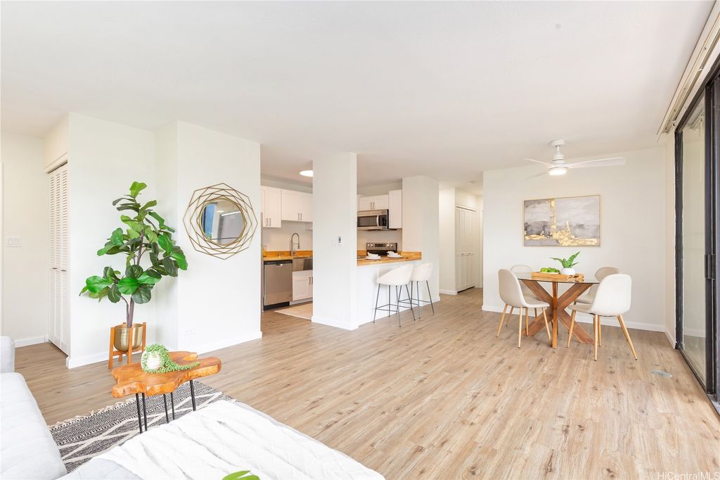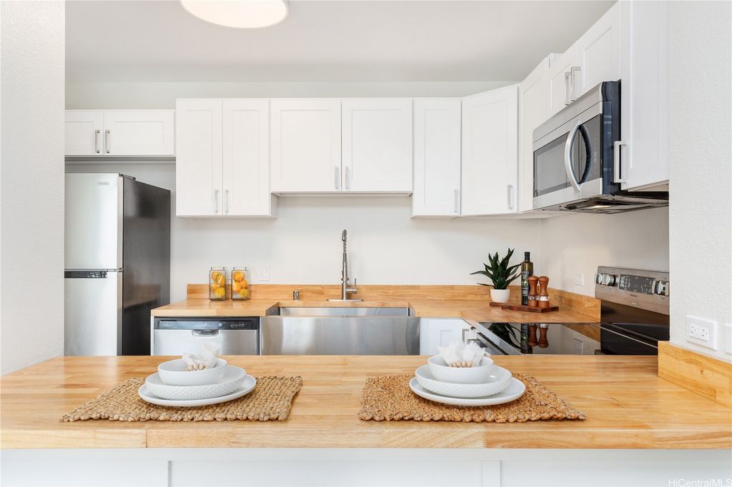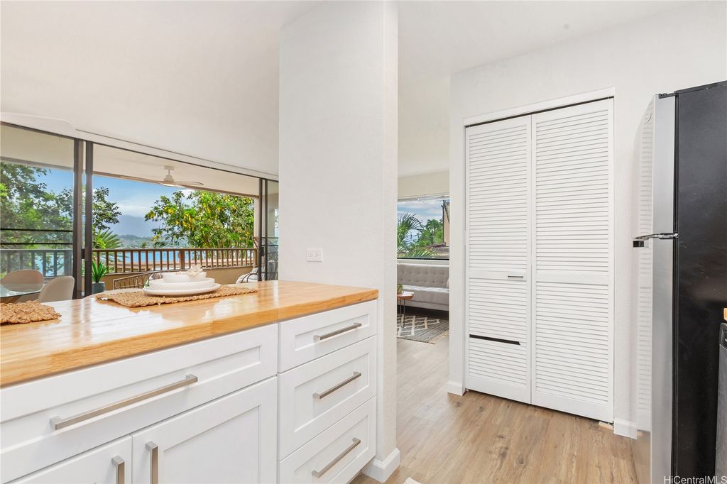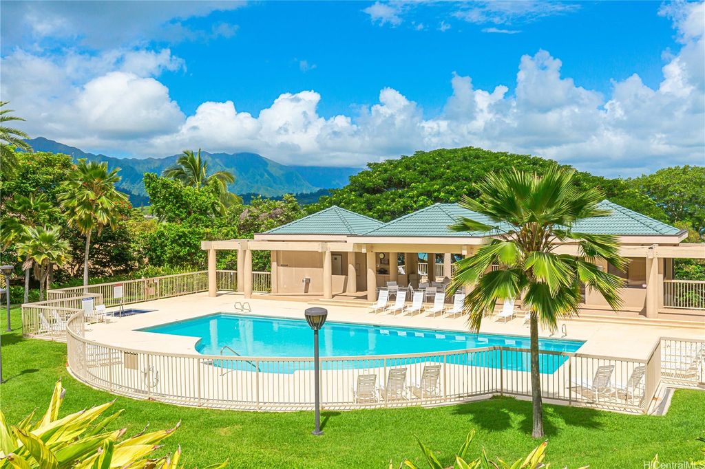 Welcome Home to Poha Kea Point! Enjoy the best of Windward Oahu living in this renovated, single-level "Birchwood" model townhome with breathtaking panoramic views of the Koolau Mountains and Kaneohe Bay. This end-unit is filled with natural light and cool breezes, and opens to a spacious private lanai-perfect for relaxing or entertaining. Featuring a rare garage, this home offers the comfort and convenience of single-level living in one of the most desirable communities on the Windward side. Higtlights Include: Updated interior with modern finishes, custom butcher block countertop in the kitchen. Expansive views from the main living area, large, private lanai for indoor-outdoor living, Garage + ample guest parking. Community Amenities: Three pools, hot tub, BBQ areas & patios, Clubhouses, tennis courts, and jogging paths. Located near shopping, dining, schools, and Marine Corps Base Hawaii--this is island living at its finest! One of more photos have been enhanced