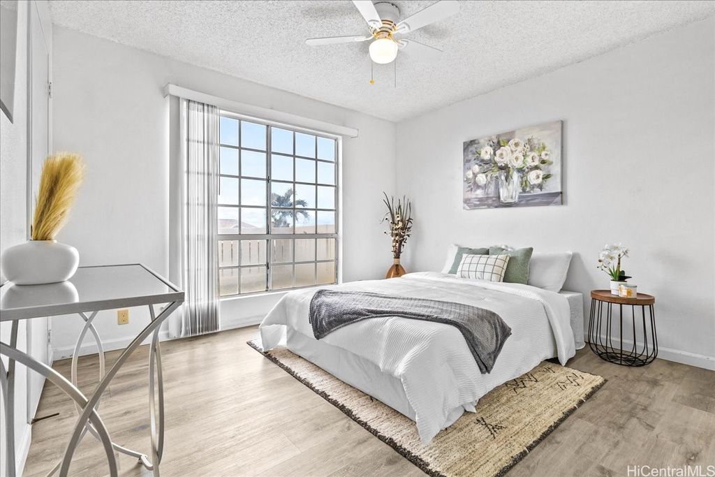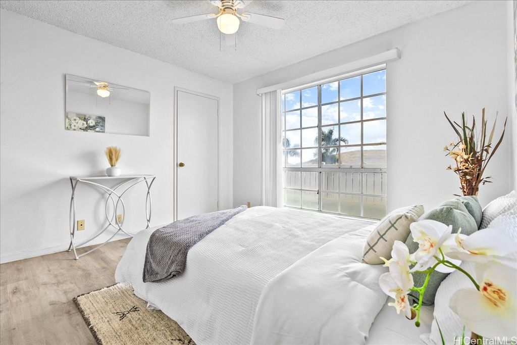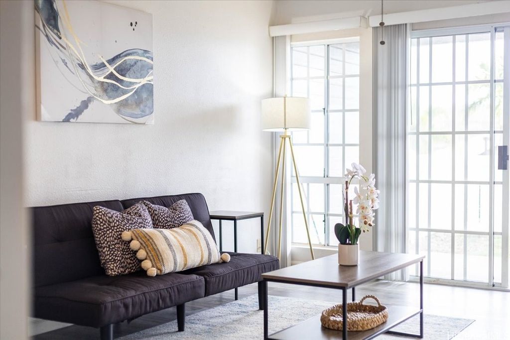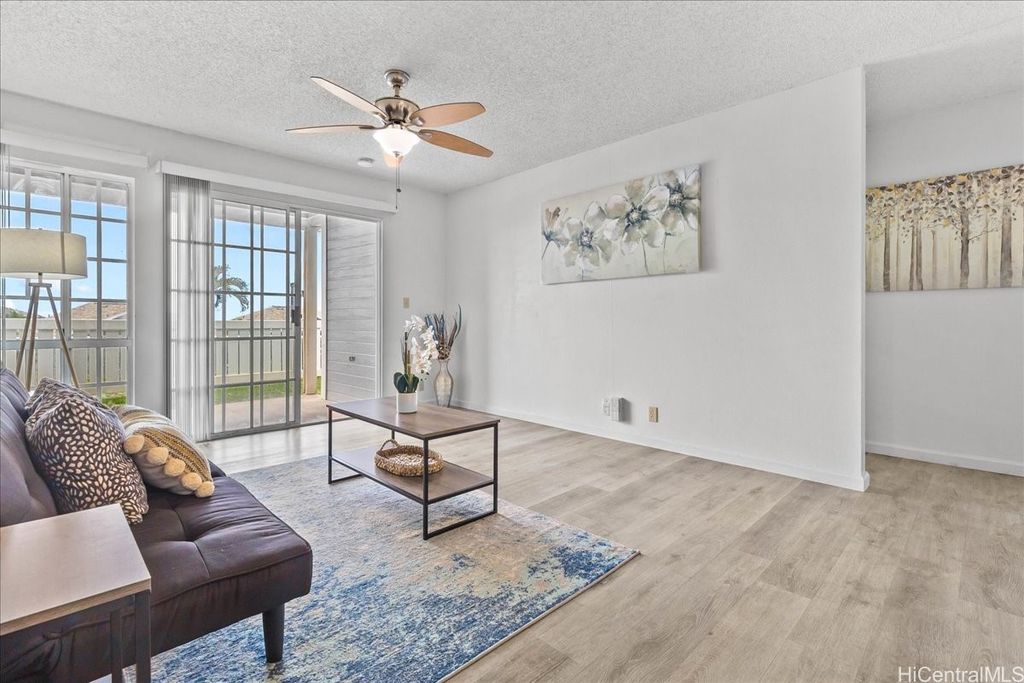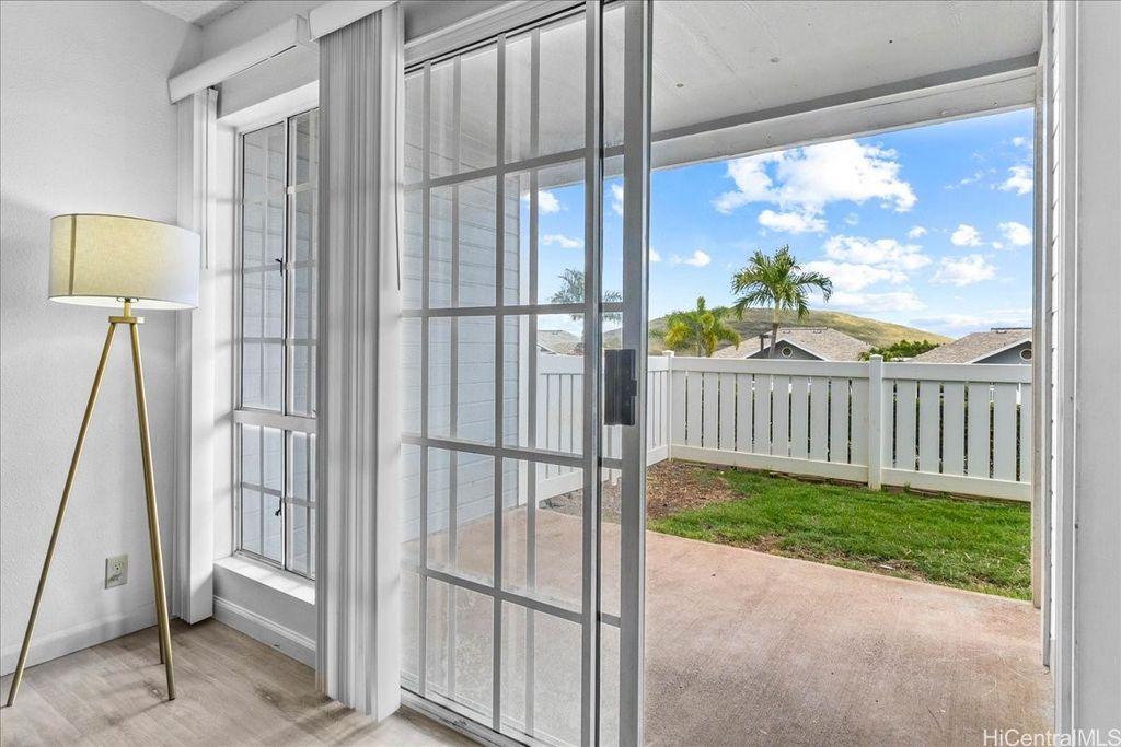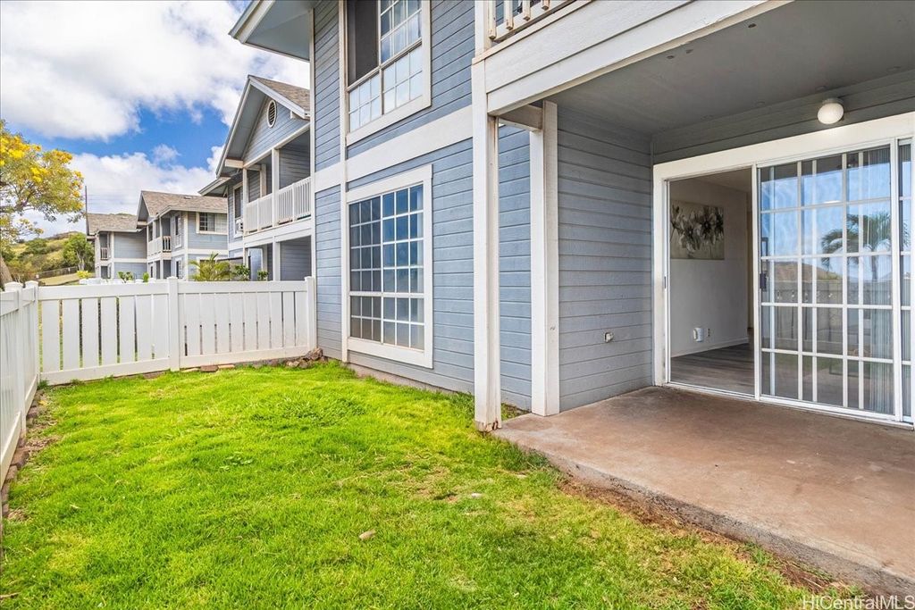 Welcome to Makakilo Cliffs - where comfort meets convenience in this beautifully maintained 2-bedroom, 2-bath townhouse with 2 covered parking stalls and 15 owned photovoltaic (PV) panels for energy efficiency and low electric bills. Perched on the cooler slopes of Makakilo, this home offers refreshing breezes year-round. The open-concept living and dining area opens to a private yard, offering the perfect space for outdoor dining, gardening, or simply unwinding in your own peaceful retreat. The primary bedroom features an en-suite bath and ample closet space, while the second bedroom is ideal for guests, an office, or a growing family. Conveniently located near shopping centers, dining, schools, and freeway access, this move-in-ready unit combines the best of island living with modern comfort and energy-conscious living. Don't miss your chance to own this gem in a sought-after community!