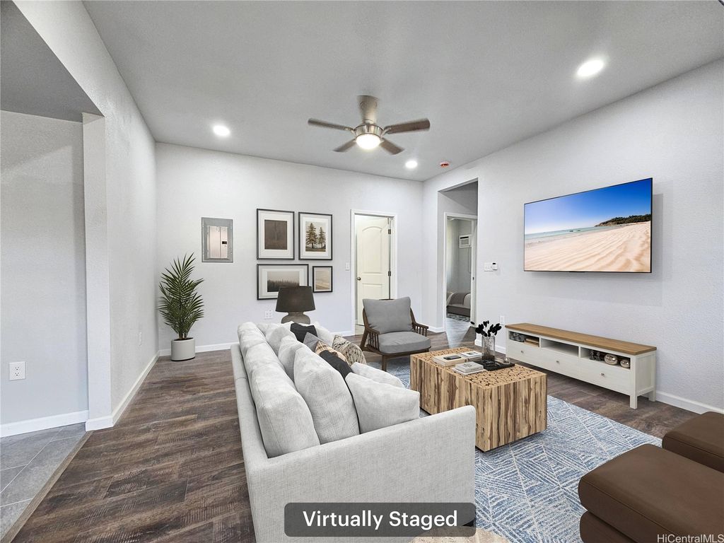 The house you've been waiting for is finally here!! Rental income could possibly help pay for your mortgage!! This newly built 7-bedroom, 4-bath home features a legal 2-bedroom, 2-bath ADU with current $2,500/mo rent, helping to offset your mortgage. The main bathroom has 5 bedrooms and 2 baths. The ADU has a private entry and a backyard perfect for entertaining. The main home offers a gigantic primary bedroom with partial ocean views and a modern bath. Brand new upscale kitchen with plenty of prep space. The spacious lanai is ideal for BBQs, or enjoying the stunning sunsets on the 2nd story's covered balcony. The manicured landscape in the front and back yards helps you take full advantage of the beautiful, sunny Hawaiian weather. With central AC, tons of parking for up to 8 cars, and just a short distance to Oneula Beach, this home offers the ultimate comfort and convenience. Located just minutes from shopping, parks, and numerous golf courses, this home strikes the perfect balance between relaxation and accessibility. Best of all, there are no association fees! More than one photos are enhanced. MLS does not match tax records.