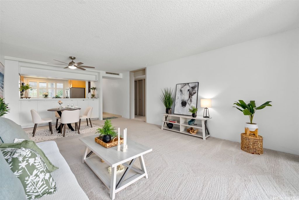 Easy to see! As you step inside, you're immediately welcomed by stunning views through the sliding glass doors and a welcoming sense of warmth & comfort. To your right, the kitchen opens to the dining and living areas, and offers an ideal setup for everyday living & entertaining. It's also perfectly positioned for easy grocery drop-offs, w/ convenient shopping carts provided by the building. Freshly painted & newly carpeted, the unit has a clean, updated feel throughout. The spacious primary bedroom features 2 closets with ensuite bathroom & double sinks. Step outside to the main lanai or retreat to a smaller private lanai, both perfect for enjoying island breezes & beautiful views. Down the hallway you'll find additional storage, a laundry closet w/ washer & dryer, a second full bathroom, and the second bedroom - ideal for guests, an office, or a growing household. The Esplanade offers an impressive array of amenities: tennis courts, a sparkling pool, hot tub, sauna, putting green, golf practice area, BBQ pavilions, a recreation room, on-site resident manager, an outstanding security team, and a top-notch fitness center. Two assigned covered parking stalls with extra storage!