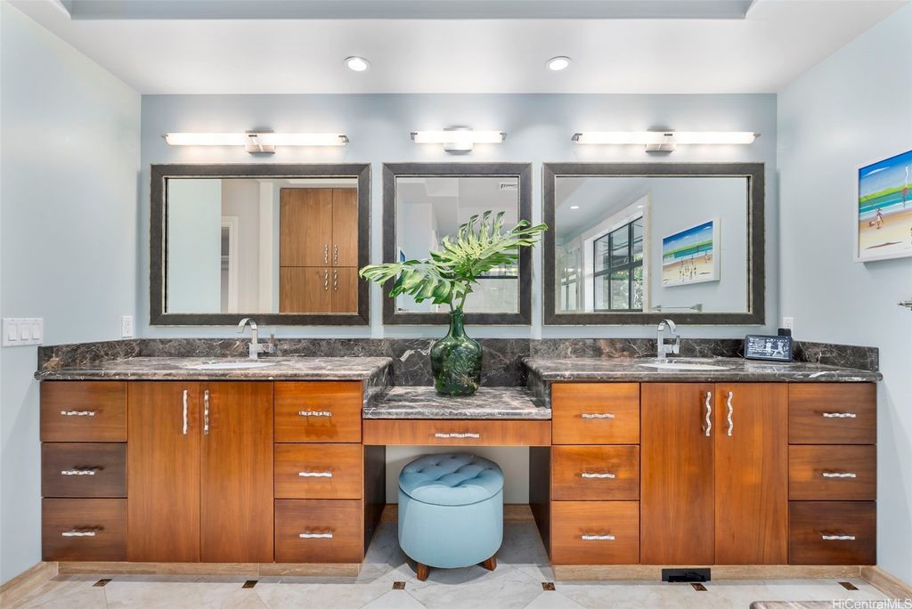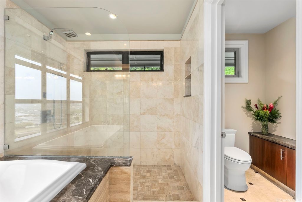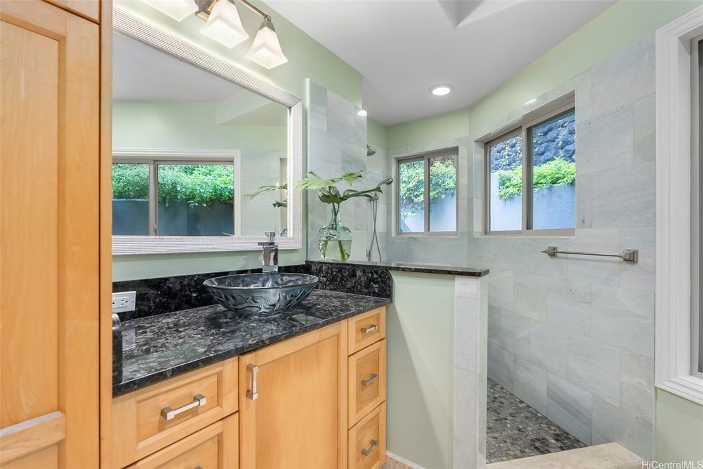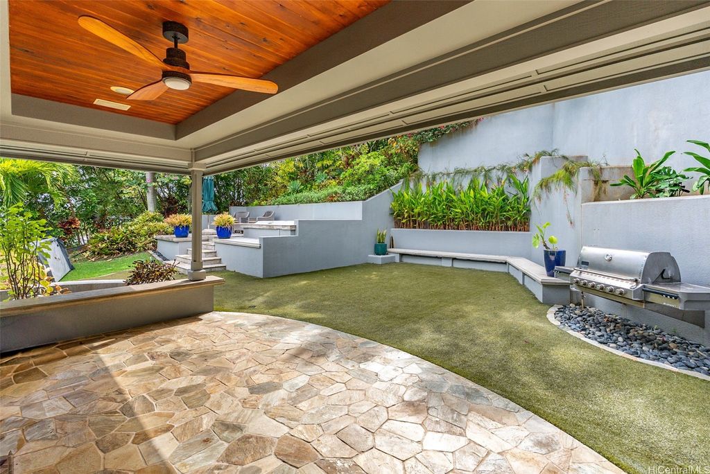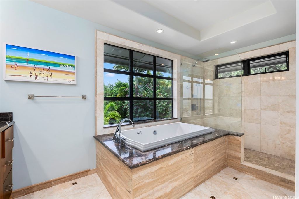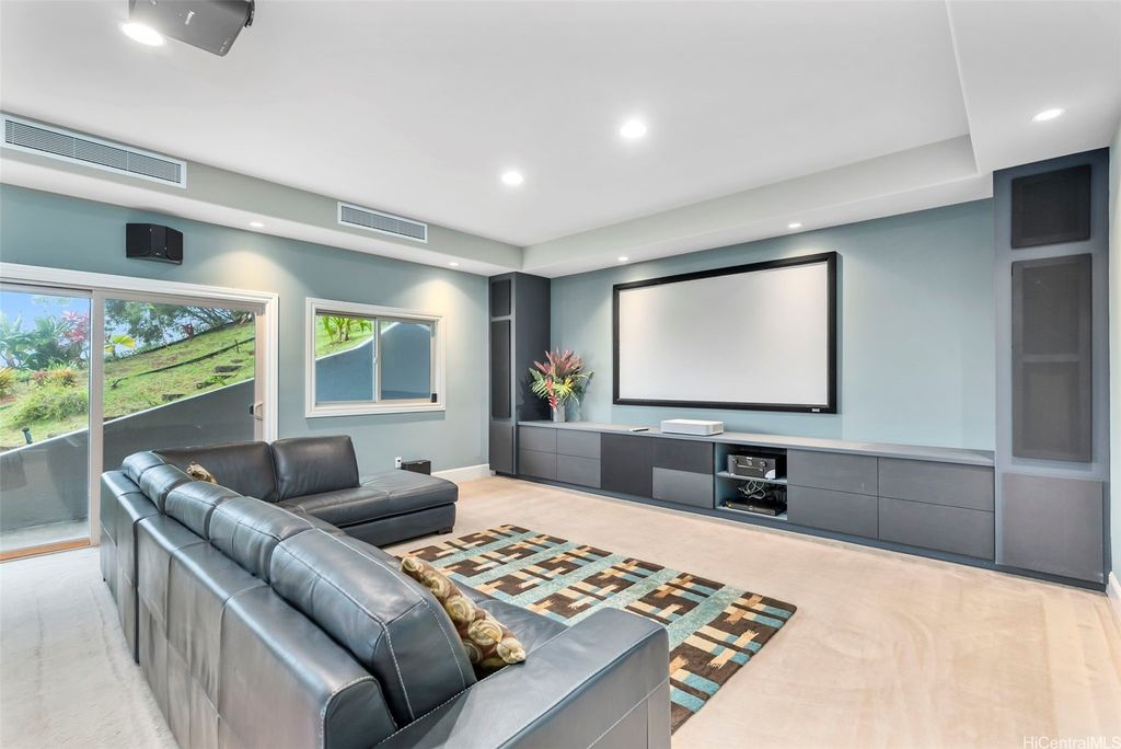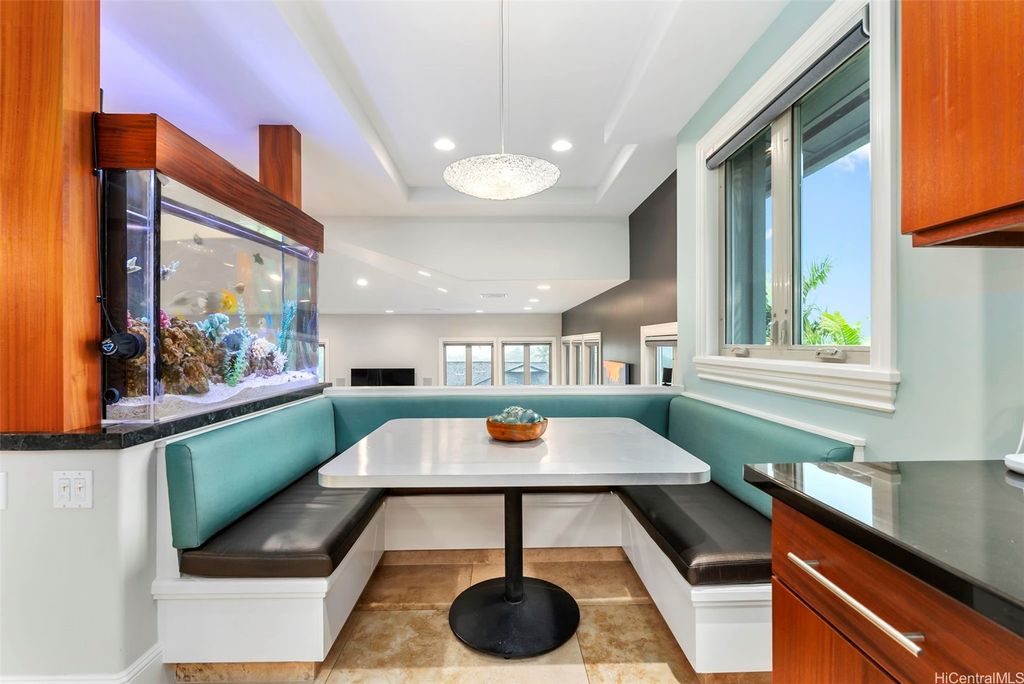 Experience island luxury in this stunning, custom-built home boasting over 4,400 sq ft of refined living spaces. Designed with high-end finishes throughout, this architectural masterpiece showcases phenomenal views of majestic Ko'olau Mountains and serene Kaneohe Bay. Soaring ceilings and a multi-level floor plan create a grand sense of space, while Fleetwood doors seamlessly blend indoor and outdoor living. The chef's kitchen is a showstopper with a breakfast nook, Kitchen-Aid Architect series appliances, custom cabinetry and a 175-gallon saltwater aquarium centerpiece. Entertain in style with a home theater, indoor and outdoor water features, and a private hot tub. Premium features include Cumaru (Brazilian Teak) hardwood floors, dual-pane windows, a split system AC, PV panels (owned), projection TV and screens, premium automatic window shades and en-suites in every room. This is an extraordinary opportunity to own a home of rare craftsmanship, modern luxury and panoramic beauty. A definite must see!