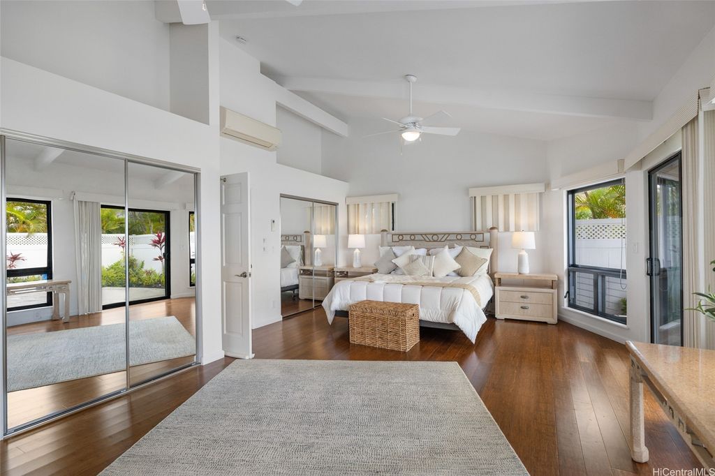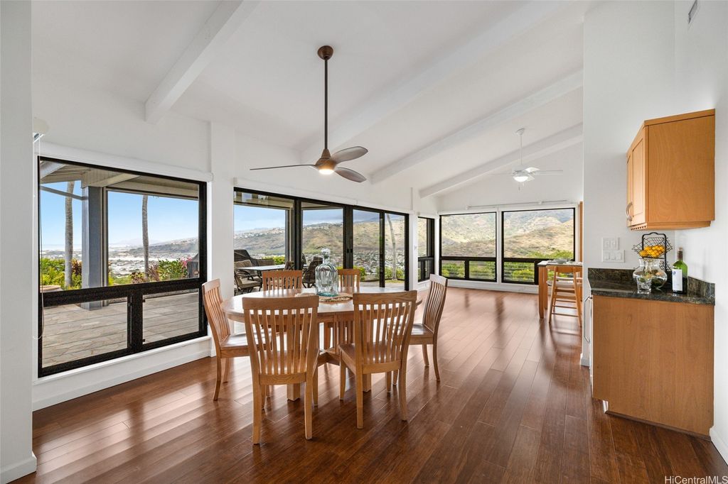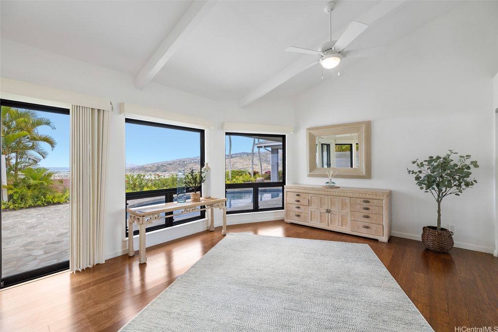 Timeless elegance meets breathtaking views in this custom-built, single-level home with more than 3,200 SF of living area on an expansive, private perimeter rim lot in a cul-de-sac. Savor the gentle island breeze in this tranquil oasis, an exclusive retreat far from the hustle and bustle of town. Set back from the street, this radiant residence features a spacious, open floor plan with vaulted ceilings, indoor laundry room, ADA-accessible design, and an outdoor elevator lift from the 2-car enclosed garage. Enjoy year-round comfort with central and split A/C, ceiling fans, and an exhaust fan. Experience effortless indoor-outdoor living with a covered lanai featuring automatic screens. Enjoy stunning mountain, ocean, and marina views, along with vibrant, warm sunsets. Expansive windows flood the home with natural light and frame stunning vistas from Hawaii Kai to Diamond Head. Unwind in a private, sunlit tiled pool that sparkles under the sky"”ideal for both relaxation and entertaining. With 41-owned photovoltaic panels and solar water, this home blends luxury with sustainability. A rare opportunity to own a serene, light-filled haven that embodies island charm and modern convenience.