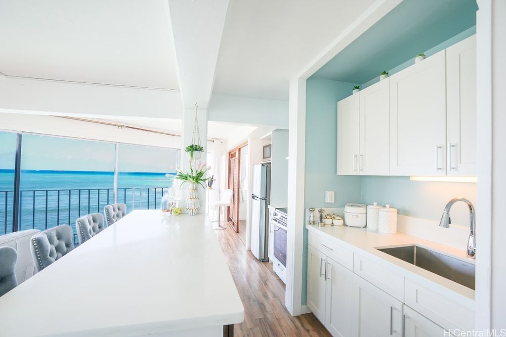Experience this rare opportunity to own a one-bedroom oceanfront unit at Diamond Head Ambassador. Embrace the coveted Gold Coast lifestyle and enjoy panoramic views with stunning sunsets, whale watching, and the calming sound of waves from your private lanai. This move-in-ready home features a newly remodeled and expanded kitchen, a modernized bathroom, and new LVT flooring. The well-kept property also includes updated plumbing and a renovated saltwater pool. This is oceanfront living at its finest.