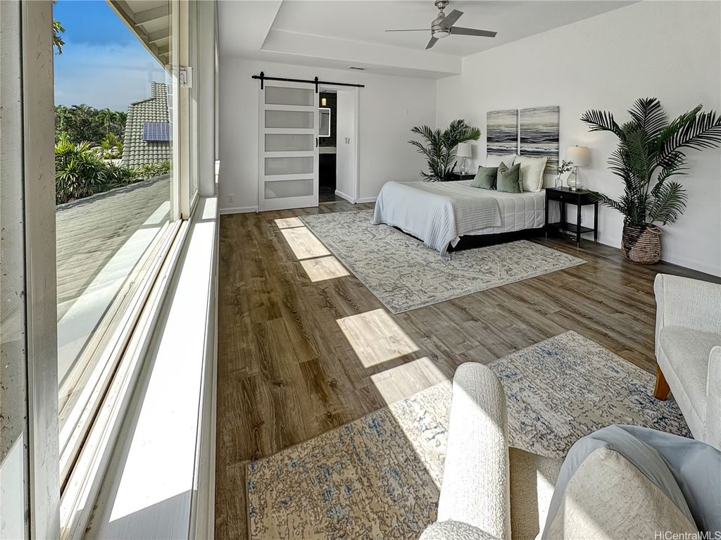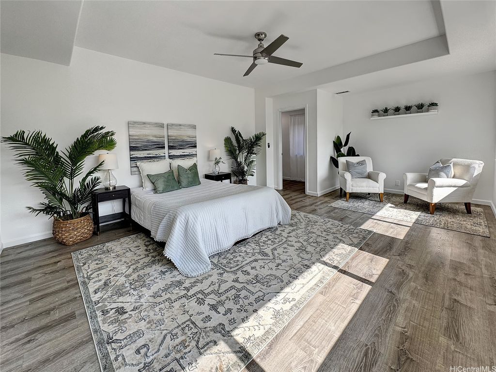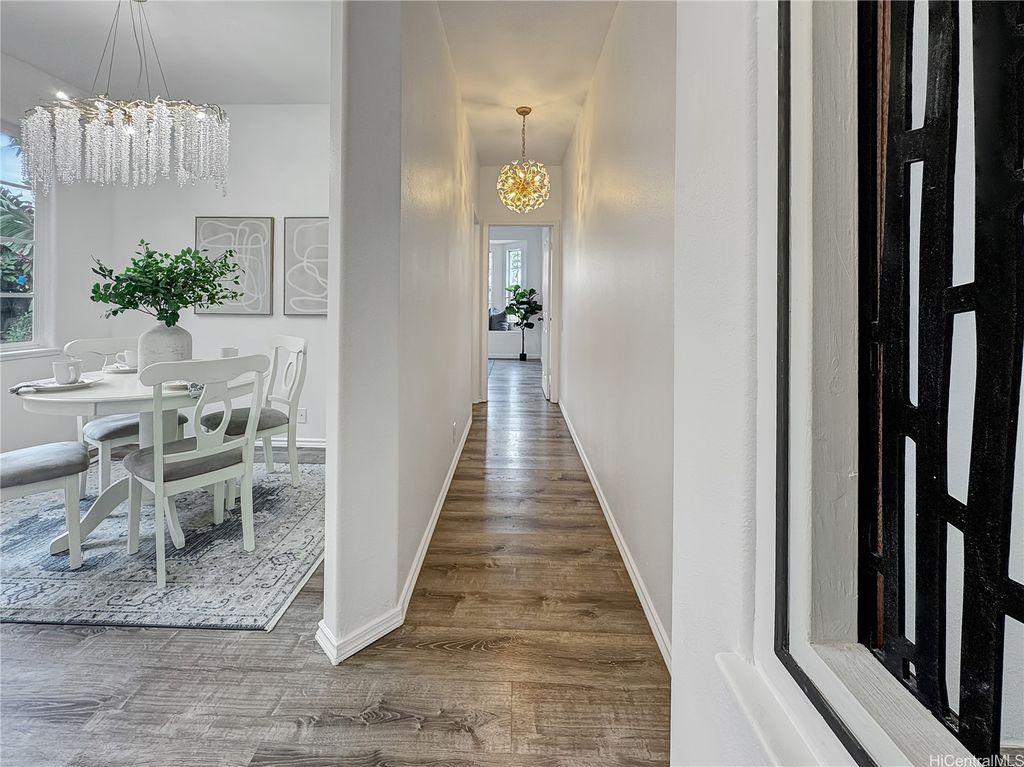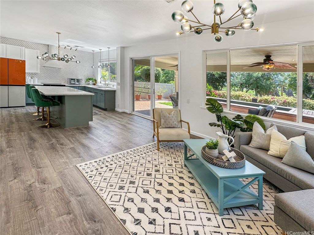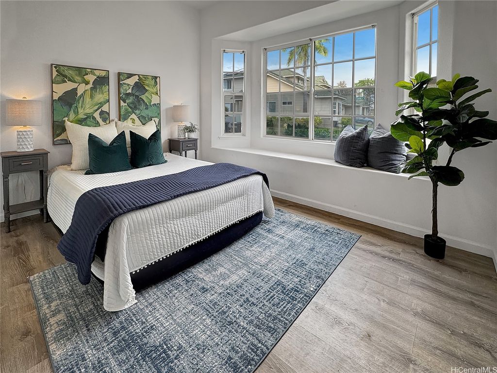 Welcome to your dream home with a VA assumable mortgage at 2.25% and $618,000 balance in the prestigious gated community of Hu'elani, with stunning views of the Coral Creek Golf Course. Enjoy resort-style amenities, including a community pool, hot tub, gym, and clubhouse"”perfect for social gatherings. This 3-bedroom, 2-bathroom home offers 1,934 sq ft of luxurious living space. A convenient ground-floor bedroom and full bath make it ideal for guests or multi-generational living. The formal dining room could easily be converted into a fourth bedroom. The upgraded kitchen features custom cabinetry and a bar, perfect for culinary enthusiasts. With an owned 22-panel photovoltaic system and central A/C, this home is energy-efficient and comfortable year-round. Additional highlights include custom pantry shelving, a 2-car garage, and spacious walk-in closets. The serene backyard boasts a large lanai, pond, and zen garden"”perfect for relaxing and enjoying the views. Experience upscale living in this exceptional property!