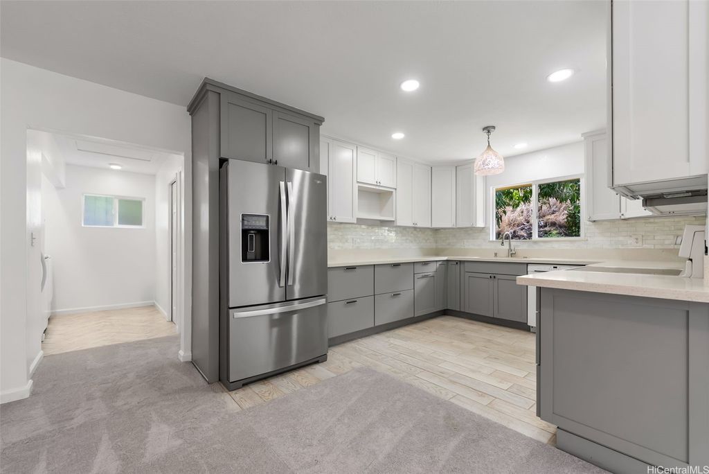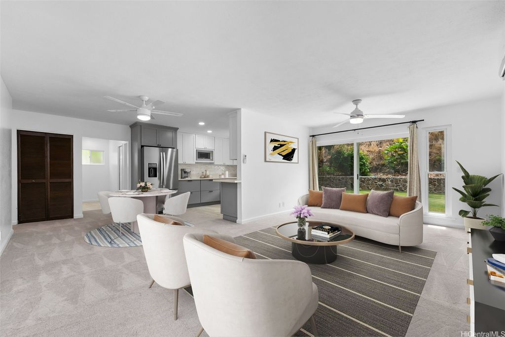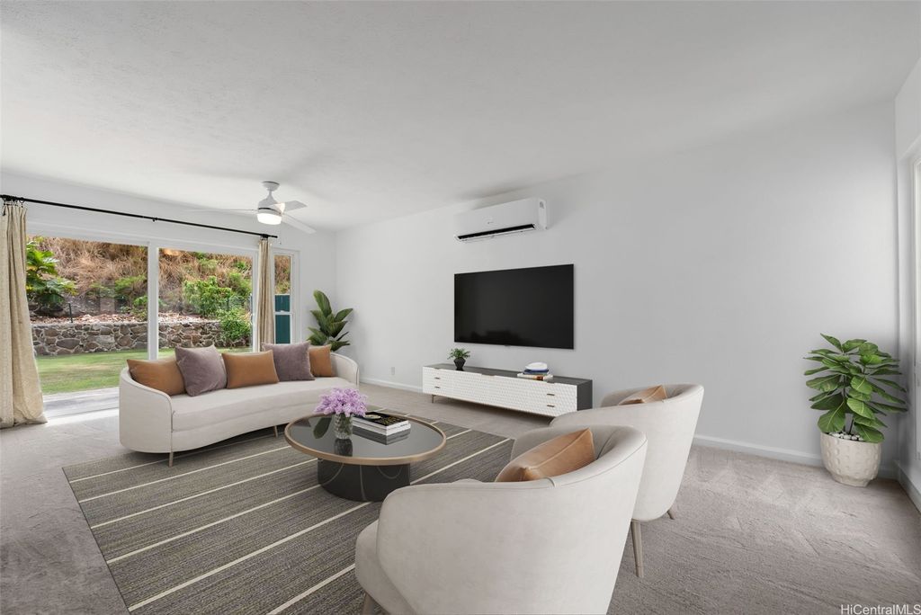 Don't miss this meticulously maintained 4 bdrm/2 bath single-level home nestled in the peaceful Kamiloiki neighborhood. Situated on an 8,000 sq. ft. lot, this residence offers nearly 1,400 sq. ft. of interior living space and features split AC's, ceiling fans in every room, fresh interior paint, new carpet, a new roof, and a tastefully updated open-concept kitchen. Enjoy seamless indoor-outdoor living with a spacious backyard with mature fruit trees, framed by a lush, green backdrop"”perfect for relaxing and entertaining. Ideally located just minutes from schools, beaches, shopping, dining, and the Hawai"˜i Kai marina, this home combines comfort, convenience, and island lifestyle in one exceptional package! A few photos have been virtually staged(enhanced).