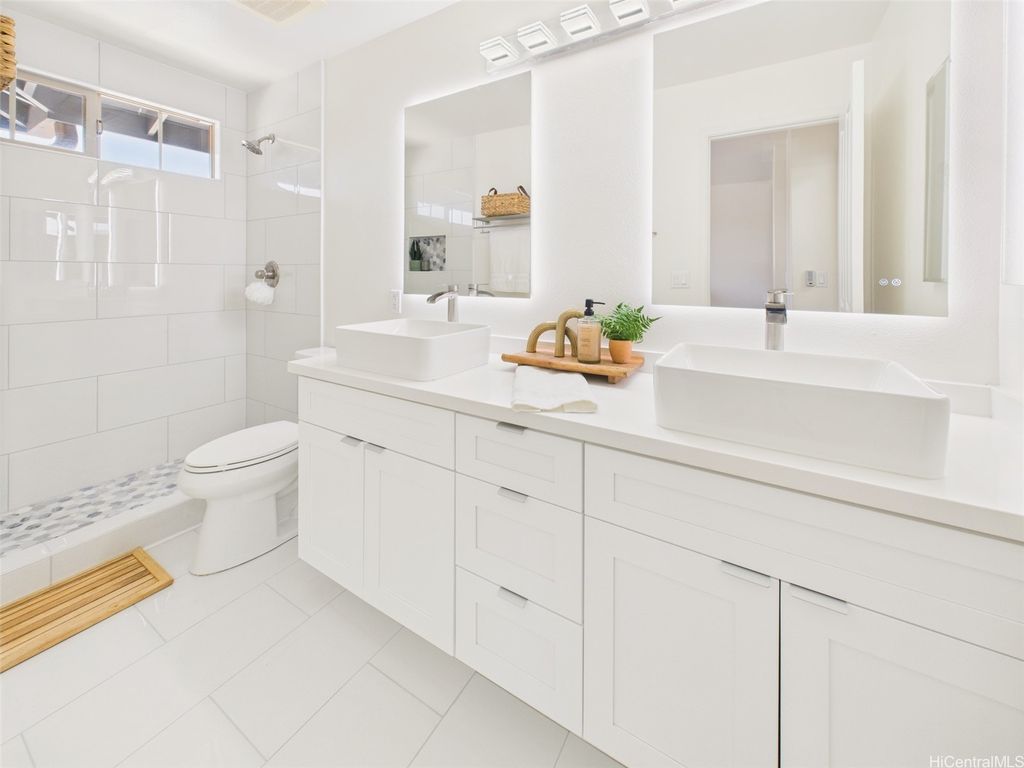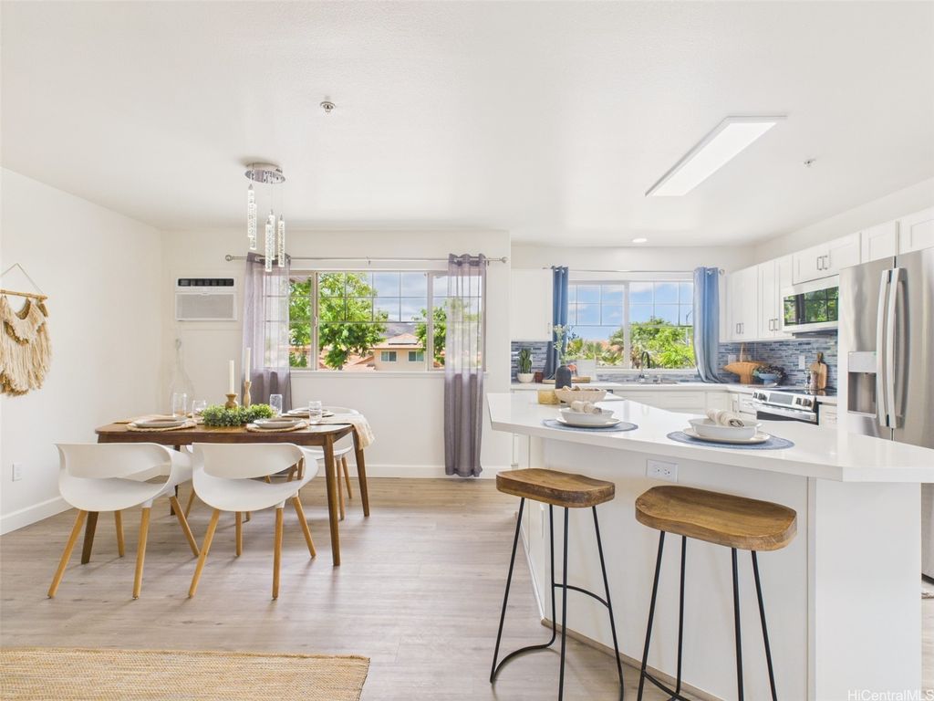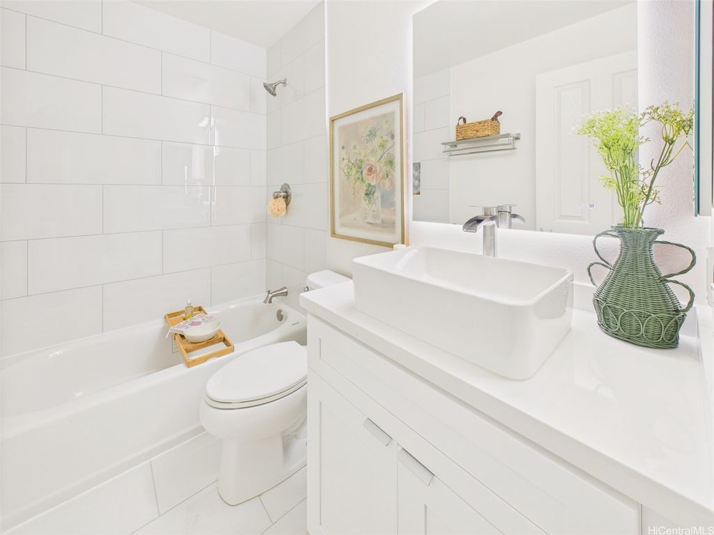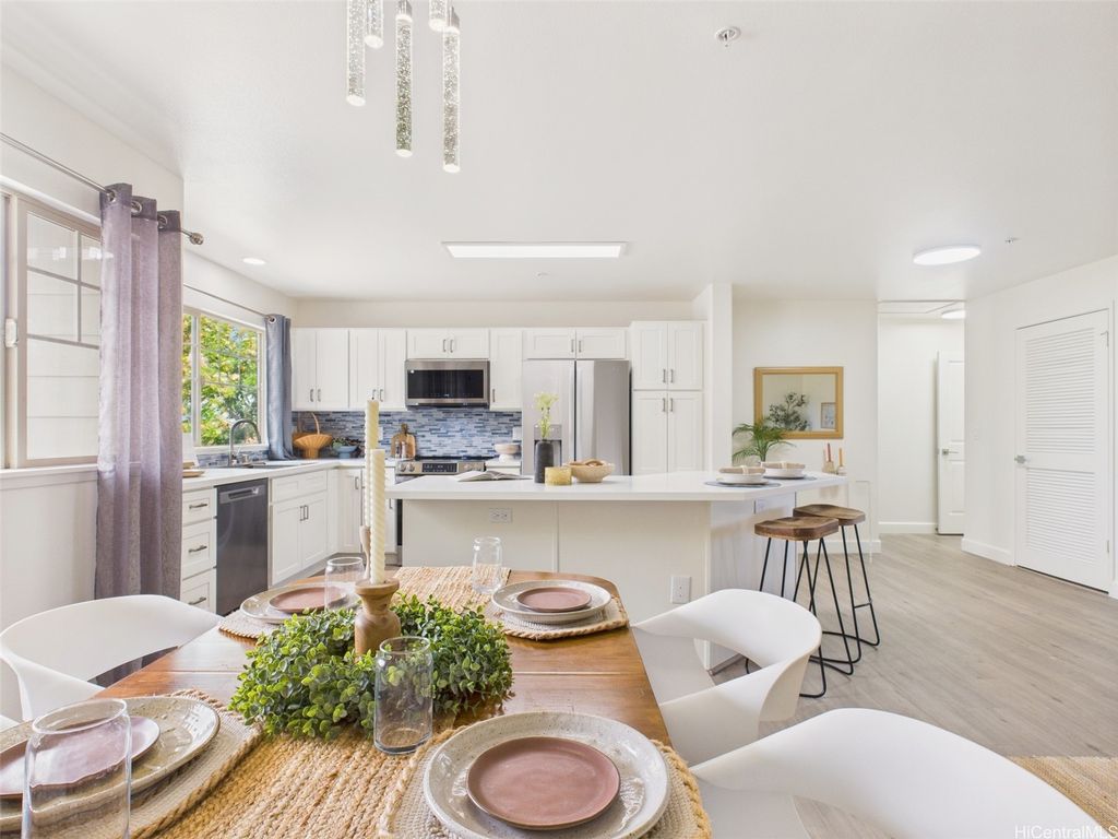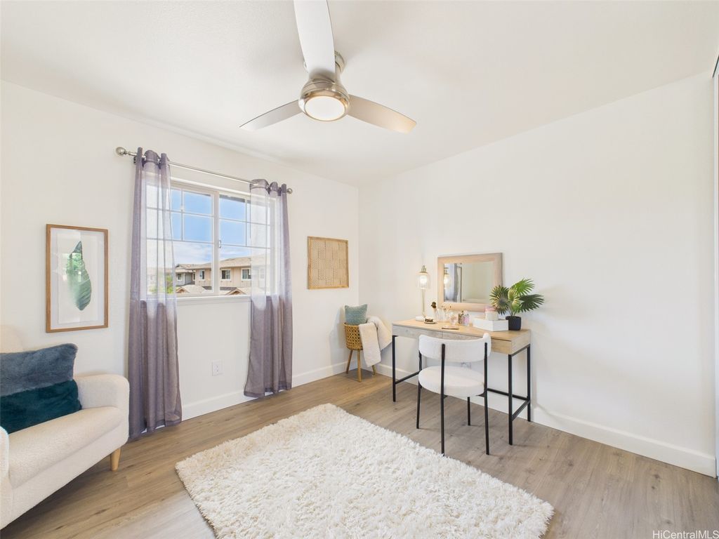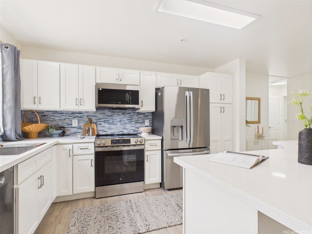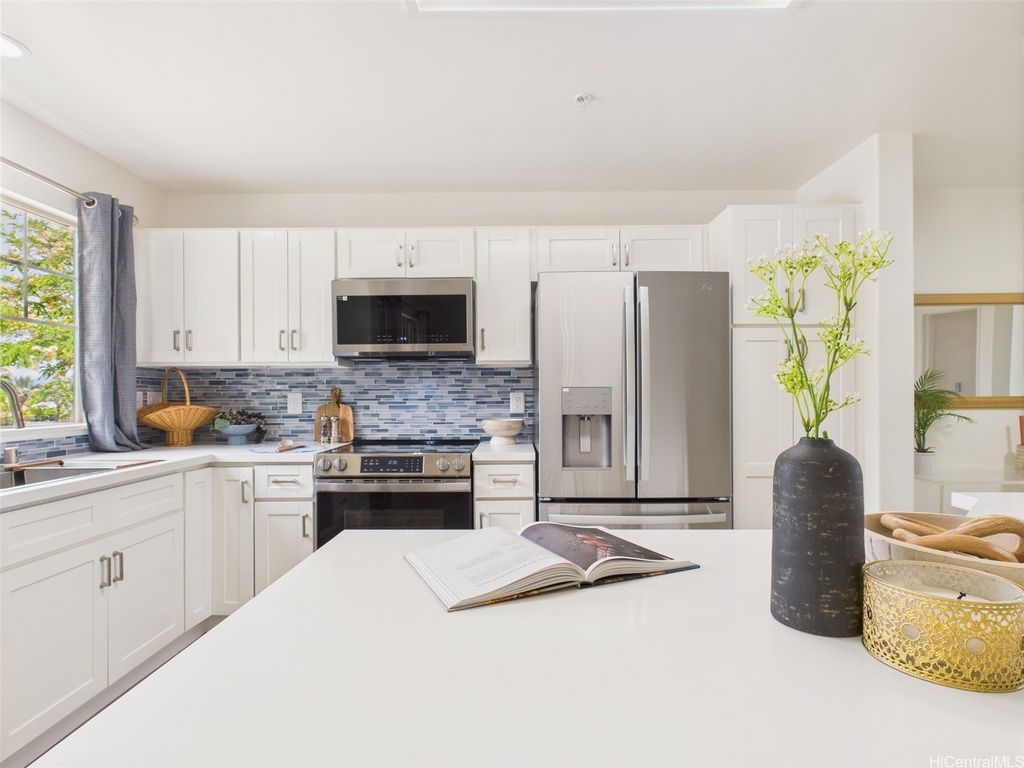 Everything's been done! Just move in and live your best life in this completely renovated, top-floor townhome in Nohona II! From the moment you walk in, you'll notice the new everything, luxury vinyl plank flooring, fresh interior paint including ceilings, modern baseboards, and sleek quartz countertops with matching backsplash. The kitchen features refinished cabinets and a full suite of brand-new stainless steel appliances: fridge, oven, microwave, and dishwasher. Both bathrooms were fully redone from top to bottom...new tile floors, tiled showers, quartz counters, vanities, sinks, faucets, bathtub, lights, and luxury lighted mirrors. Comfort upgrades include two new AC units, ceiling fans, light fixtures, electrical outlets, door handles, and shut-off valves throughout. Also equipped with a brand-new FULL SIZE washer and dryer, and a new water heater for energy efficiency. Enjoy a one-car garage, driveway parking, and access to the Villages of Kapolei rec center with pool and community amenities. All just minutes from Ka Makana Ali"˜i, great schools, dining, and entertainment. Ask your agent for a copy of the pre-listing home inspection report. Open House: Sunday (8/24), 1-4 PM.