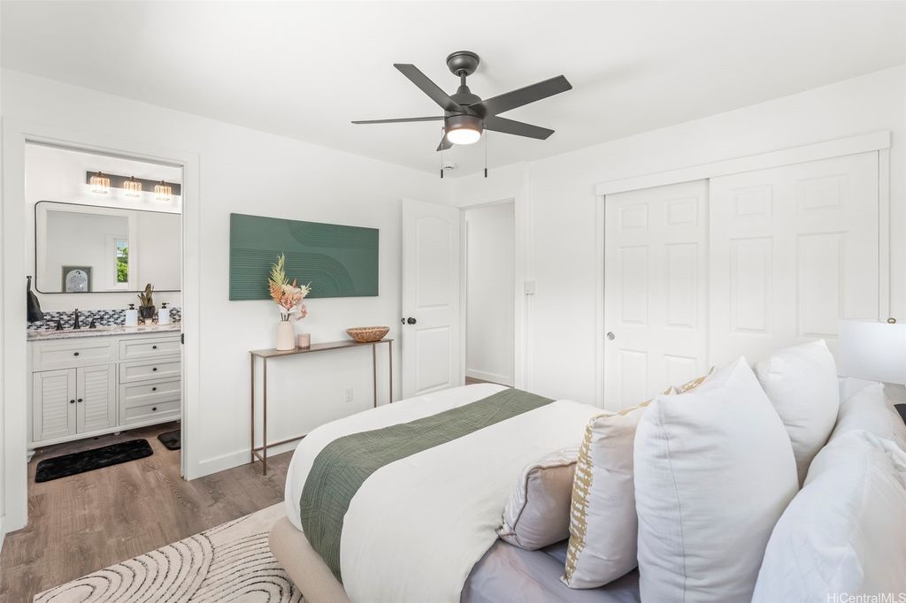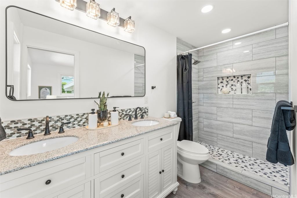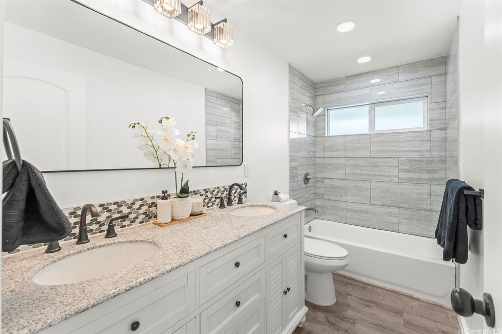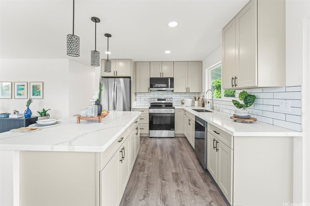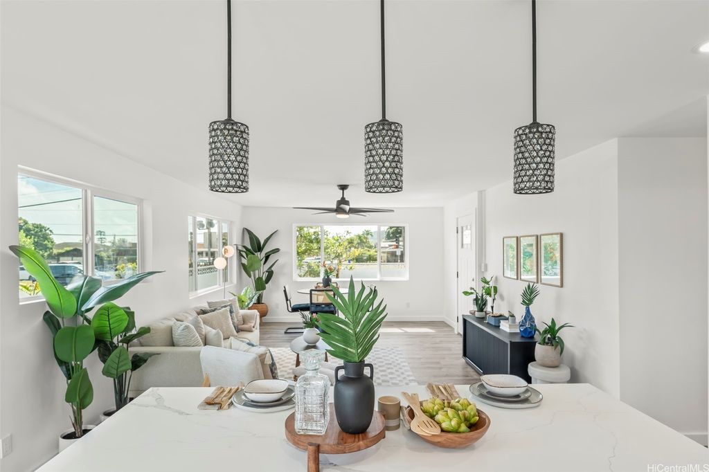 Settled peacefully against the glorious backdrop of Kaneohe's world famous Ko'olau Mountain range, this house is refreshed and ready for a new family to call it home! After being owned by one family for over half a century, the property was remodeled in 2025 from the inside out. This stunning single family home boasts a brand new shingle roof, electrical rewiring (including a new breaker panel and meter), upgraded plumbing, and a complete overhaul of the interior, including, but not limited to, new vinyl flooring, new bathrooms, new kitchen cabinets, new windows, and a crisp coat of paint to top it all off. Relax with friends and family in your spacious living room where views of the mountains and palms surround you, or take the party outdoors to your walled front yard and bask in the scent of the flowering trees. Ideally located just a short distance from Kane'ohe Beach Park, Kaneohe Bay, Windward Community College, and smack dab in between Windward Mall and Windward City Shopping Center. Island living is made easy here!