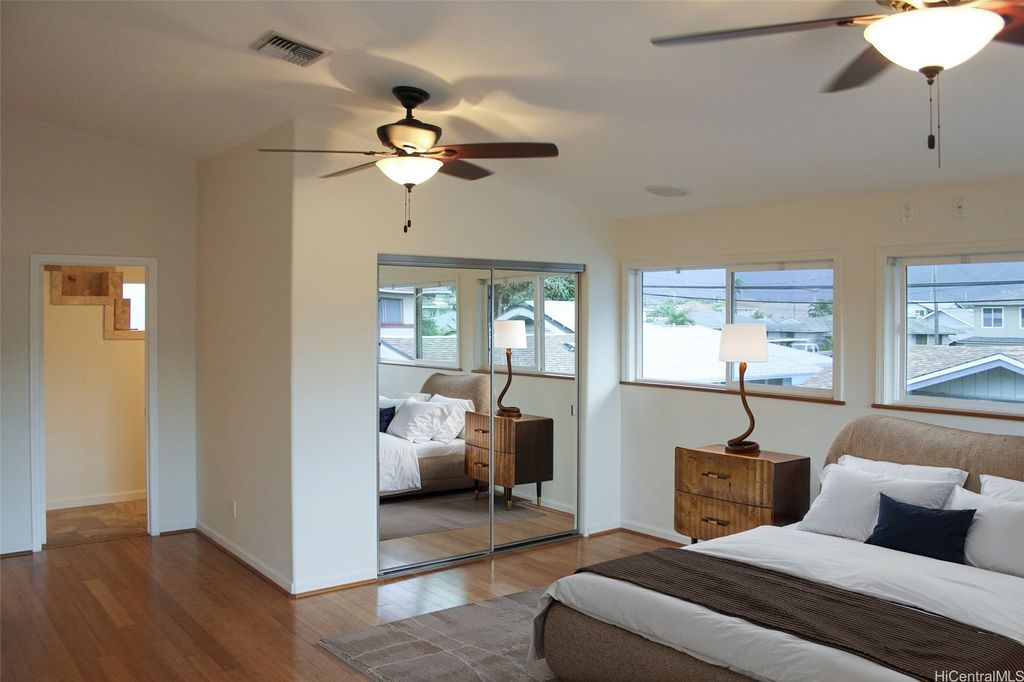 Two blocks from the sandy beach! 4-bedroom 3.5 bath w/ attached garage. Approx. 2596 sf. interior living space + roof top lanai with breezy Koolau Mtn. views. Every bedroom has and en-suite full bathroom. Coconut Grove is a popular neighborhood, don't miss out on this unique opportunity to live a few blocks to Kalama beach and Kailua Town shops and hip eateries close by.. This cozy, well cared for home features modern amenities such as, vaulted ceilings, open concept kitchen, travertine & bamboo floors, stainless steel appliances, attached, spacious garage, washer/dryer, & BOTH split & central AC. Roomy covered 2 car garage with lower-level entry to the kitchen and pantry. *Includes an EV CHARGER. Unique floorplan that offers a bedroom suite on the first floor with walk-in closet and full bathroom, perfect for guests/in-laws. Rinse off in the enclosed outdoor shower. Fenced yard for privacy and security. Vacant and EZ to show. Part of a 2-unit CPR. 245 Hualani St. A, next door can be purchased together or separately, each have their own TMK and have separate water and electric meter and are well designed to stand alone for privacy between the dwellings.