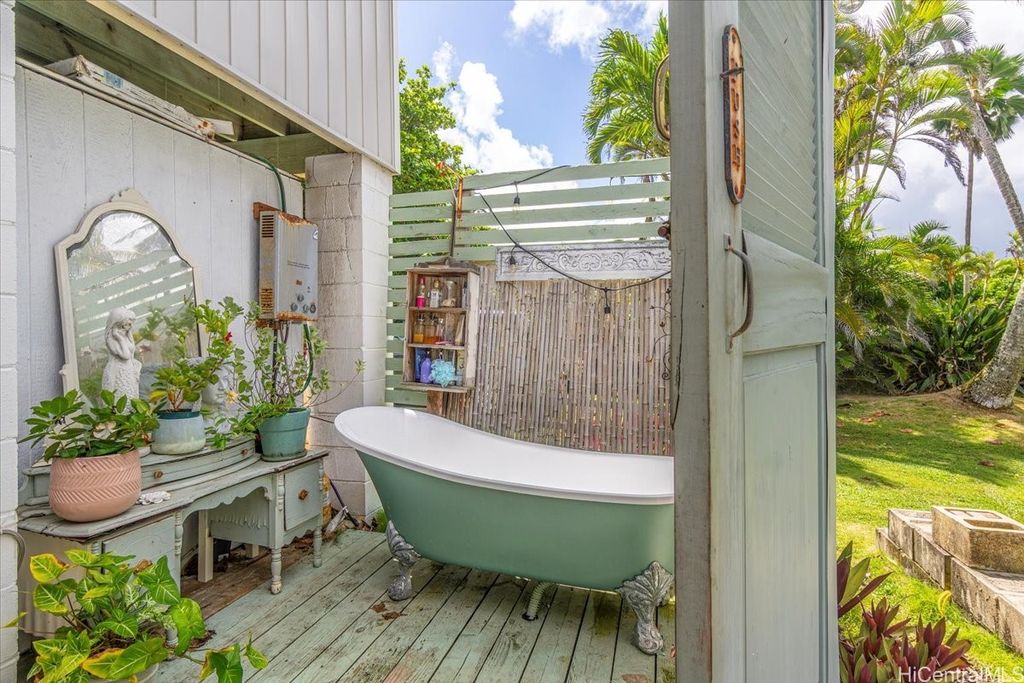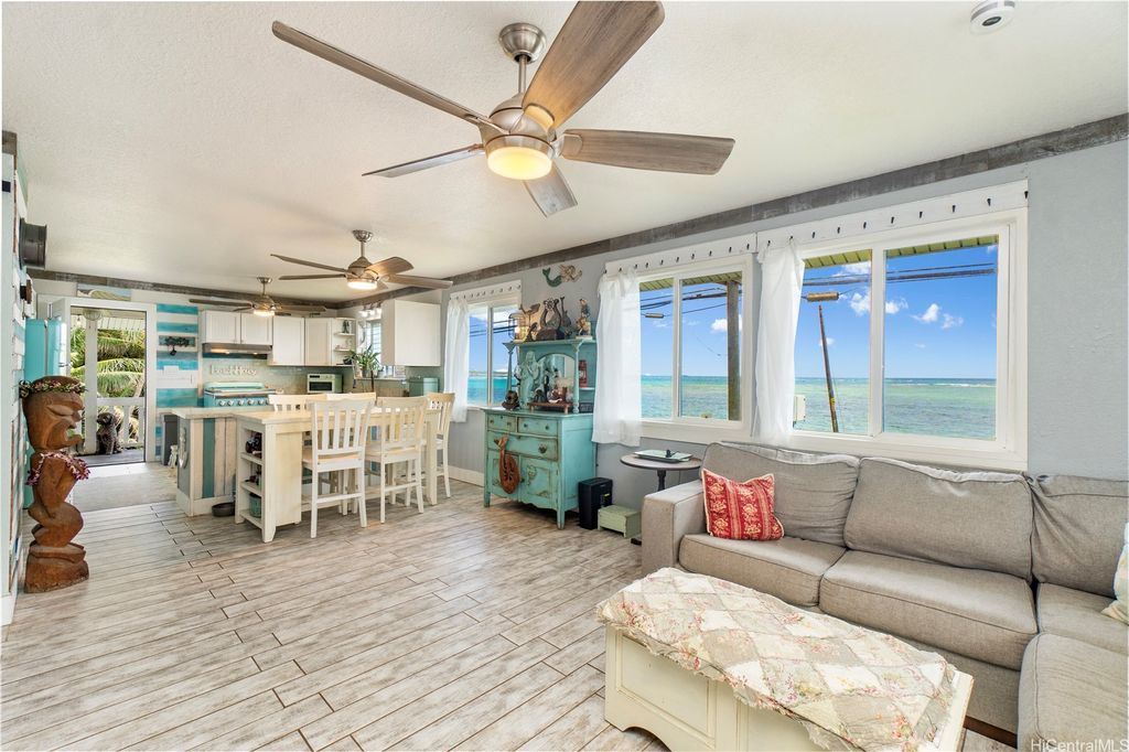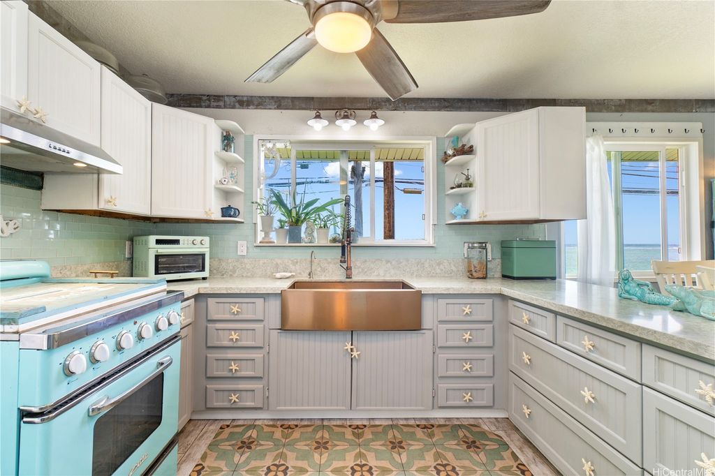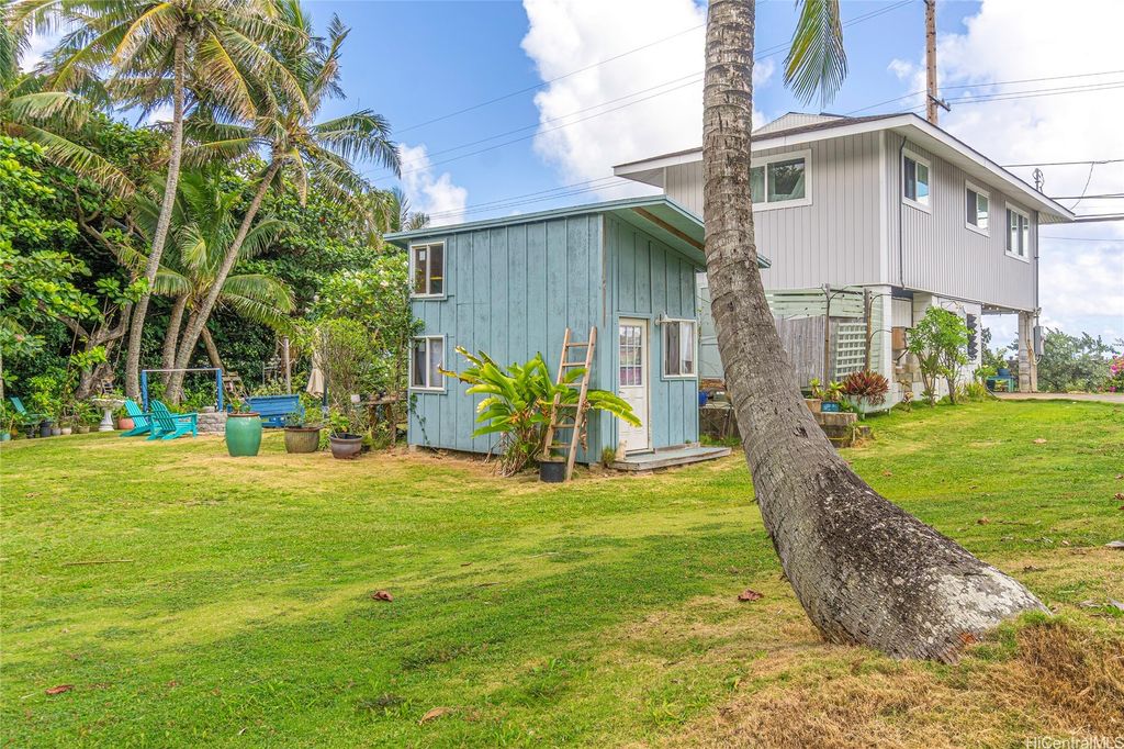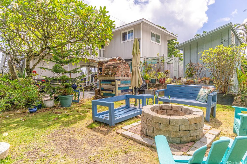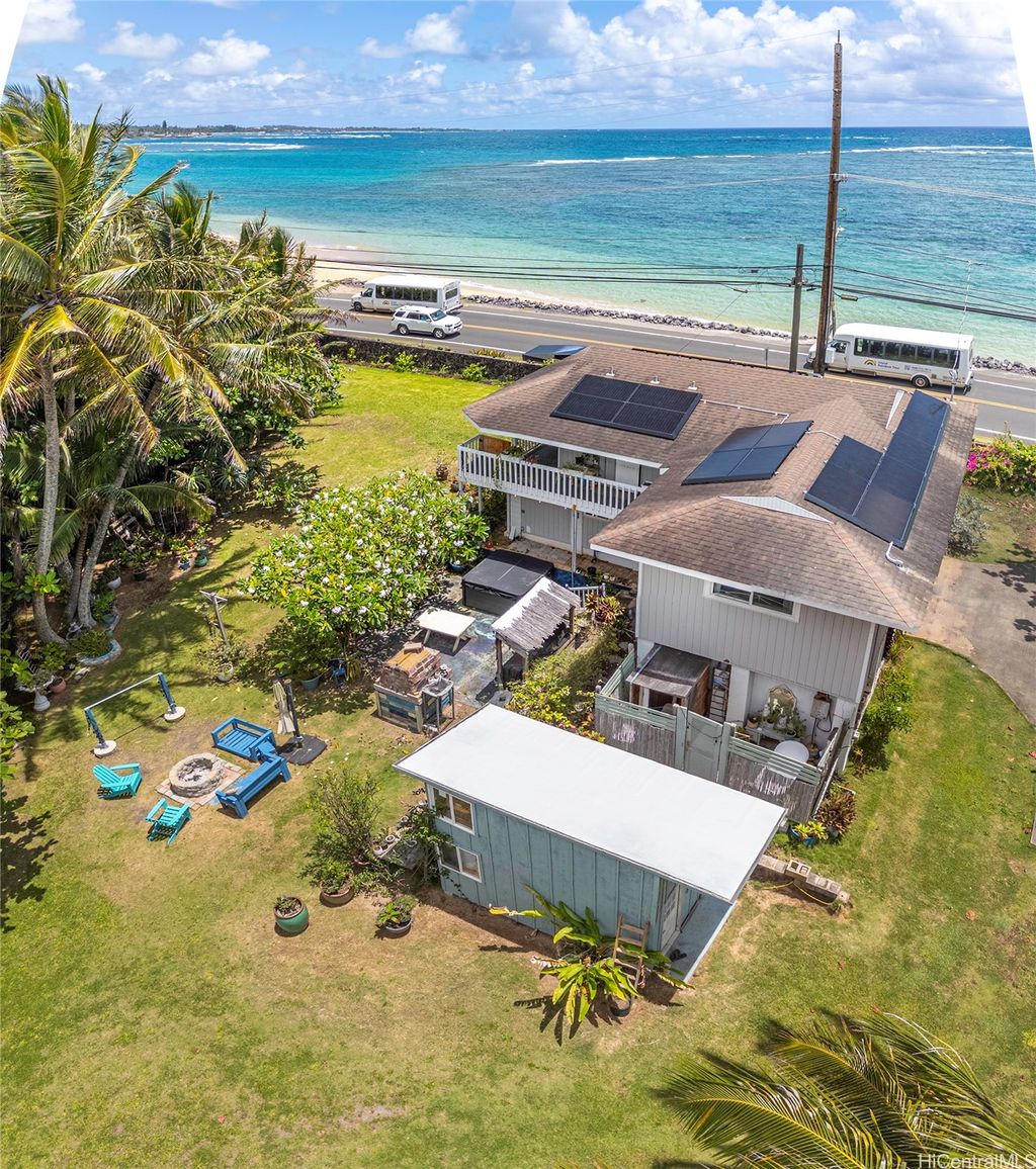 Welcome to your beachside retreat along the scenic Windward Coast. This unique single-family home sits on a generous lot directly across from the ocean, blending coastal beauty with country charm. The remodeled main home offers 2 bedrooms, 1 bath, new flooring, kitchen, bathroom and windows. The kitchen features a large copper farmhouse sink, adding rustic elegance. Three additional flex spaces offer versatility for a home office, guest suite (with extra bath), or studio. Outdoor living steals the show"”relax by the fire pit, cook artisan pizzas in the custom oven, or soak in the hot tub after a beach day. A private outdoor bathroom enhances this backyard oasis. Owned solar panels, battery, and EV charger keep your lifestyle sustainable and efficient. The gated property includes ample parking for guests and beach gear. This isn't just a home"”it's a lifestyle. Schedule your private showing today! Note: Bathroom count may not match TMK records. Buyer to perform their own due diligence.