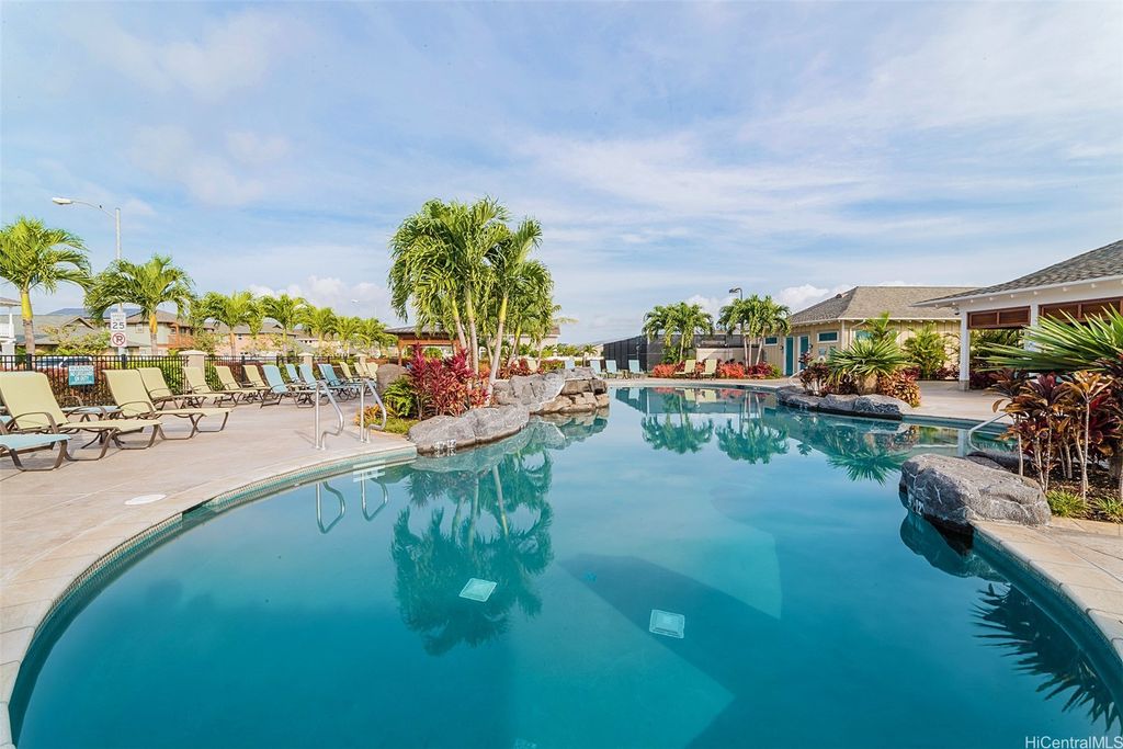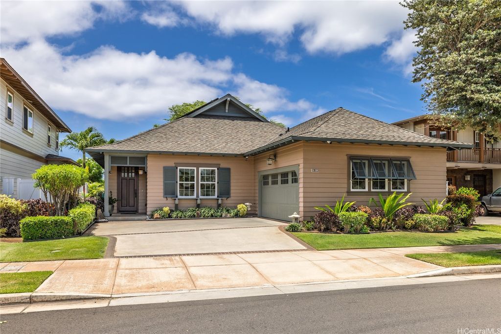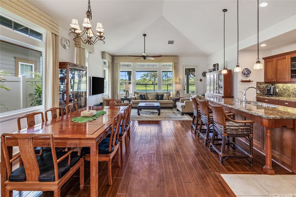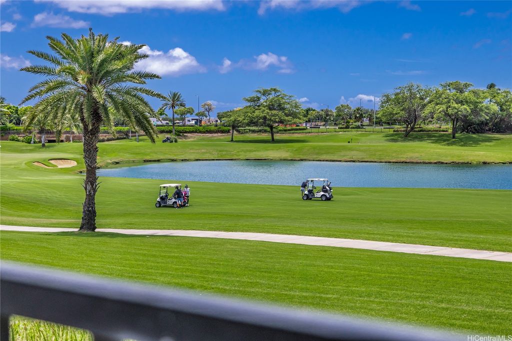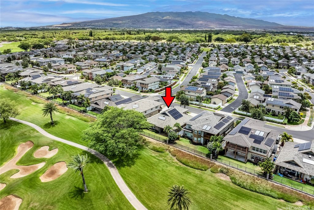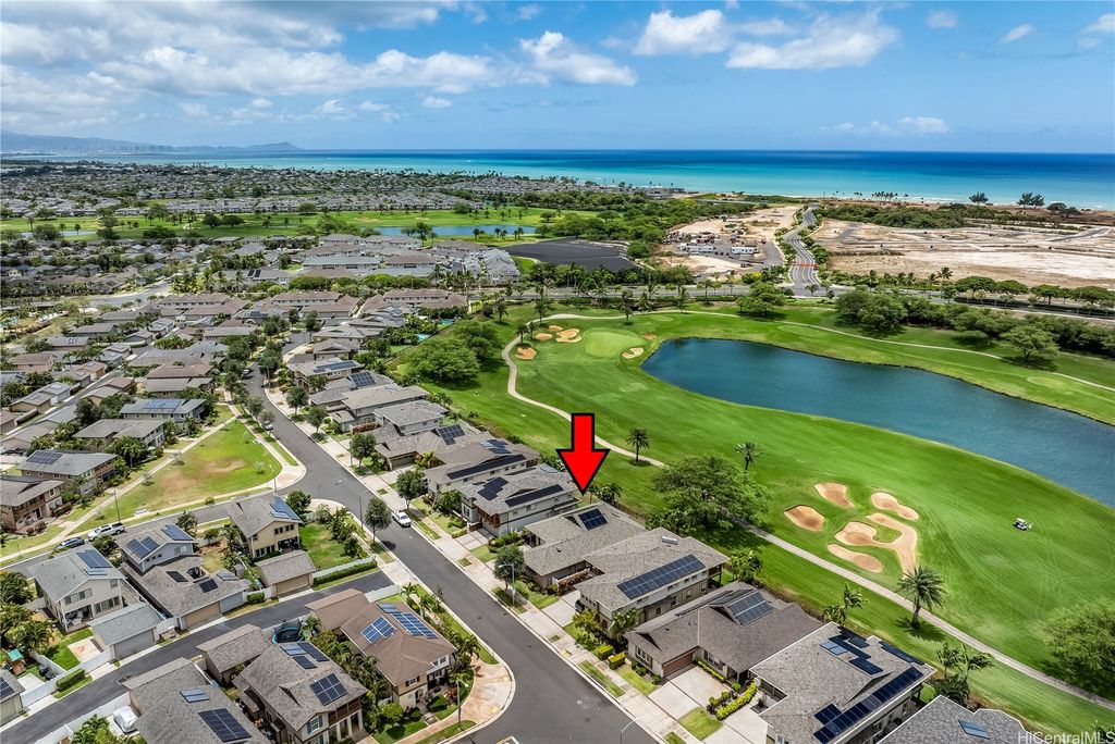 Golf Course frontage living at it's best! This stunning, SINGLE LEVEL home is located in the prestigious neighborhood of Hoakalei-Ka Makana and right on the 8th fairway with water and gorgeous green views ! This location, known as the " Golden Mile" of Kaiokia Street is because of the location on fairway and the water views. You are not just buying a home here, you are buying a lifestyle. Home has a close proximity to the Hoakalei Country Club/restaurant known as "Reflections" with renowned Chef Roy Wong. Memberships to golf, dining & social memberships are available to residents. Also close by the Wai Kai Wave Pool for some exciting and wild surfing/Body boarding fun! Entire home has been meticulously cared for from original owner and it shows! You will love cooling your home with the sun as home comes with 23 OWNED PV system under original NEM Agrmt.with Hawaii Electric. Solar hot water and solar attic fans. Average energy bill between $18.00 to $50.00/MO. HOA fee's cover Internet/land line phone, sec. patrol and use of nearby community pool, fitness center, and tennis/paddle ball courts. Bonus, 2 stand up attic areas. Garage has work bench and lab grade storage cabinets.