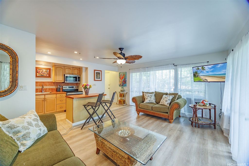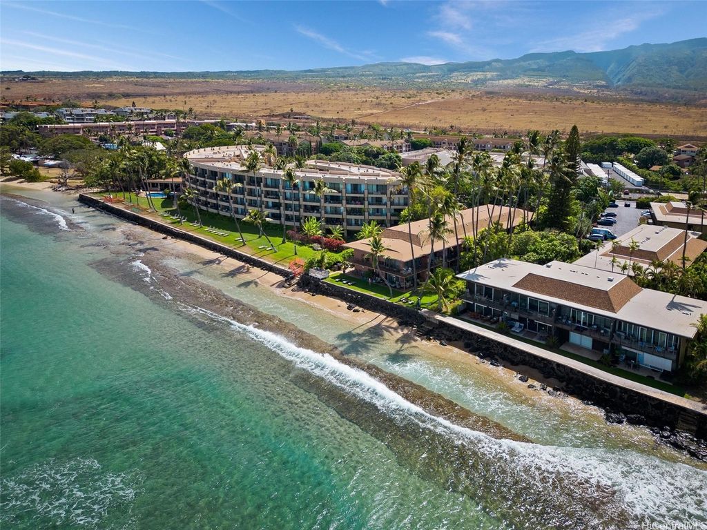 Maui Sands Seaside is your very own "Slice of Paradise". This one bedroom , one bath condo with remodeled shower features an open floor plan with fresh paint and laminate flooring. The kitchen offers ample wood cabinets storage, center island and and decorative tile counters. The stove is new and the condo comes turn key furnished. The double sized lanai is perfect for relaxing or entertaining. The ocean breeze will delight you from the observation deck next to the BBQ area and oceanfront lounge chairs where you can watch whales in season, turtles play, and take in the sunset and outer island view. Leasehold Property. This condo comes with assigned parking space, is zoned A2, and maintenance fee is currently 1200.70 and Leasehold fee of 684.00. Common areas, water, sewer, trash and exterior insurance is covered.