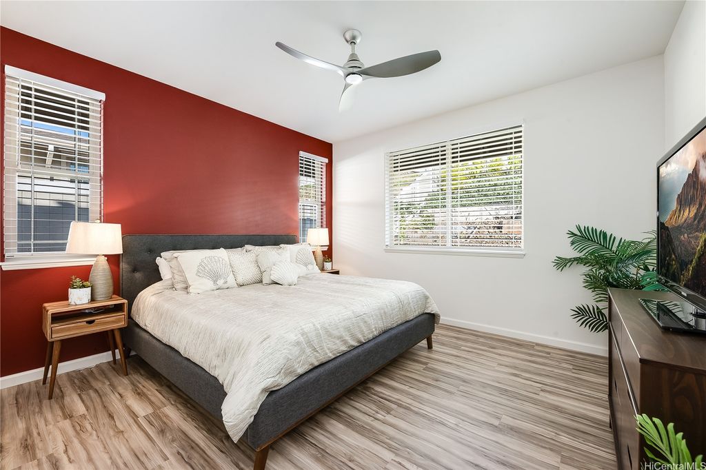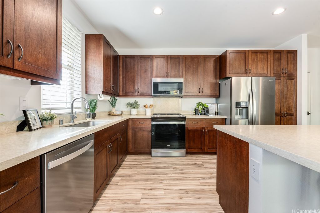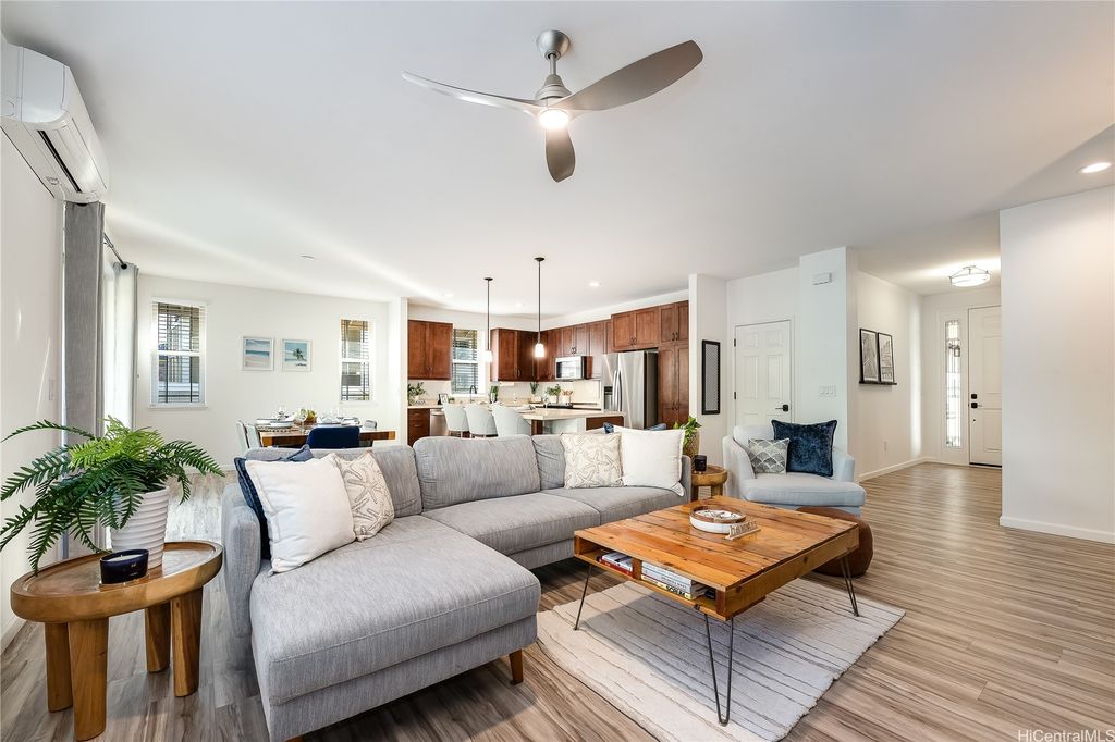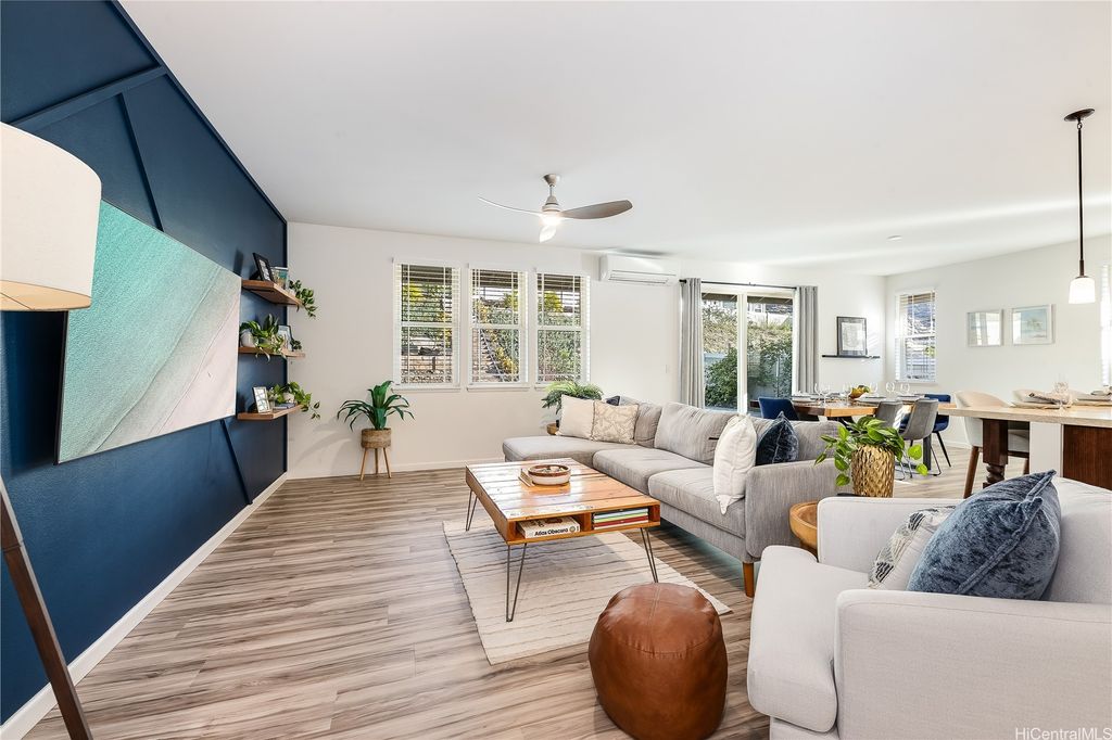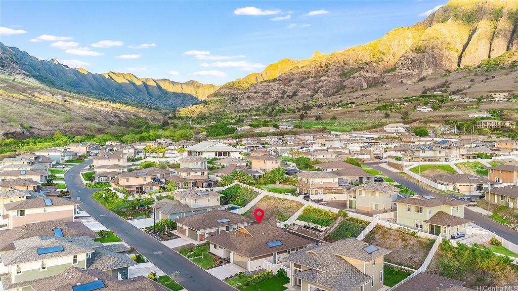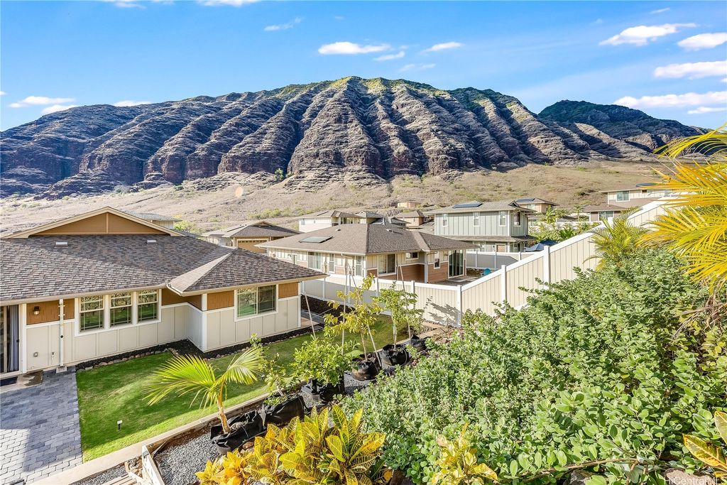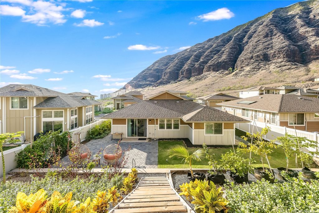 Legal Short Term Vacation Rental in Resort Zoned Cottages at Mauna'Olu, currently used as a primary residence and meticulously cared for. Luxury living in the Highly Desirable Floor Plan 3, this Single Level home offers more Interior Square Footage, featuring 3 spacious bedrooms and 2 beautifully appointed bathrooms. You and your guests will enjoy Split AC, Upgraded Luxury Vinyl Flooring, 9-foot Ceilings Throughout, and Aesthetic Accent Walls making this Pinterest Worthy Home perfect for their Instagram Posts! Situated on over 7,800 square feet of land, this property is an entertainer's dream! Elevated Landscaping adorned with lush greenery, rock wall, native plants, outdoor shower, and automatic irrigation with ample room to relax, bbq or host gatherings under the Hawaiian sun. The custom garden steps will let you take in all the Makaha Ocean & Valley Views! Exclusive access to the Mauna'Olu Estates Gated Community the Cottages offer lifestyle amenities, Pool, Community Recreation Room & Gym! Proximity to world-class beaches in just minutes with lots of Dining & Shopping available if you take a cruise over to Ko'olina or Kapolei! Don't miss the opportunity to Make Hawaii Home!
