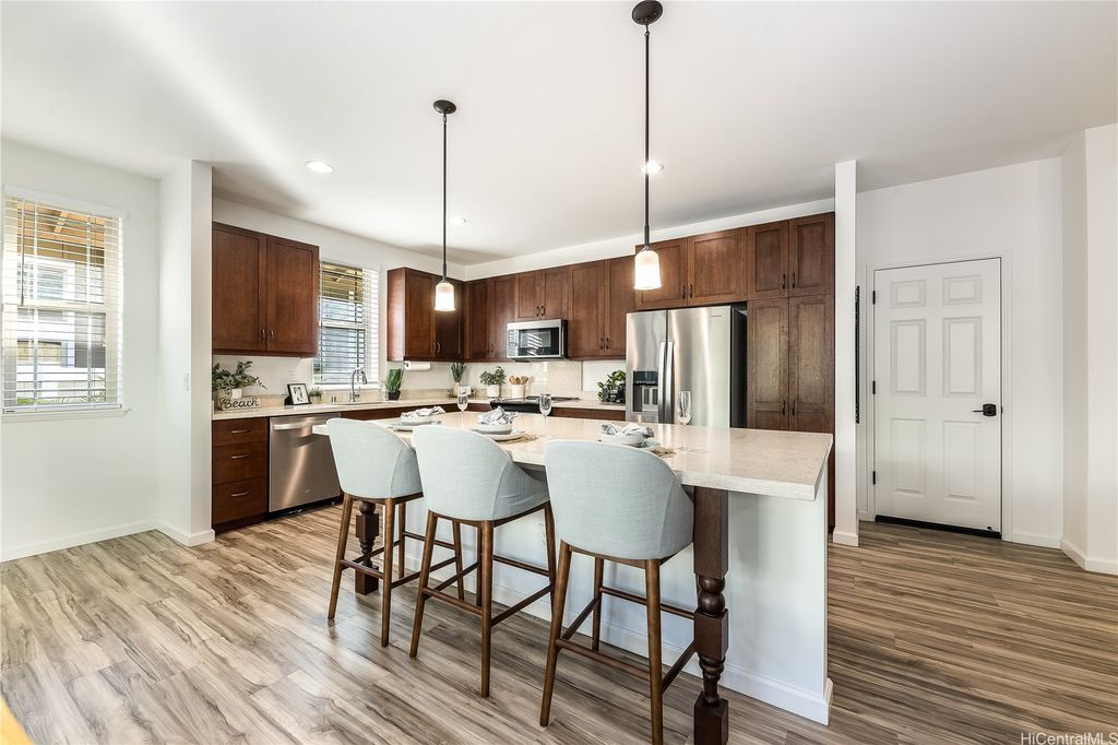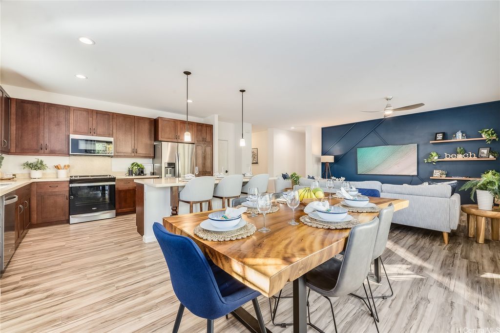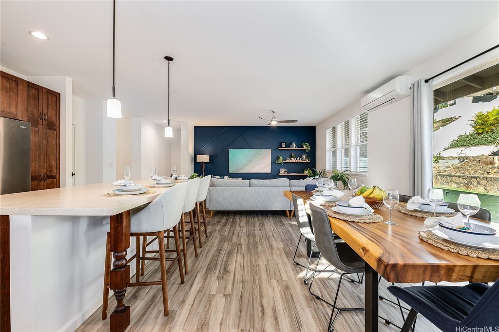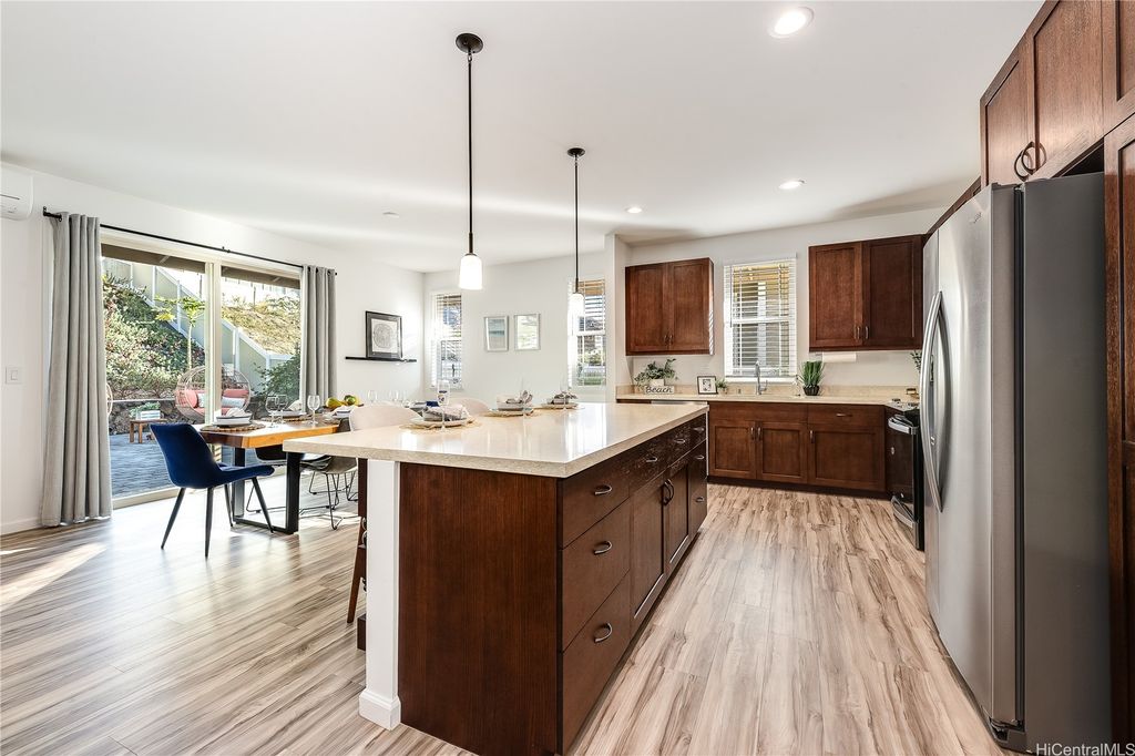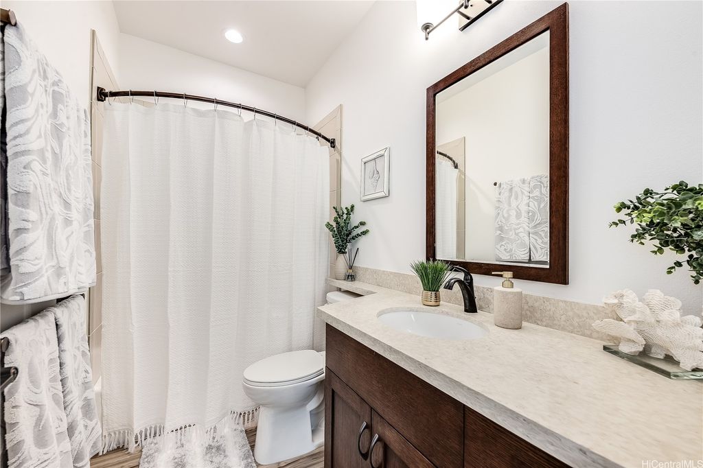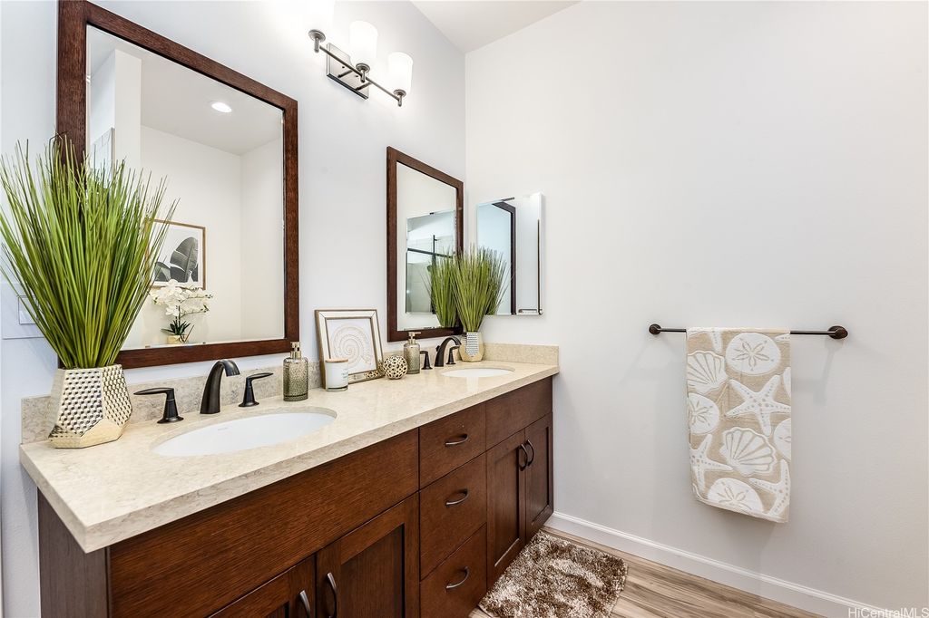 Legal Short Term Vacation Rental in Resort Zoned Cottages at Mauna'Olu, currently used as a primary residence and meticulously cared for. Luxury living in the Highly Desirable Floor Plan 3, this Single Level home offers more Interior Square Footage, featuring 3 spacious bedrooms and 2 beautifully appointed bathrooms. You and your guests will enjoy Split AC, Upgraded Luxury Vinyl Flooring, 9-foot Ceilings Throughout, and Aesthetic Accent Walls making this Pinterest Worthy Home perfect for their Instagram Posts! Situated on over 7,800 square feet of land, this property is an entertainer's dream! Elevated Landscaping adorned with lush greenery, rock wall, native plants, outdoor shower, and automatic irrigation with ample room to relax, bbq or host gatherings under the Hawaiian sun. The custom garden steps will let you take in all the Makaha Ocean & Valley Views! Exclusive access to the Mauna'Olu Estates Gated Community the Cottages offer lifestyle amenities, Pool, Community Recreation Room & Gym! Proximity to world-class beaches in just minutes with lots of Dining & Shopping available if you take a cruise over to Ko'olina or Kapolei! Don't miss the opportunity to Make Hawaii Home!