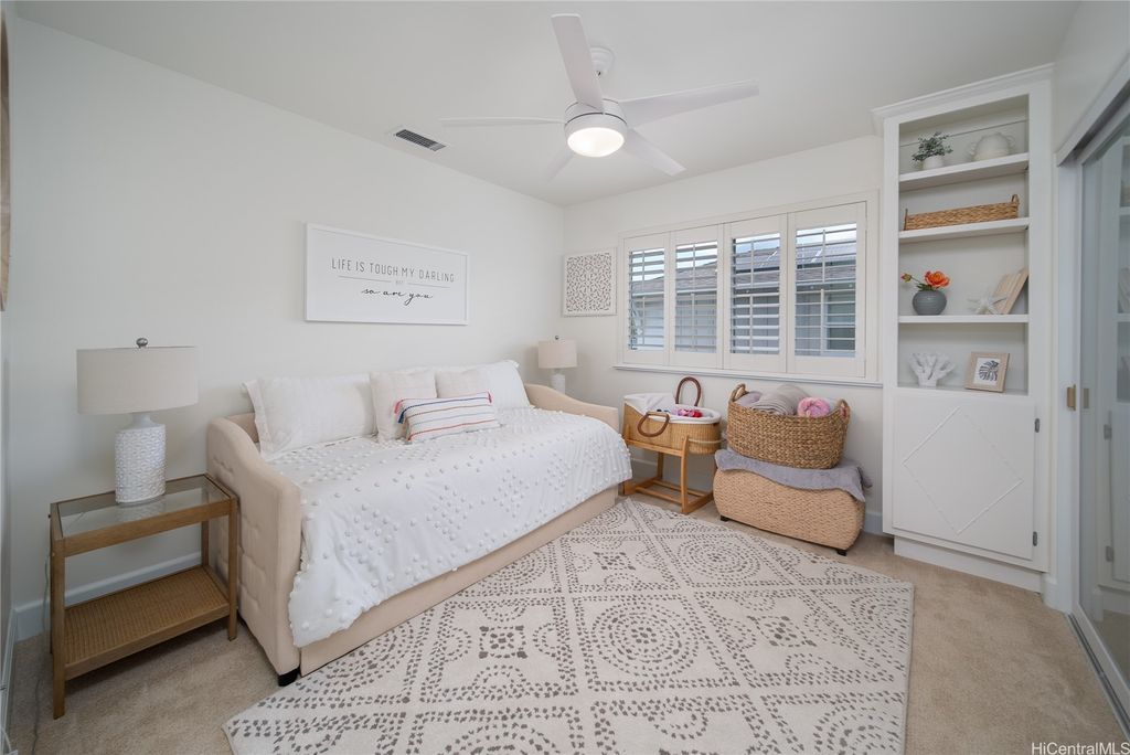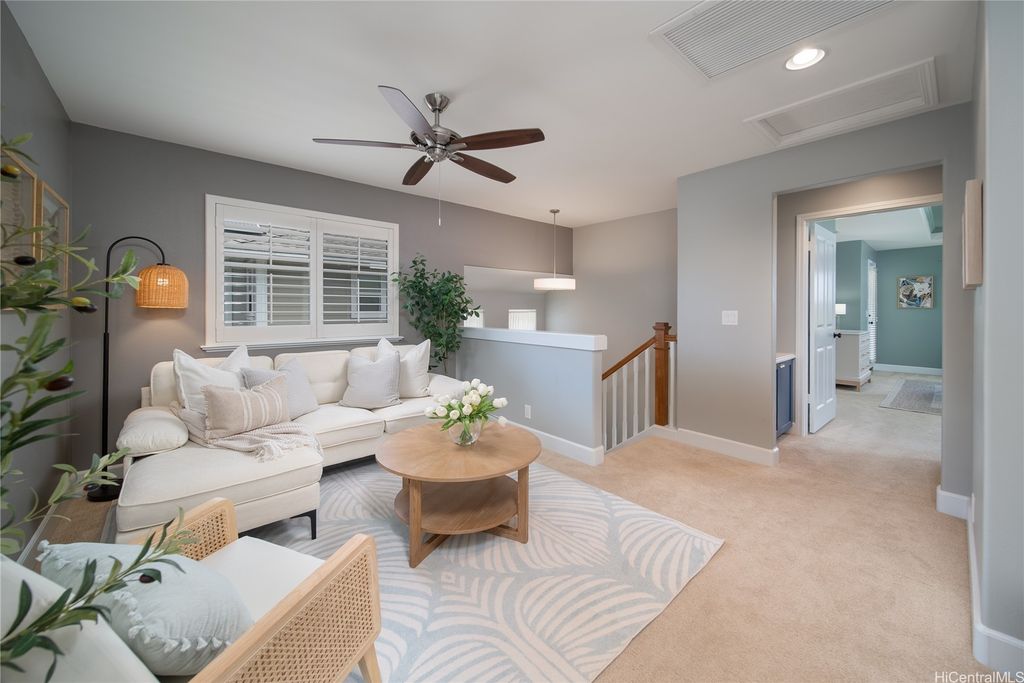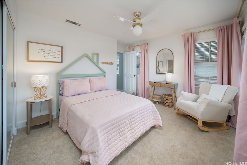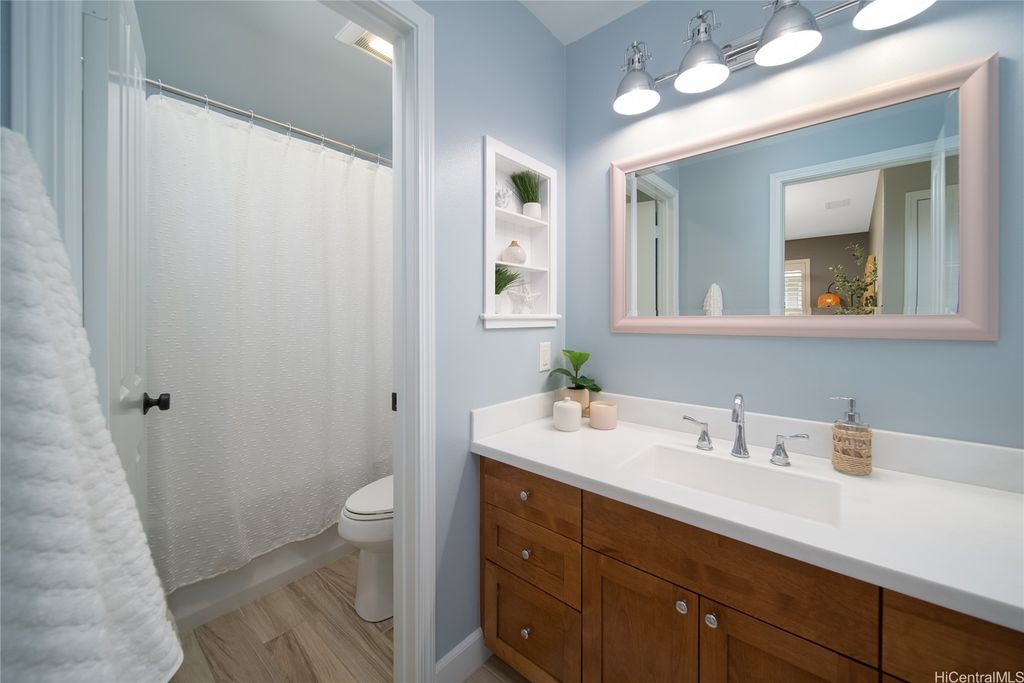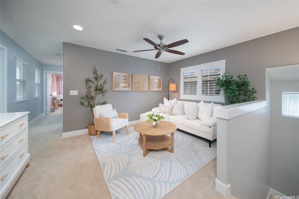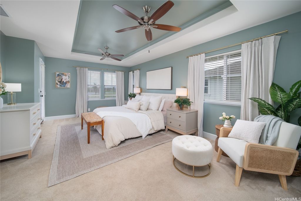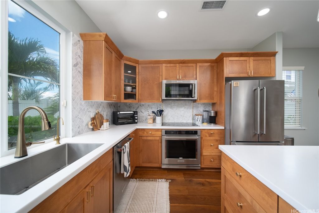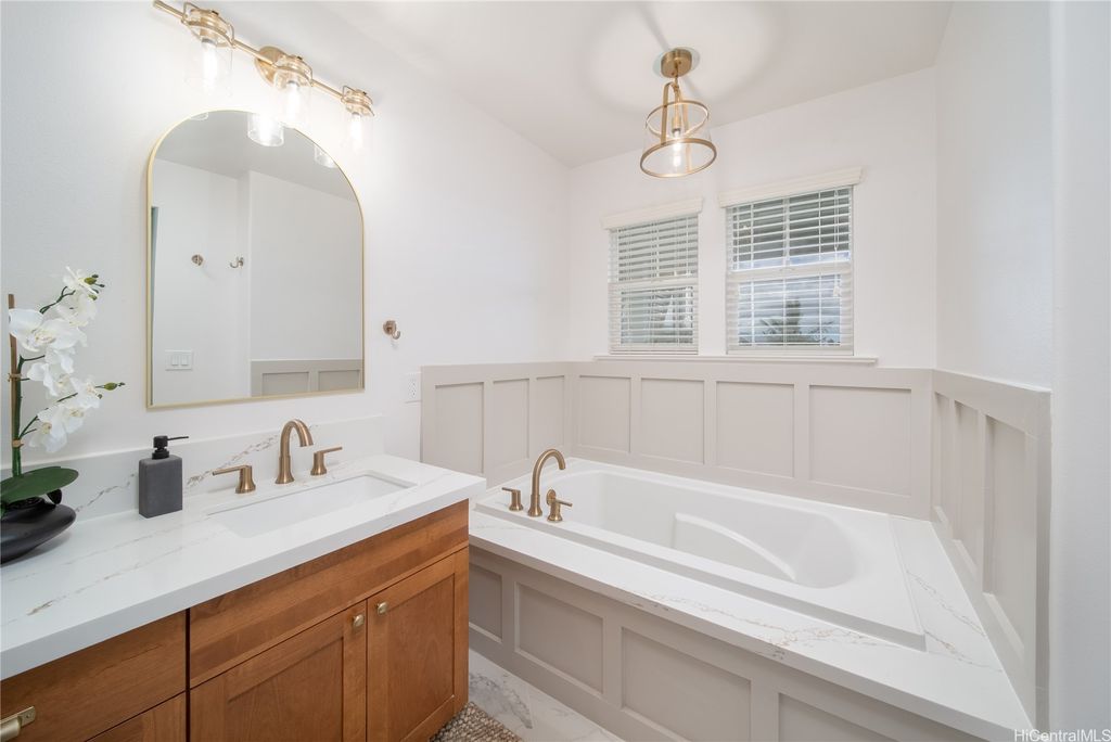 Golf Course Frontage Home & Luxury Upgrades & Stunning Views! This upgraded golf course frontage home offers breathtaking views and is just a short distance to a pristine Hawaiian beach. Never rented and move-in ready, it features real wood flooring, plantation shutters, and crown molding in the primary suite. Stay comfortable with central A/C and six ceiling fans. The upgraded kitchen boasts an expanded island, while the remodeled bathroom adds elegance. OWNED SOLAR PANELS enhance energy efficiency. From the primary suite's covered lanai, take in stunning sunsets over Hoakalei's golf course and water features. The lush yard with tropical blooms creates a serene escape. Just a 10-minute walk to One"˜ula Beach and close to surf spots and the LineUp at Wai Kai, featuring dining, shopping, and a world-class wave pool. With resort development on the horizon, this home's value and appeal will continue to grow. Don't miss this rare opportunity to own a luxury golf course home in paradise!