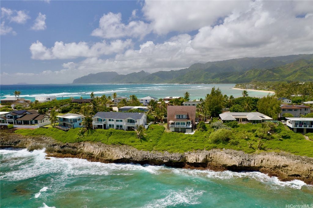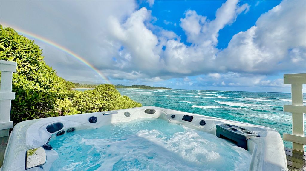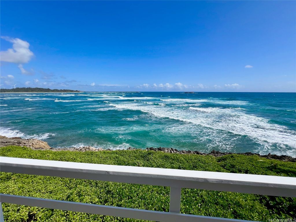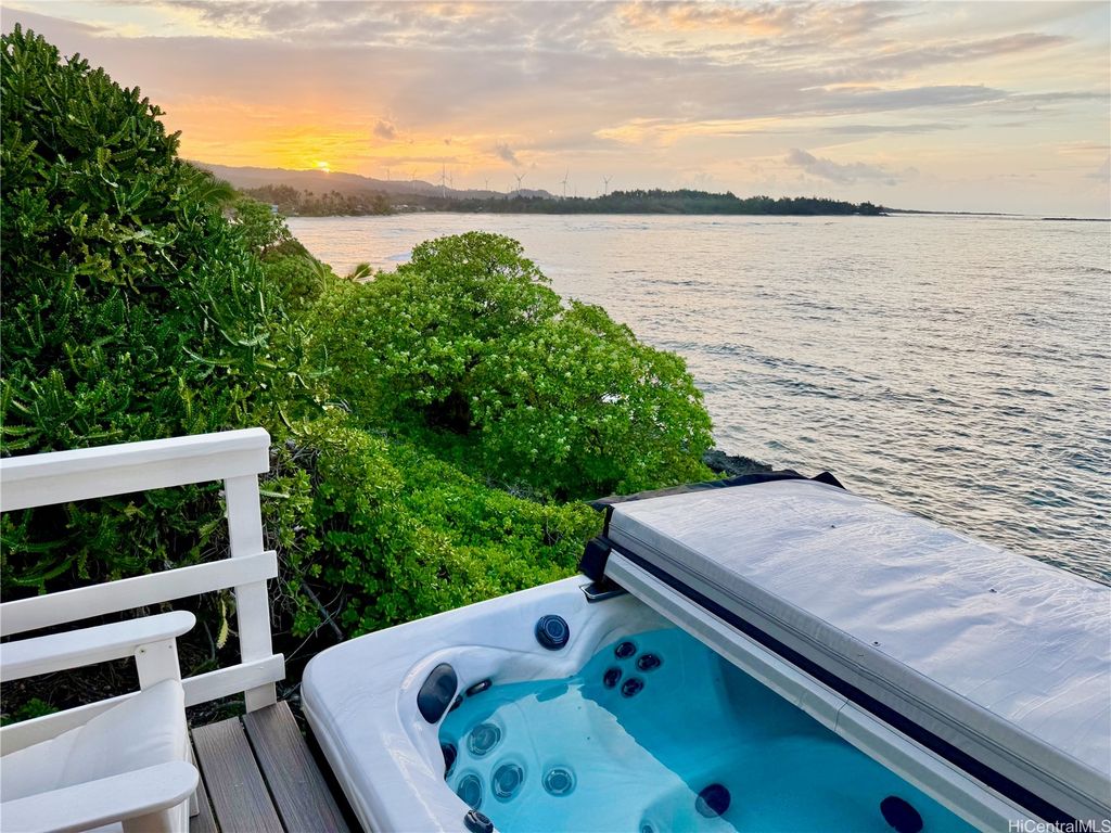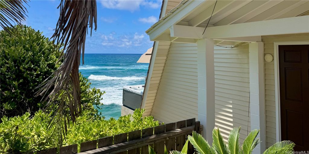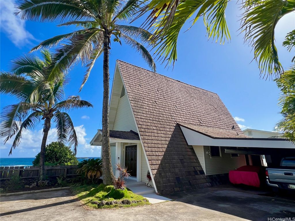 Stunning and gorgeous panoramic oceanviews from every room in this beautifully renovated 3 bedroom 2 bath home on the iconic Laie Point Peninsula. This 2 story A frame home is set back from Naupaka Street and directly overlooks Laie Bay. Dine adjacent to the Pacific, and enjoy unforgettable sunsets from nearly every room in this home. Go to sleep to the sounds of the ocean waves and enjoy incredible oceanviews from the first floor bedroom and the upper level bedrooms. An office nook overlooking the ocean, circular staircase to upper level and a loft that could be multi-purposed, all add to the beauty of this home. Open floor plan and large glass windows make the rooms bright and airy, and the wrap around lanai is wonderful while you watch the sunrise or sunset. While relaxing on the lanai, enjoy watching whales breaching & spouting & manta rays & turtles swimming by. Deeded access to a gorgeous cove beach, close proximity to Laie Shopping Center, BYUH, the Polynesian Cultural Center, & North Shore. The peace & tranquility of this gorgeous home and it's surroundings are wonderful. Very easy to view on short notice.