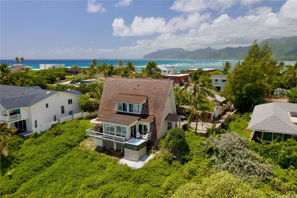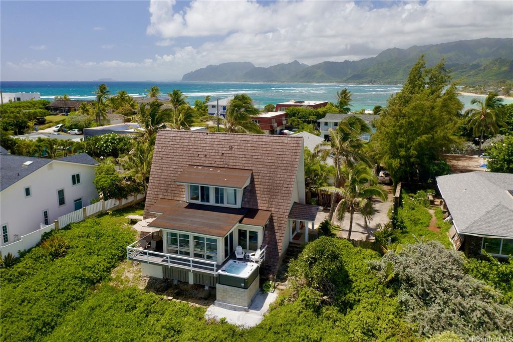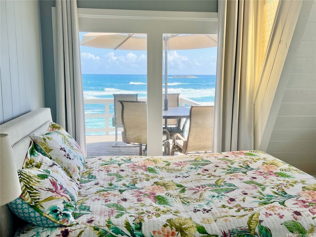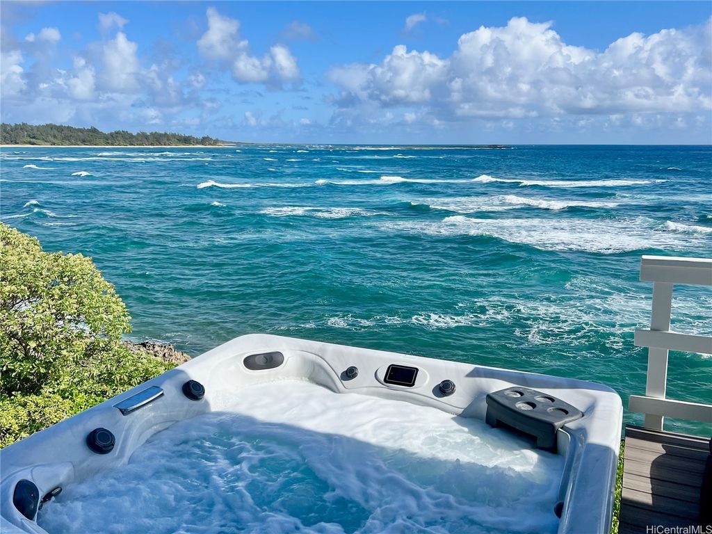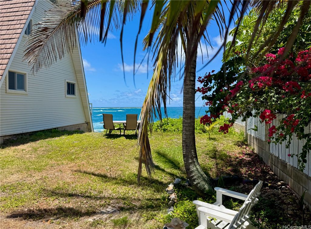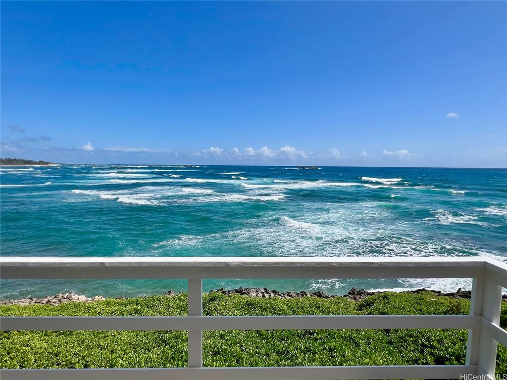 Stunning and gorgeous panoramic oceanviews from every room in this beautifully renovated 3 bedroom 2 bath home on the iconic Laie Point Peninsula. This 2 story A frame home is set back from Naupaka Street and directly overlooks Laie Bay. Dine adjacent to the Pacific, and enjoy unforgettable sunsets from nearly every room in this home. Go to sleep to the sounds of the ocean waves and enjoy incredible oceanviews from the first floor bedroom and the upper level bedrooms. An office nook overlooking the ocean, circular staircase to upper level and a loft that could be multi-purposed, all add to the beauty of this home. Open floor plan and large glass windows make the rooms bright and airy, and the wrap around lanai is wonderful while you watch the sunrise or sunset. While relaxing on the lanai, enjoy watching whales breaching & spouting & manta rays & turtles swimming by. Deeded access to a gorgeous cove beach, close proximity to Laie Shopping Center, BYUH, the Polynesian Cultural Center, & North Shore. The peace & tranquility of this gorgeous home and it's surroundings are wonderful. Very easy to view on short notice.