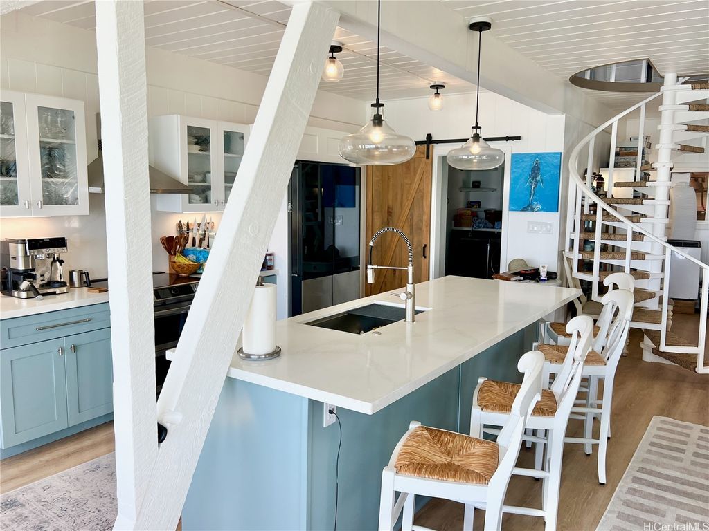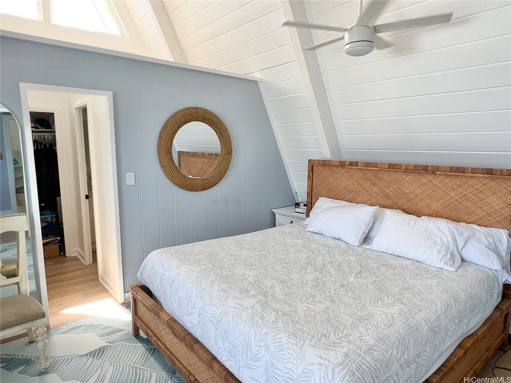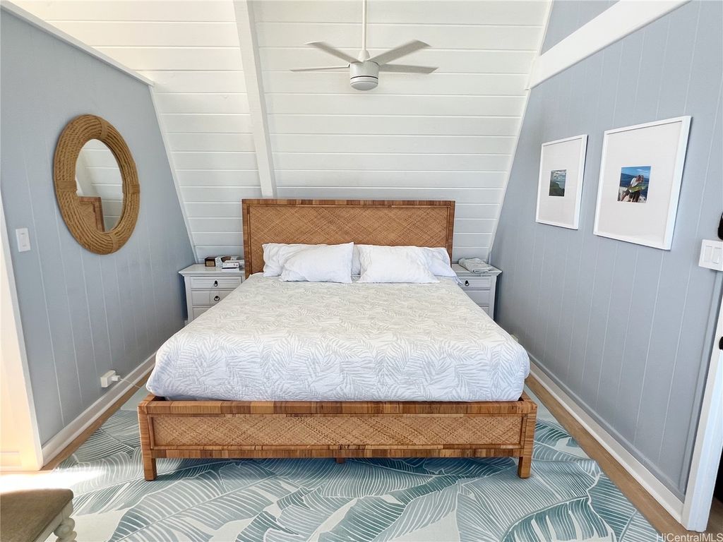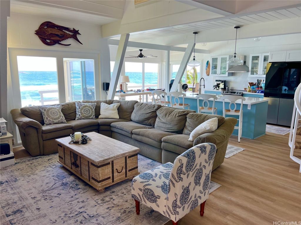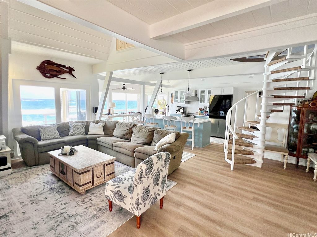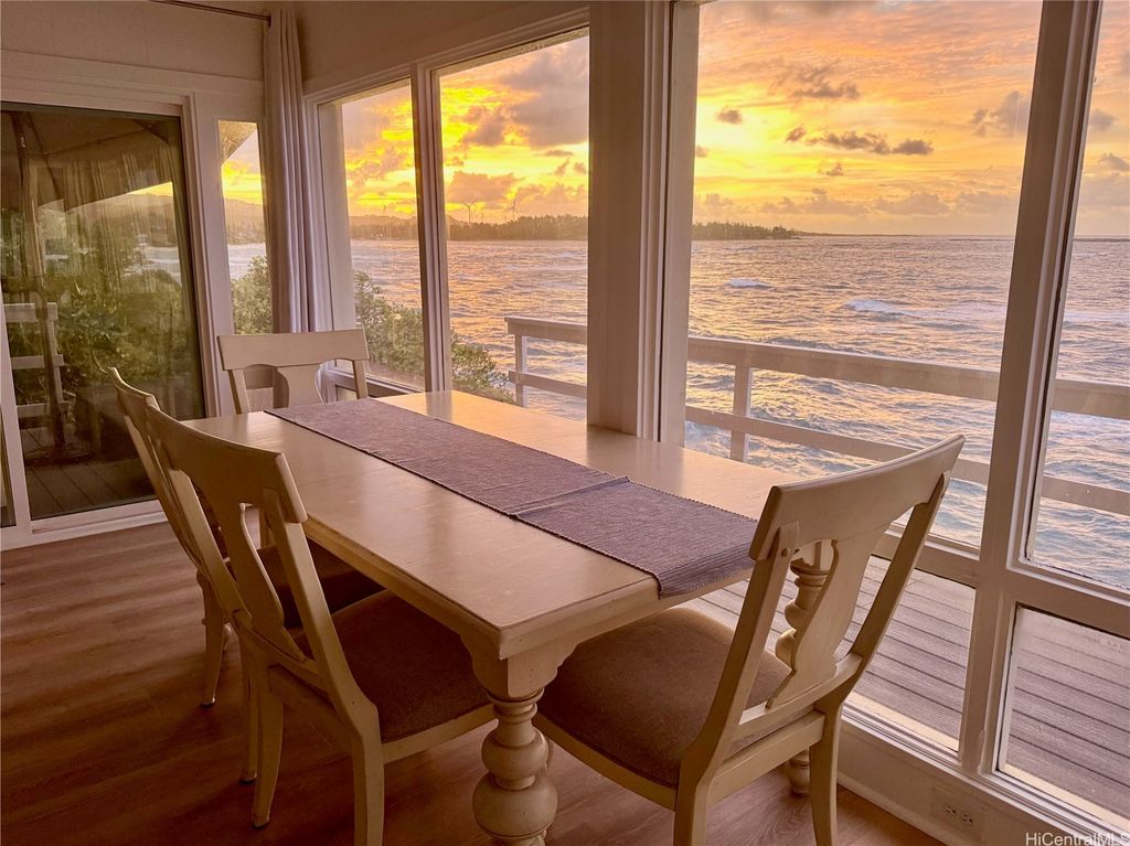 Stunning and gorgeous panoramic oceanviews from every room in this beautifully renovated 3 bedroom 2 bath home on the iconic Laie Point Peninsula. This 2 story A frame home is set back from Naupaka Street and directly overlooks Laie Bay. Dine adjacent to the Pacific, and enjoy unforgettable sunsets from nearly every room in this home. Go to sleep to the sounds of the ocean waves and enjoy incredible oceanviews from the first floor bedroom and the upper level bedrooms. An office nook overlooking the ocean, circular staircase to upper level and a loft that could be multi-purposed, all add to the beauty of this home. Open floor plan and large glass windows make the rooms bright and airy, and the wrap around lanai is wonderful while you watch the sunrise or sunset. While relaxing on the lanai, enjoy watching whales breaching & spouting & manta rays & turtles swimming by. Deeded access to a gorgeous cove beach, close proximity to Laie Shopping Center, BYUH, the Polynesian Cultural Center, & North Shore. The peace & tranquility of this gorgeous home and it's surroundings are wonderful. Very easy to view on short notice.