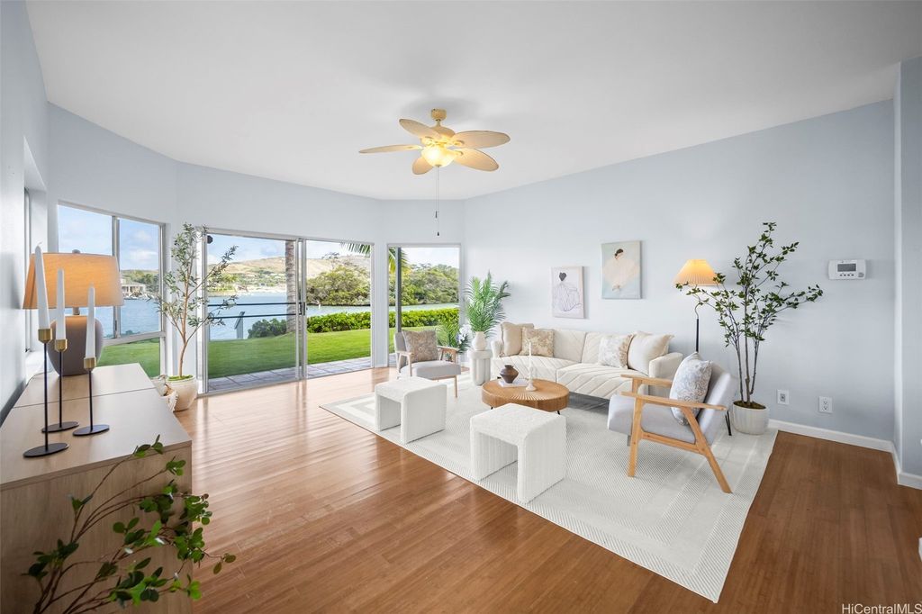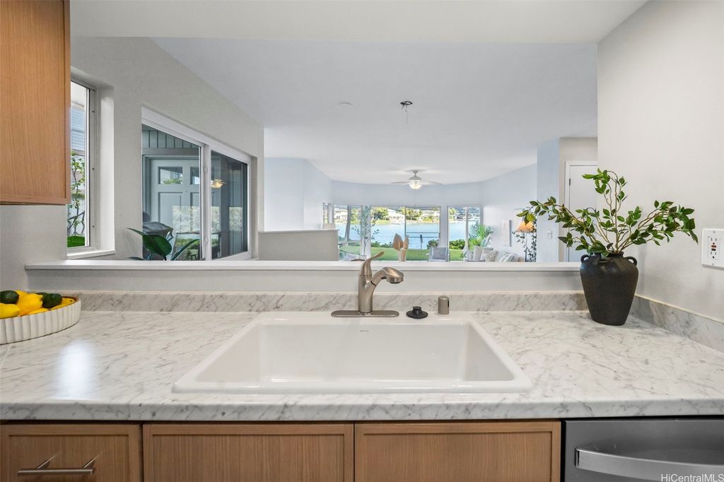 Marina Lifestyle Meets Island Comfort at Mawaena Kai! Live the ultimate waterfront lifestyle in this beautifully renovated 3-bedroom, 2-bath ground-floor townhome in the highly sought-after, gated community of Mawaena Kai. Offering 1,296 sq. ft. of breezy marina-front living, this exceptional unit features stunning panoramic views of the marina from your covered lanai"”perfect for morning coffee or sunset relaxation. Inside, enjoy a stylishly renovated kitchen with new cabinetry, modern backsplash, tile flooring, and a classic white cast iron sink. This unit boasts exclusive direct lawn access to a large grassy area between the home and the marina"”deeded solely for the use of this first-floor residence. Ideal for entertaining or simply enjoying the view. Additional highlights include three parking stalls (1 covered, 2 open), pet-friendly policies and located just minutes from beaches, hiking trails, shopping, dining, and entertainment in vibrant Hawaii Kai. Don't miss the opportunity to live on Oahu's only large private inland waterway with direct ocean access"”an ideal setting for boaters, paddlers, and ocean lovers to embrace marina-front living Hawaii Kai!