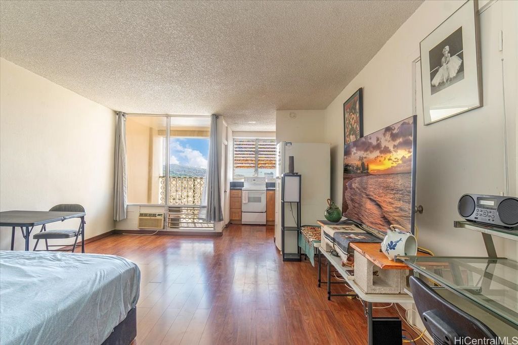 Great Investment opportunity or great value for a first-time home buyer!! Cozy spacious studio located on "Preferred Conner #05 stack". Enjoy the breeze and a mountain view from the lanai. Pacific Grand is well-maintained, secured building located just minute away from the Ala Moana Shopping Center, Don Quijote, all other grocery stores and restaurants, easy access to the bus-lines. Low monthly maintenance fee is currently $482 and covers electricity and internet service!! Community laundry and the trash chute on each floor.
