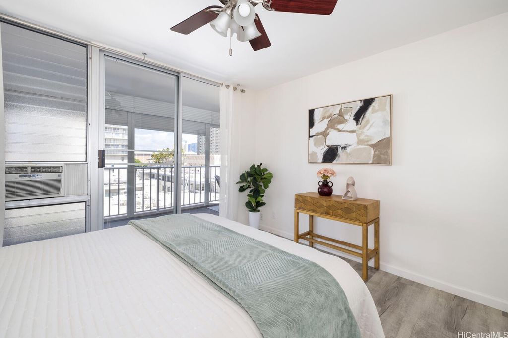 Welcome Home to Urban Paradise in Honolulu. This beautifully maintained 2-bedroom, 1-bath condo is perfectly situated in the heart of downtown Honolulu. From the moment you step inside, pride of ownership is evident. Floor-to-ceiling sliding doors flood the space with natural light and offer seamless access to a spacious wraparound lanai from every room. The open-concept layout is perfect for entertaining, featuring a modern kitchen with stainless steel appliances, tile backsplash, and an oversized bar. Luxury vinyl plank flooring, full-size washer/dryer, & A/C's. The updated bathroom boasts a sleek walk-in glass shower. Step outside onto your expansive lanai and enjoy breathtaking views of the coastline, glittering city lights, and soothing tradewinds"”ideal for relaxation. Atkinson Plaza offers desirable amenities including a rooftop recreation deck, swimming pool, and tennis court. Monthly HOA fees cover cable TV, internet, gas, hot water, and access to all shared amenities. Close Ala Moana shopping, dining, nightlife, and only two blocks from Waikiki Beach perfect for a quick surf or SUP.