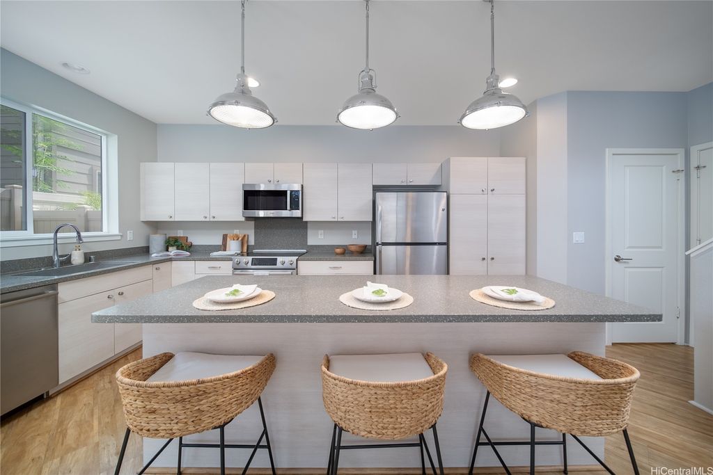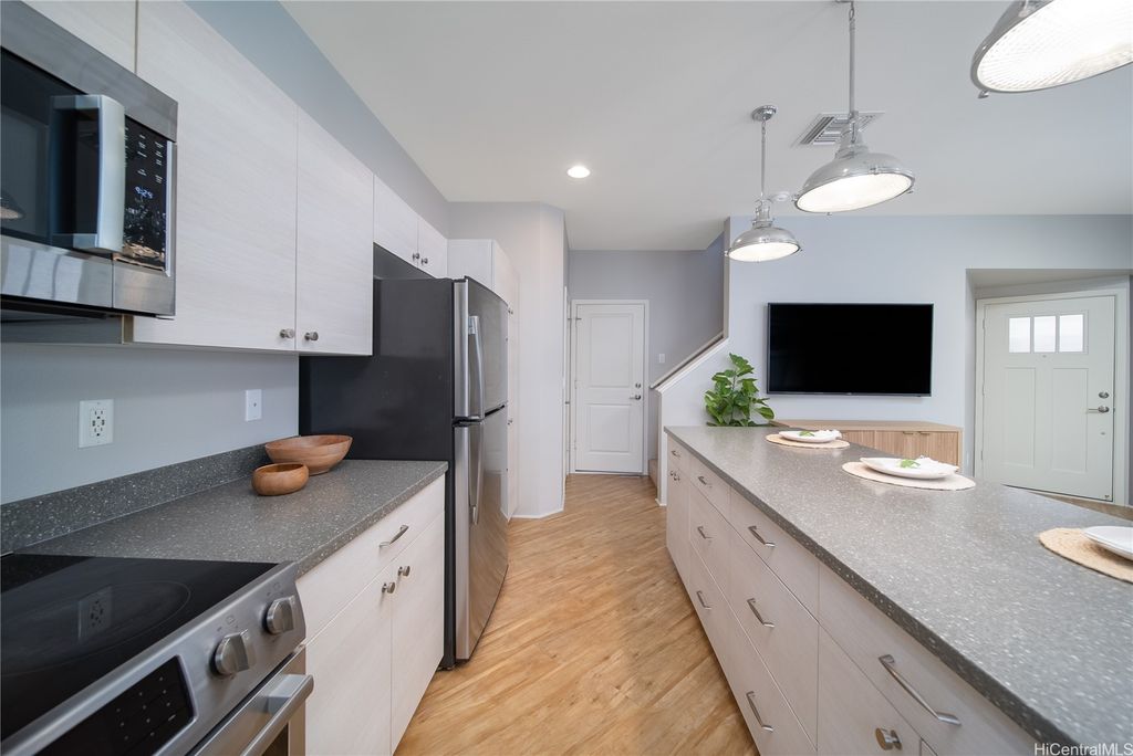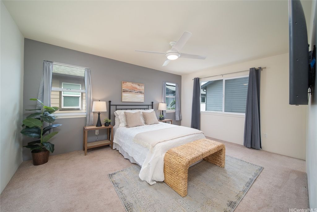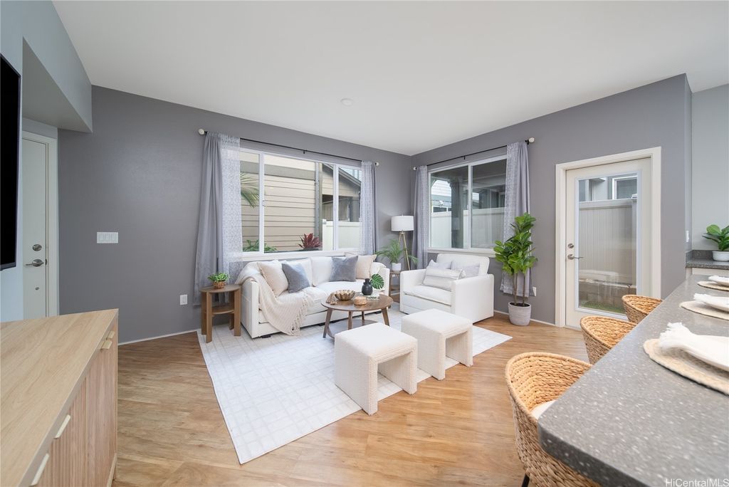 VA Assumable Rate of 3.25%% with PITI 3,887. Loan Balance 755,628. Welcome to this charming 3-bed, 2.5-bath home in Seabridge by Ewa Gentry! Built in 2017, this move-in-ready property features central AC, a 2-car garage, vinyl flooring, INCLUDES 5 Mounted TVs and an open-concept kitchen with stainless steel appliances. Enjoy a private yard and access to the community pool"”all in a great location near schools, shops, and parks. Don't miss out!