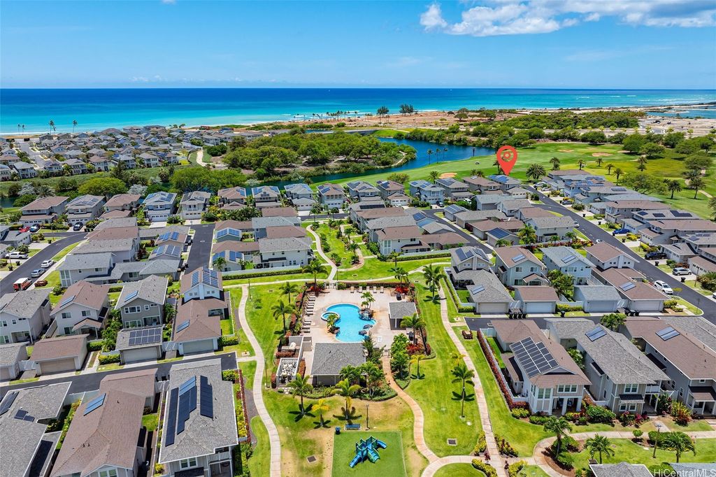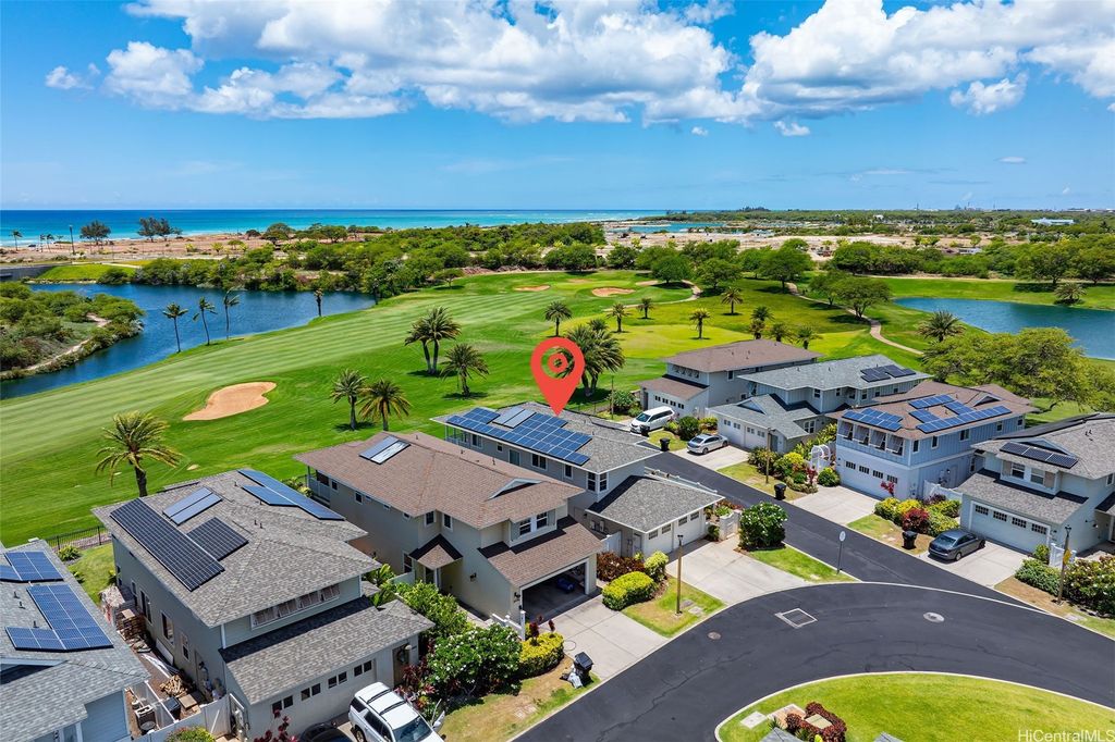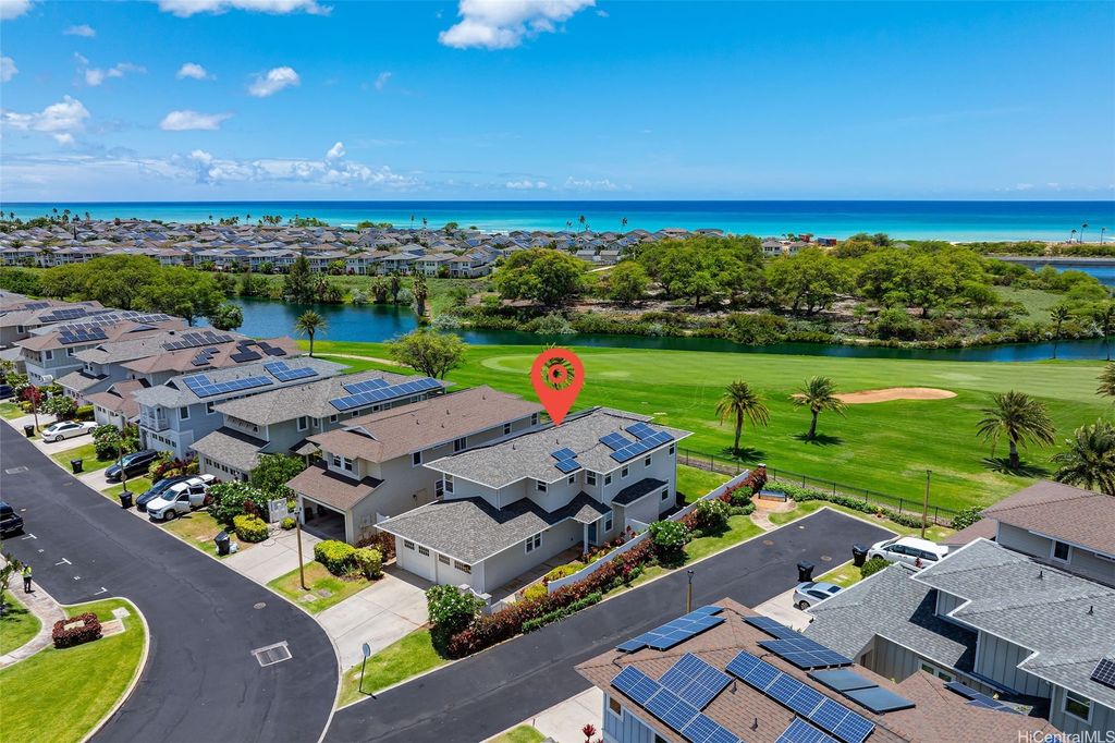 Price changed to sell! plus a $15000 Credit for the buyer to buy down the rate or other purposes at closing. Experience the finest of Hoakalei community living! This stunning corner unit golf course view home in the gated community of Kipuka is nestled on the 15th fairway of the Hoakalei Country Club. Boasting 4 bedrooms, 3 bathrooms, and an upstairs loft/office space, it features engineered hardwood floors, plantation shutters, and a beautifully upgraded kitchen. A new Schlage smart lock ensures convenience and peace of mind, while freshly painted walls and garage add to the home's charm. Enjoy breathtaking golf course, lake, twilight, and Hau Bush Beach views from both levels of the home. Additional features include an Ecobee thermostat and 36 owned/net-metered solar panels for energy efficiency. Step out onto the second-floor lanai and immerse yourself in the beauty of the evening. The community offers fantastic amenities, including a pool, BBQ pits, and a playground"”perfect for relaxation and entertainment.