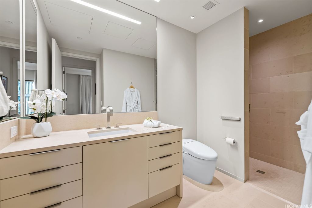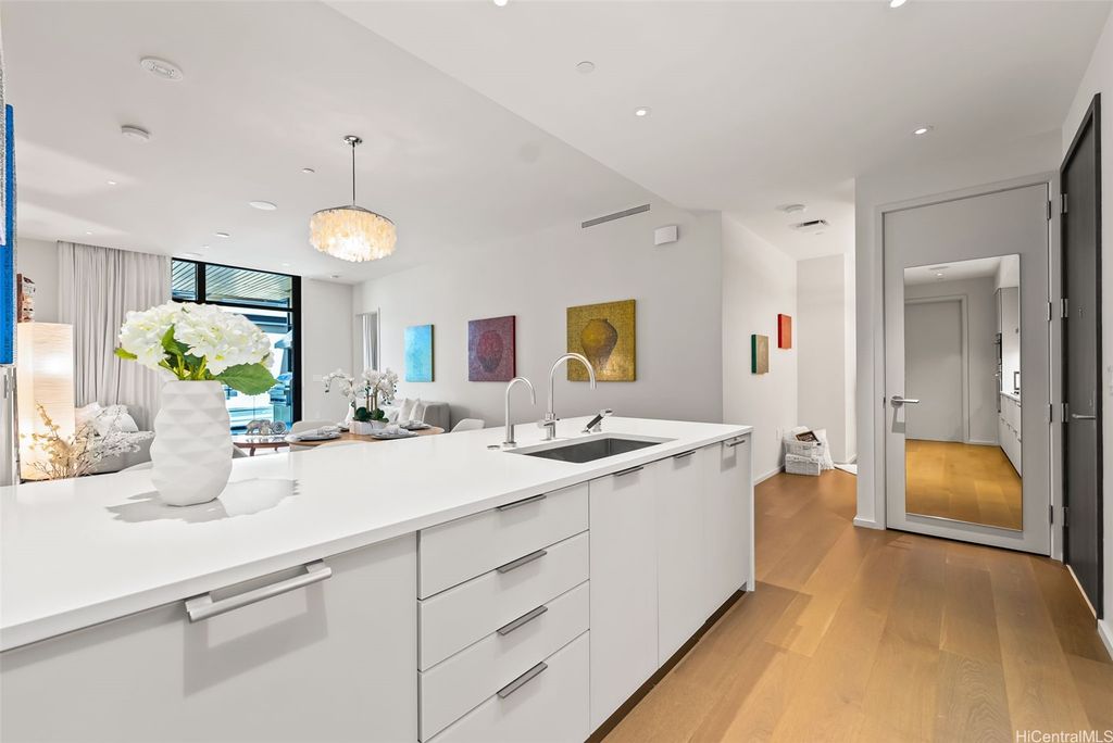 Come home to the ultimate in Hawaii's ultra-luxurious living, with an exceptional range of services, private amenities, and direct access to high-end designer shopping, dining, nightlife, and outdoor activities in the heart of Honolulu. Discover world-class art collections in the timeless serenity of a private sanctuary surrounded by lush island flora. Feel the gracious open-air lobby and enjoy your revitalizing 5-star resort-style life, complete with valet, concierge service, a private theater, dining/party room, chef's kitchen, wine bar, gated dog park, and rejuvenation spa/fitness facilities. This sophisticated, brand-new 2-bedroom, 2-bathroom, 2-parking private Courtyard Residence is ideally located steps from the elevator. Its pristine and sleek designer appliances, atmospheric lighting, and European oak flooring perfectly harmonize with the tranquil ocean sunset view through the floor-to-ceiling window, creating a true art piece. Its assessed value for property tax is $4,567,800. An incredible value! *Monthly Tax Amount is based on 2024 assessment.