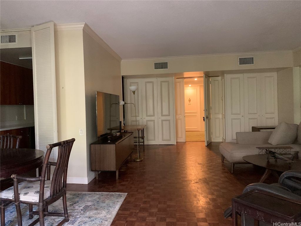 Rare opportunity to live in one of Kahala's premier oceanfront buildings, just steps from the shore and adjacent to a renowned 4-star hotel. This well-appointed 2-bedroom, 2-bathroom residence with one assigned parking stall offers the perfect blend of comfort, location, and value for those seeking flexibility in their living arrangements during these uncertain times. Step inside to find solid teak flooring throughout, adding warmth, elegance, and durability to the entire living space. The open floor plan welcomes you with natural light and gentle ocean breezes, creating a tranquil retreat that feels both spacious and serene. The generously sized bedrooms provide peaceful personal sanctuaries, while the living and dining areas flow seamlessly for relaxed entertaining or quiet evenings at home. Whether you're looking for a temporary residence while evaluating long-term options, or a peaceful place to ride out the ongoing uncertainties of the pandemic, this unit offers convenience and peace of mind. All utilities"”including electricity, water, sewer, internet, and cable"”are included in the maintenance fee.