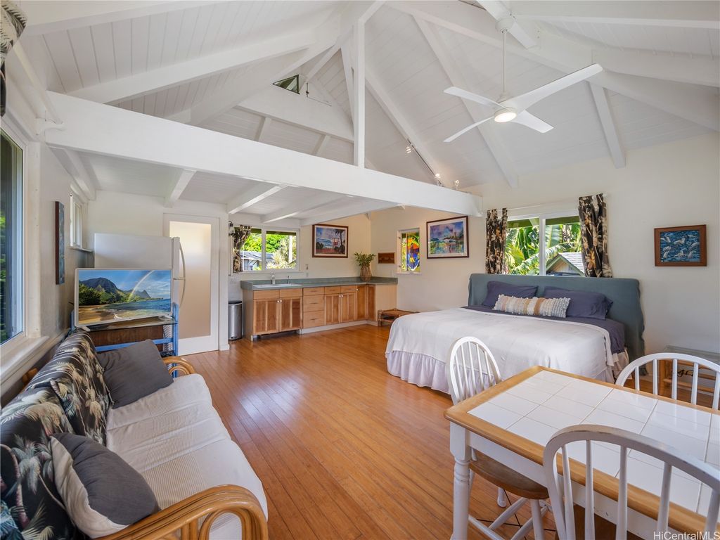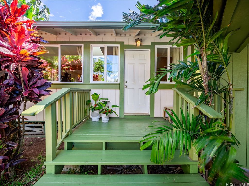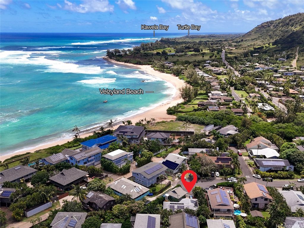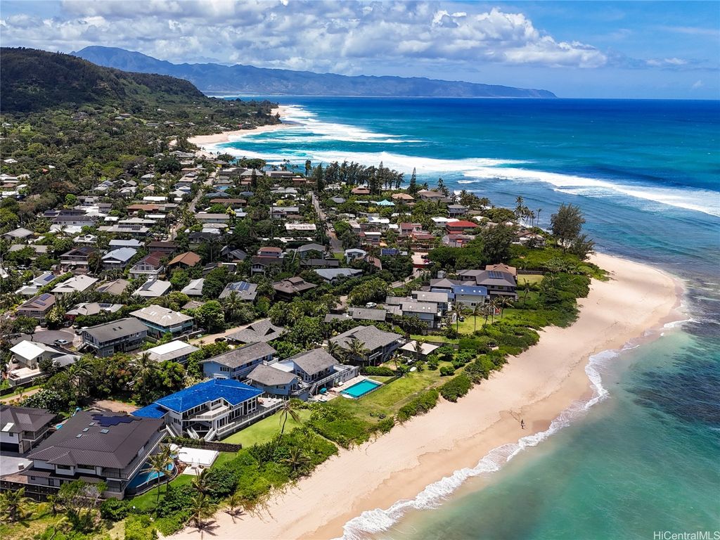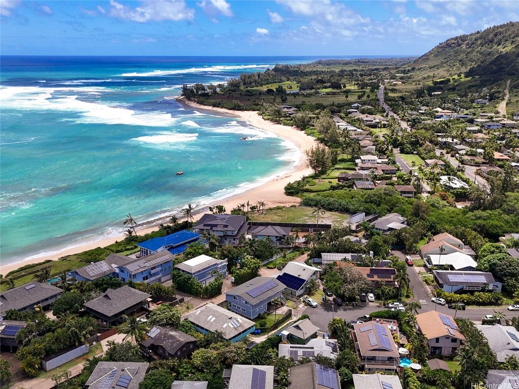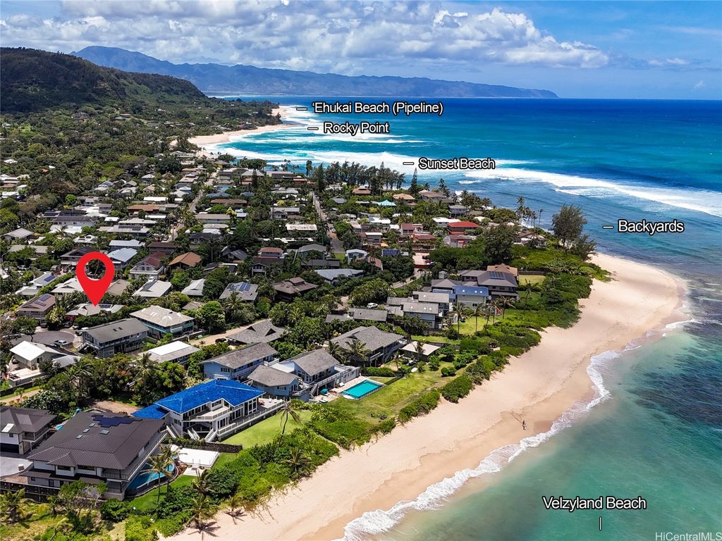 Perfectly positioned in a coveted cul-de-sac between Sunset Beach and Velzyland, this lovingly maintained property invites you to experience the ideal blend of laid-back coastal living and refined island style. Inside, a bright and open floor plan is framed by soaring vaulted ceilings, custom Ohia wood accents, and exquisite Brazilian teak hardwood flooring, bringing warmth, texture, and elegance to every corner. The seamless flow between the living, dining, and kitchen areas makes it easy to stay connected"”whether you're enjoying a quiet evening at home or entertaining friends. Thoughtfully designed for modern flexibility, the separate living area offers the perfect solution for guests or extended family. Outside, lush landscaping wraps around the property, providing both privacy and a serene tropical ambiance. Just steps from the famed North Shore bike path"”stretching nearly four scenic miles from Sunset Beach to Waimea Bay"”you'll enjoy effortless access to legendary surf spots like Rocky Point, Pipeline, and more. Whether you're searching for a peaceful full-time residence or a versatile getaway for your next adventure, this North Shore haven delivers island living at its best.