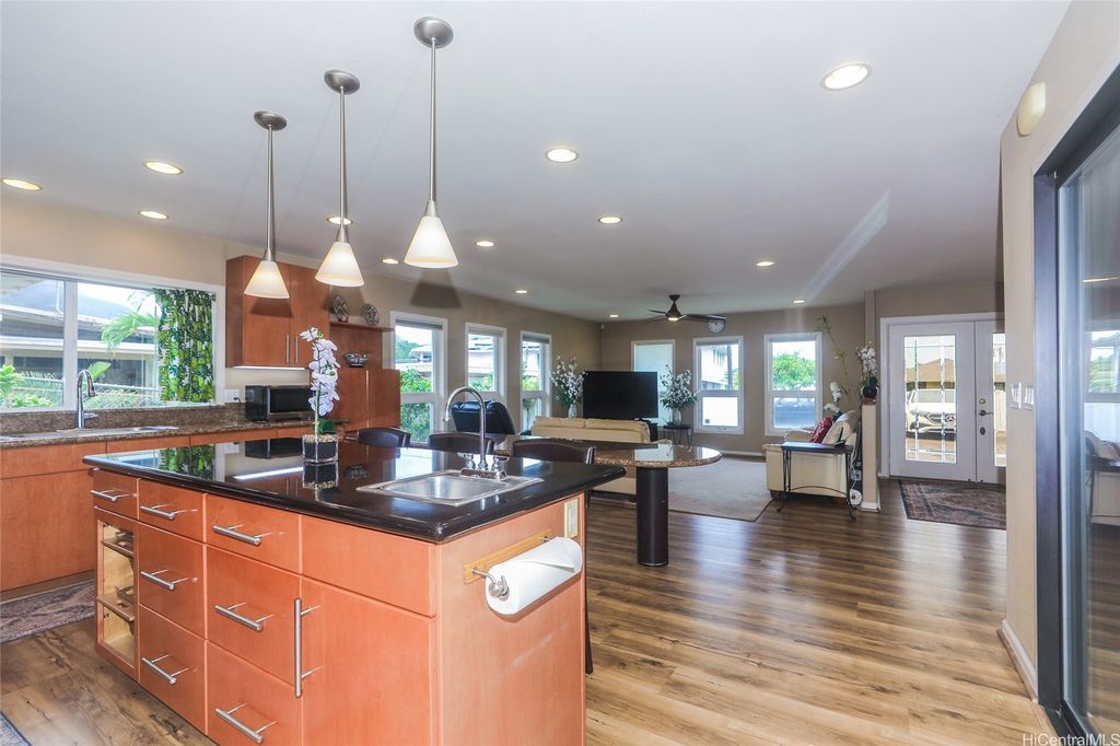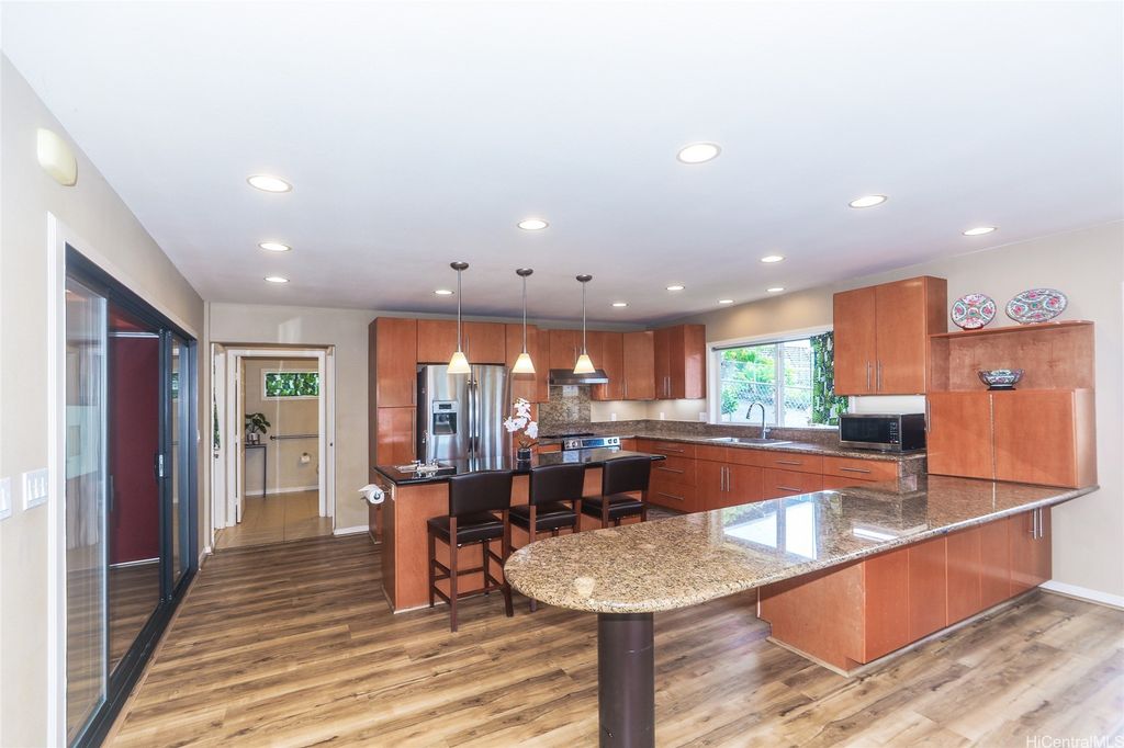 Rarely available and beautifully maintained, this spacious 6-bedroom, 4.5 bath home in the sought-after Kapunahala neighborhood offers island living at its best. Conveniently located near Kamehameha Highway, Likelike Highway and Kane'ohe Bay Drive, commuting and access to town couldn't be easier. Enjoy being minutes from Windward City Shopping Center, Kane'ohe Shopping Center, Windward Mall, restaurants, banks, healthcare facilities and variety of local eateries-everything you may need is just around the corner, you will never go hungry! This move-in ready home features 3 ensuite bedrooms among the 6 total, plus a 3-car garage and additional driveway parking. Stay cool year-round with split A/C in 5 bedrooms, living & dining room, ceiling fans in every room and 42 owned photovoltaic panels for energy efficiency. Additional highlights include a newly painted exterior, a 3-year old roof, a brand new range & range hood and ample space for multigenerational living or entertaining. Don't miss this rare opportunity in one of Kane'ohe's desirable neighborhoods-schedule your private tour today and make this incredible home yours before the holidays! Home is being sold in as-is condition.