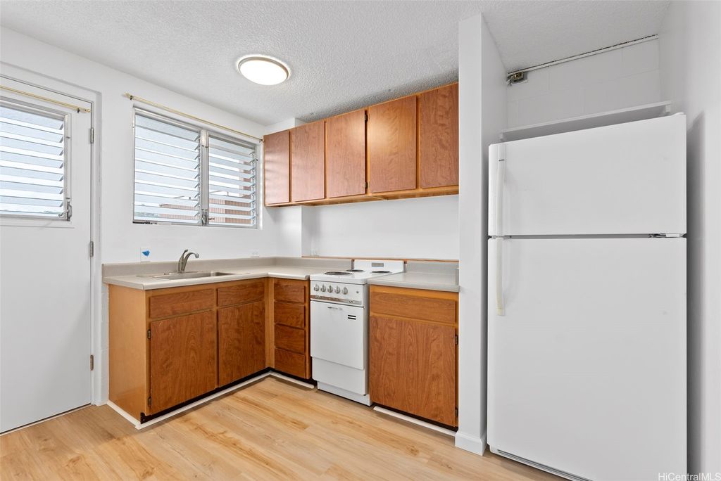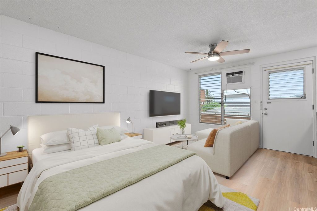 Discover this charming studio/1 bath unit with 1 covered parking in Nalanui in Liliha, perfect for those seeking convenience w/ style! This updated unit boasts fresh interior paint, new vinyl plank flooring, and there's community laundry on each floor. The prime location is just one block from the iconic Liliha Bakery, and just minutes from downtown Honolulu's array of restaurants, diverse shopping, and entertainment options. A few photos have been virtually staged(enhanced).