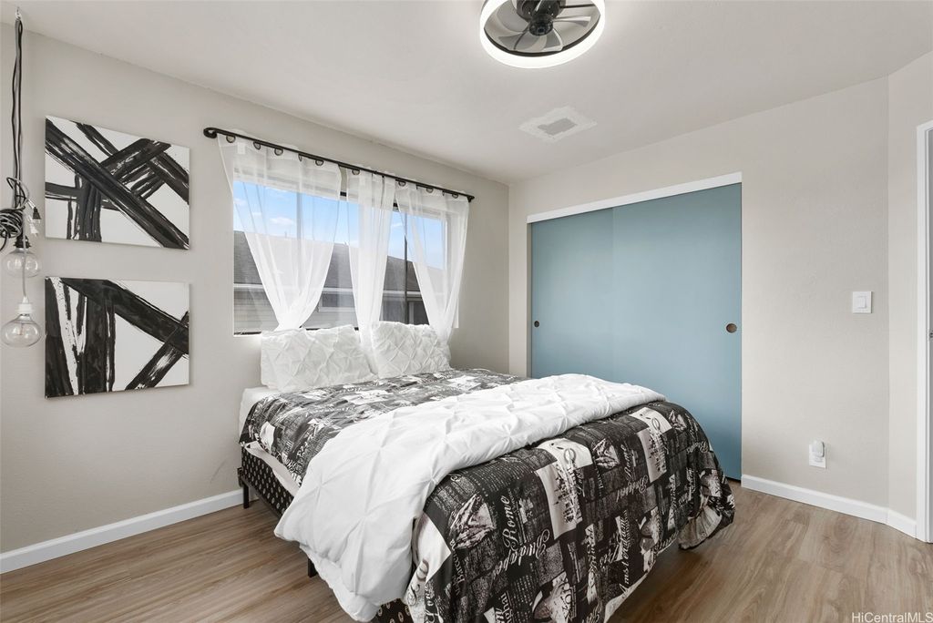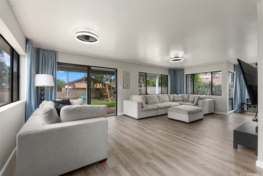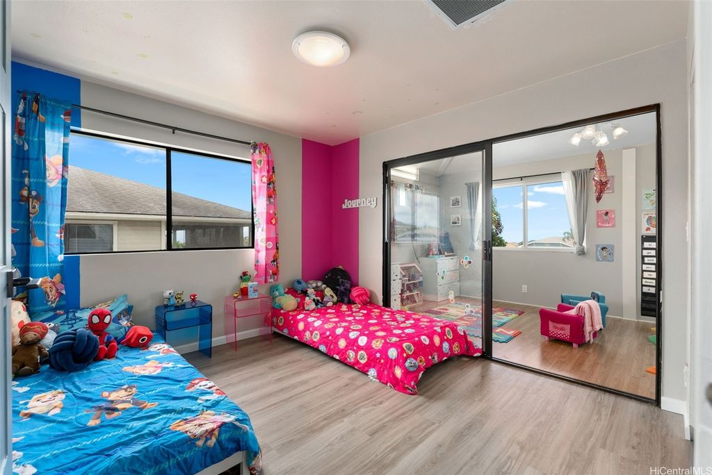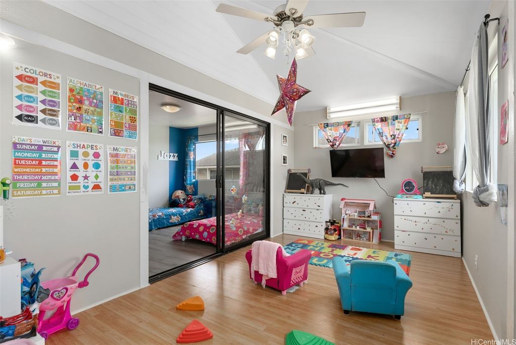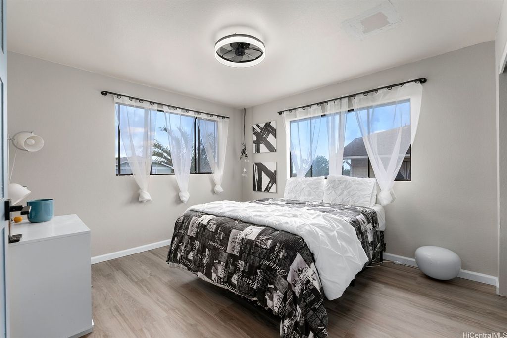 HUGE PRICE ADJUSTMENT! VA ASSUMABLE at 5.5%!! This spacious 4-bed, 2 bath, two-story home located in Makakilo-Highlands boasts 2,182 sq.ft. of living space, and an open floor plan. The home opens to a bright foyer, leading to a generous living area filled with natural light from numerous windows throughout the home. Step outside to an enclosed private backyard lanai surrounded by lush tropical landscaping and large, mature fruit trees-great for pets or children! Upstairs, a multi-purpose enclosed lanai offers incredible flexibility as a home office, gym, entertainment space, or even an additional bedroom. Enjoy year-round cool breezes that keep the home comfortable without the need for air conditioning. Energy-efficient upgrades include a Tesla EV Charger, 2 whole-house fans, a 22 PV Panel system on NET METER, Water Softener, new flooring, paint. Located near restaurants, banks, shopping centers, major retailers, movie theaters, and just a short drive to the beautiful Ko Olina lagoons. Don't miss this rare opportunity to own a well-cared-for home in one of West Oahu's most sought-after neighborhoods!