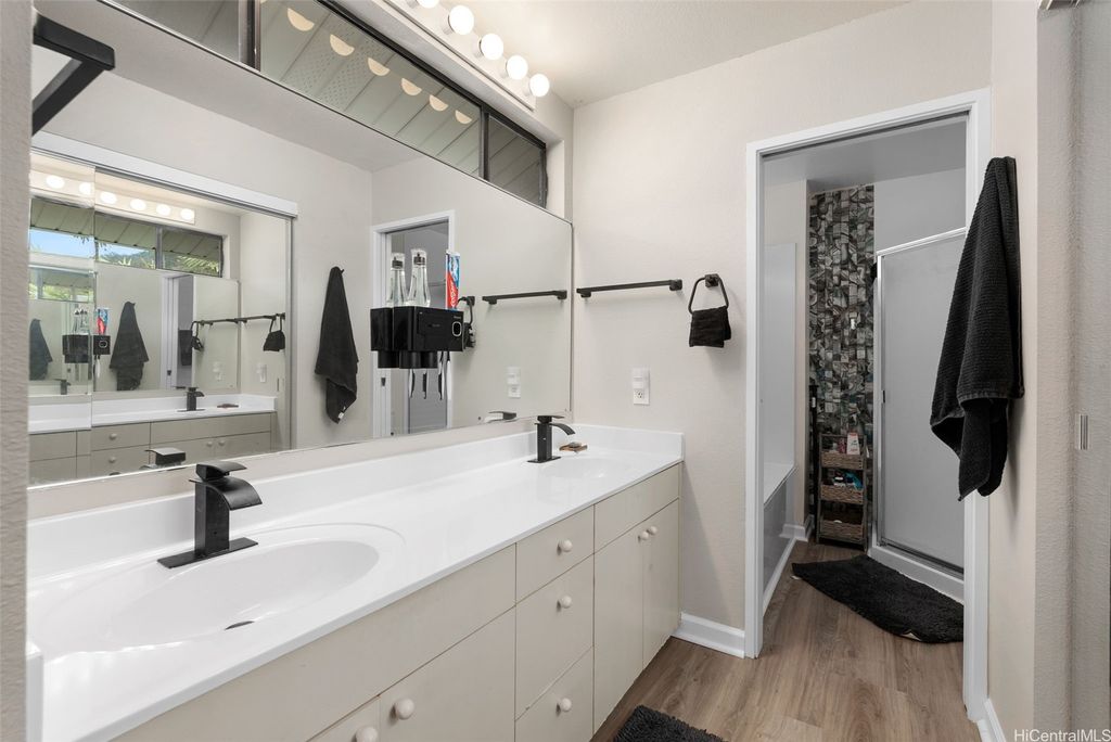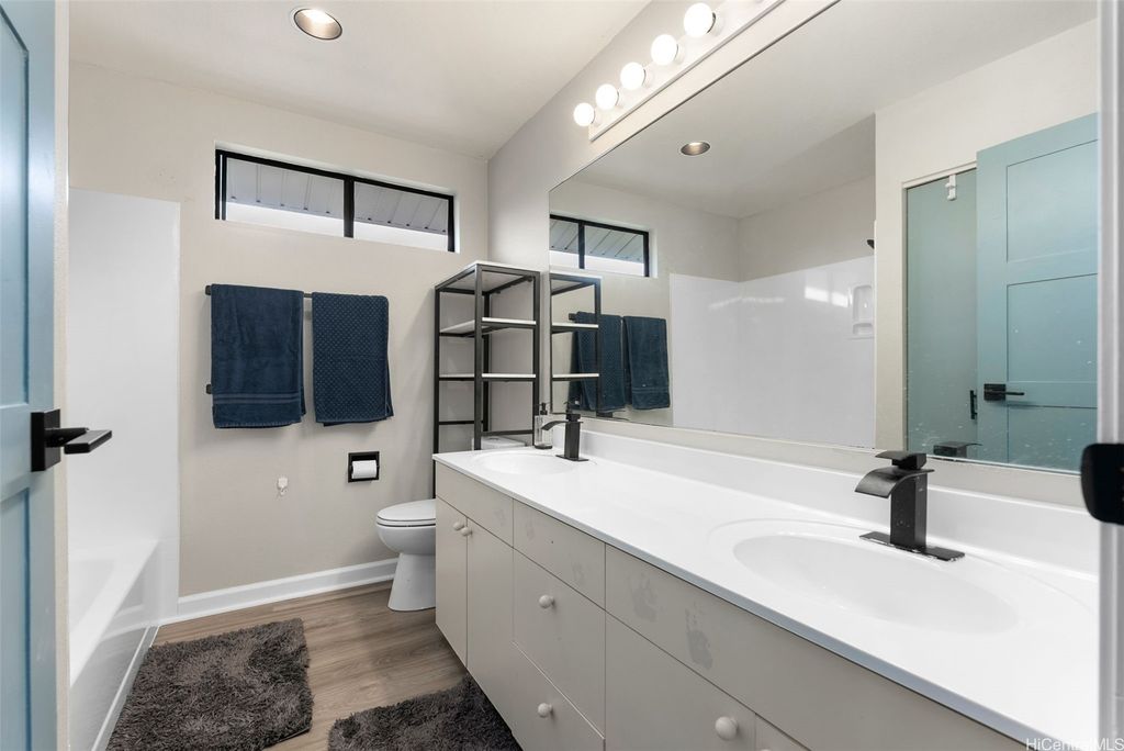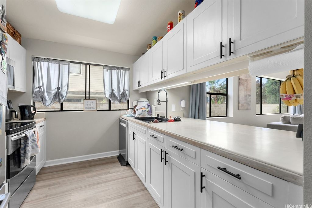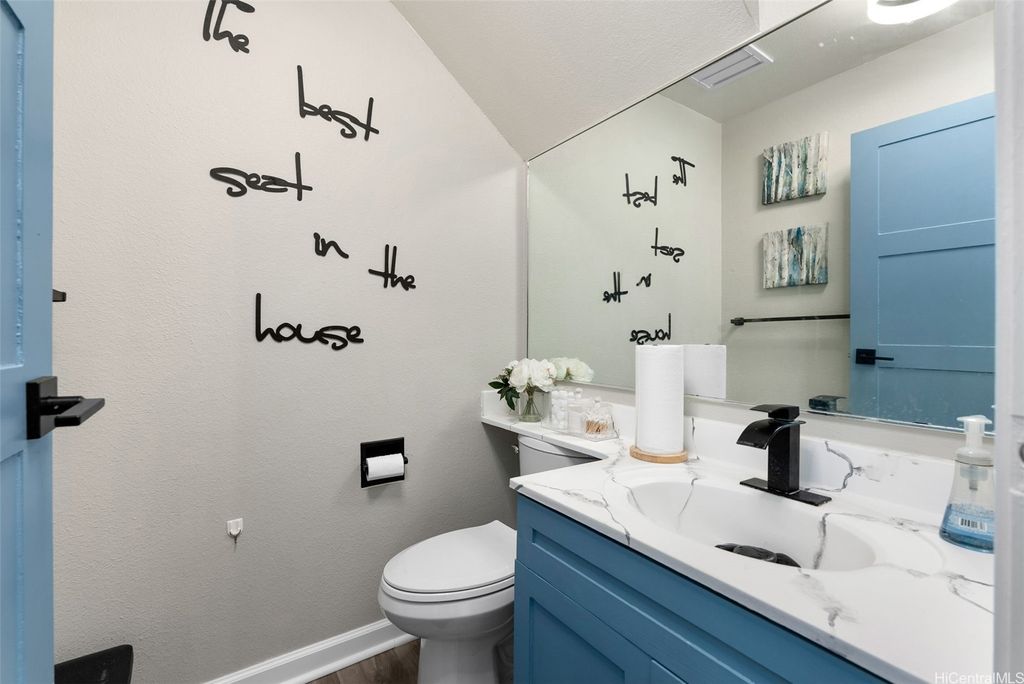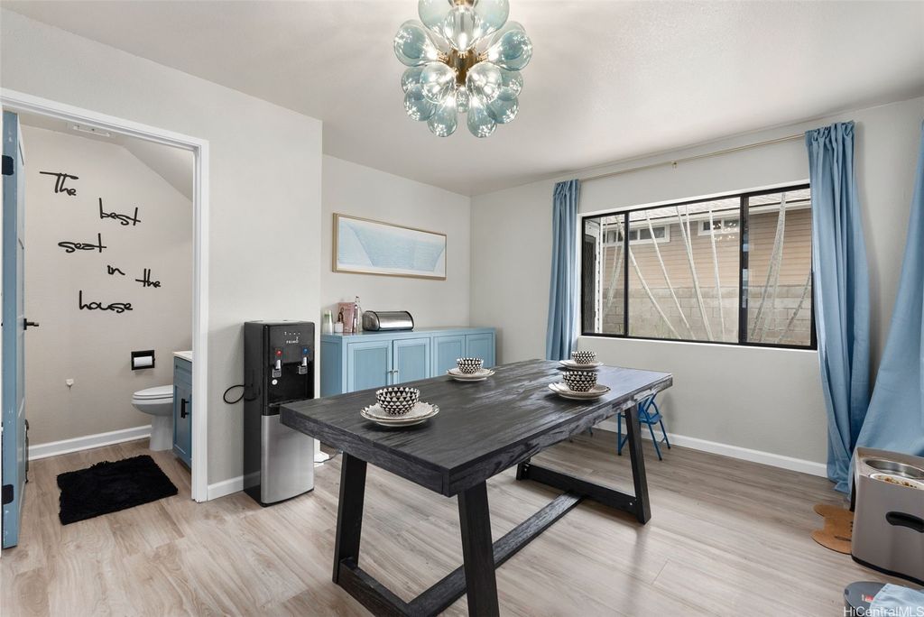 HUGE PRICE ADJUSTMENT! VA ASSUMABLE at 5.5%!! This spacious 4-bed, 2 bath, two-story home located in Makakilo-Highlands boasts 2,182 sq.ft. of living space, and an open floor plan. The home opens to a bright foyer, leading to a generous living area filled with natural light from numerous windows throughout the home. Step outside to an enclosed private backyard lanai surrounded by lush tropical landscaping and large, mature fruit trees-great for pets or children! Upstairs, a multi-purpose enclosed lanai offers incredible flexibility as a home office, gym, entertainment space, or even an additional bedroom. Enjoy year-round cool breezes that keep the home comfortable without the need for air conditioning. Energy-efficient upgrades include a Tesla EV Charger, 2 whole-house fans, a 22 PV Panel system on NET METER, Water Softener, new flooring, paint. Located near restaurants, banks, shopping centers, major retailers, movie theaters, and just a short drive to the beautiful Ko Olina lagoons. Don't miss this rare opportunity to own a well-cared-for home in one of West Oahu's most sought-after neighborhoods!