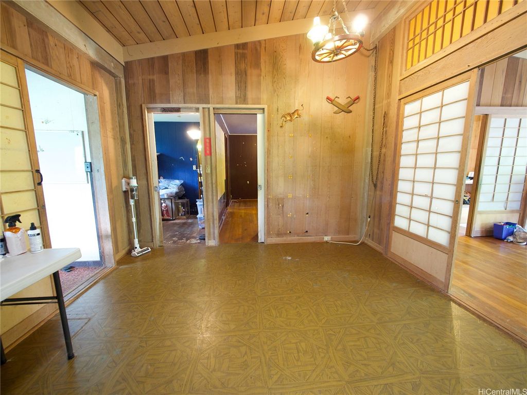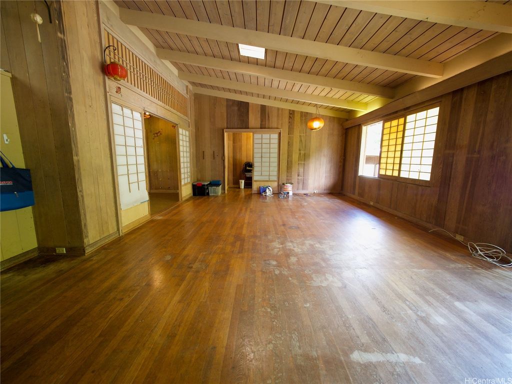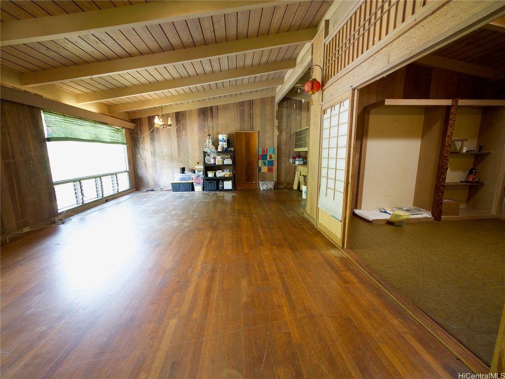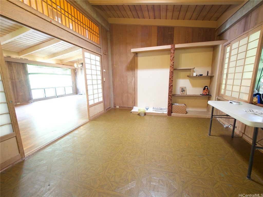 Highly desired, rarely available "one of a kind" mid-century Home in "Carlos Long" subdivision of Palolo, feels miles away in a by gone era, yet close to amenities & urban life of Honolulu, Oahu. Original Owner, lovingly custom-built this spacious 5/2/2-carport PLUS a tatami-like area w/ Shoji-style sliding doors that served as Kung Fu/training room (records show 3 bdrms). Impressive LARGE open "great room" Living Area showcases Solid Lumber open Beams and high Vaulted Ceilings, literally a work of art! Lush green, quiet Mountain Views of Palolo Valley abound, well-placed Skylights give soft natural light throughout, and all combine to tranquil Home setting. Solid Hollow Tile Concrete & Wood construction, built-in Shelves, Cabinets, big Master Bath w/ His/Hers Vanity & Sink areas, and Large "furo"-style tub w/ Windows. Big 2nd Bath Windows face Diamond Head, so bright and well ventilated. Possible multi-family living, enough flat usable land to expand some. Minutes to Schools incl. UH Manoa, Palolo Valley Rec Center, shops/restaurants of Kaimuki, Kapahulu. New Owner can take it to next level! Showings by Appt. only; Please do NOT disturb Occupants. ALOHA!