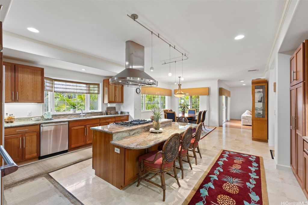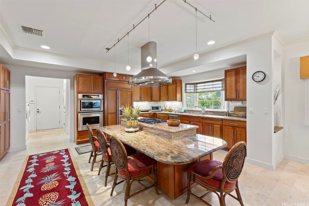 An award-winning residence in the prestigious Kahala neighborhood finely constructed with attention to detail and quality. This single level home of 3-bedrooms, 2 full baths & 2 half baths blends modern elegance with timeless Hawaiian charm, offering an easy and comfortable living experience. The chef's kitchen is equipped with Thermador and Sub-Zero appliances, custom cabinetry, and a large countertop, ideal for culinary creations and gatherings. The open-concept living spaces, high ceilings, and seamless indoor-outdoor flow, are perfect for entertaining. The level lot showcases a landscaped garden and a spacious lanai, creating a private retreat for enjoying Kahala's idyllic climate. Equipped with a fully owned PV system, central air conditioning, pre-wired speakers, and a generously sized garage. Located in the heart of Kahala, minutes from world-class beaches, Kahala Mall, Waialae Country Club, and top-rated schools, providing both tranquility and convenience.