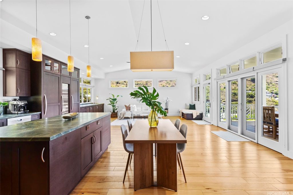New offering at $2,258,000. Newly staged and beautifully presented, this 3-bedroom, 2.5-bath Aina Haina residence blends comfort, efficiency, and style. With LEED Platinum certification and thoughtful design, the tri-level layout captures natural light and sweeping mountain-to-ocean views. The main level highlights a chef's kitchen with professional-grade appliances, hardwood floors, and open flow to bright gathering spaces. Upstairs, the private primary suite offers its own lanai, walk-in closet, and spa-inspired bath. Two additional bedrooms downstairs provide flexibility for guests, a home office, or hobbies. A covered lanai and landscaped surroundings extend your living outdoors. Located minutes from beaches, shopping, dining, and schools, this home offers both serenity and convenience. With fresh staging and photography, it showcases its move-in-ready appeal and is ready to welcome its next owners.