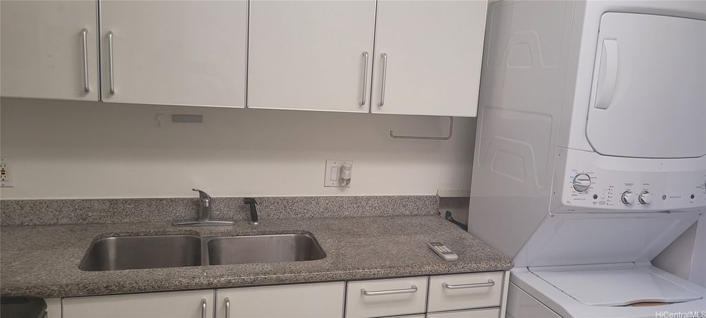 Motivated Seller! Great Starter unit or Investment Opportunity in TOWN! With only 4 units per floor, Secured Entry with intercom, combined with a lower Maintenance Fee...Desirable? YES, and it's Pet Freiendly! Come take a look at this Rarely Available Corner End unit 2 bedrooms with a Washer and Dryer and a spacious Lanai.Your new home features upgraded Custom Cabinets, Granite Counter Tops with SS Range/Oven including Microwave Hood Fan for the Kitchen, Tankless Water Heater, and Split A/C plus Double Paned Windows and Lanai Doors in the Living and Bedrooms. Modestly priced under $400,000 for this conveniently located unit in close proximity to bus transportation and freeway access.
