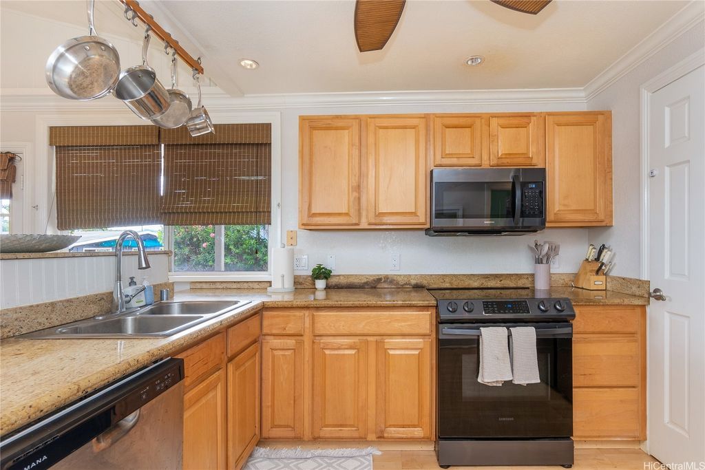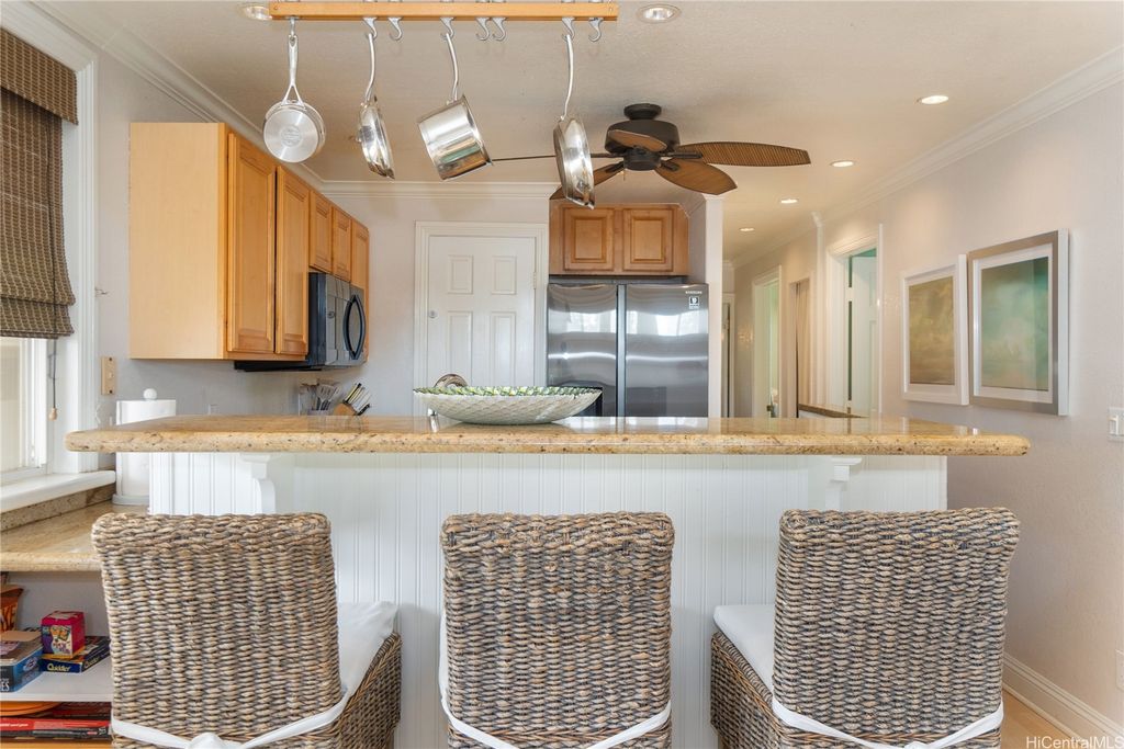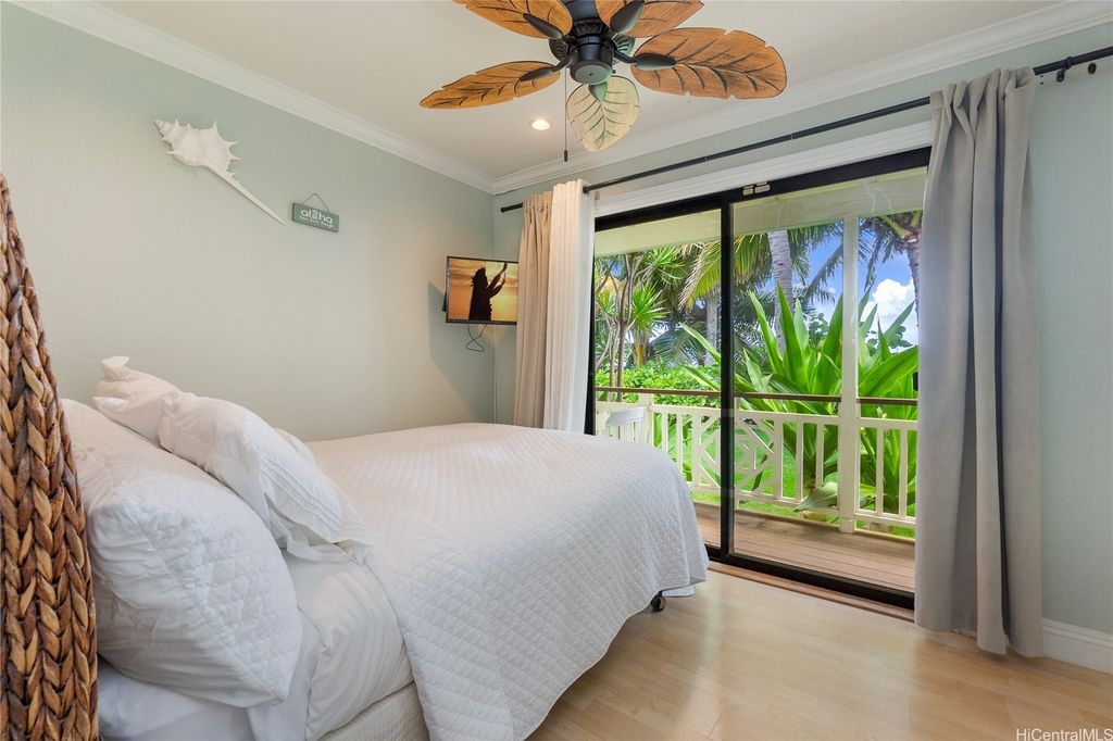 North Shore Luxury Living Rare 95' of Beachfront Bliss. Tucked away on a quiet stretch of Waialua coastline, this beautifully renovated and fully furnished beachfront estate offers 95 linear feet of pristine white sand and unobstructed ocean views. The main residence features 3 bedrooms and 2 full bathrooms, showcasing vaulted tongue-and-groove ceilings, Pella windows, rich Pergo flooring, and a sun-filled open concept living space designed to capture endless mauka-to-makai breezes. A chef's kitchen awaits with sleek granite countertops, glass block accents, and stainless steel Jenn-Air appliances, perfect for preparing meals to enjoy on the expansive ocean-facing lanai. Just steps from the main home is a charming detached studio cottage with its own bathroom and kitchenette, ideal for guests, extended family, or use as a home office or art studio. Located just 2 miles from Hale?iwa town. Ample parking, an additional outdoor storage room with bath, and over 9,800 sq. ft. of land, this property offers a rare blend of function, flexibility, and North Shore elegance. Showings by appointment only.