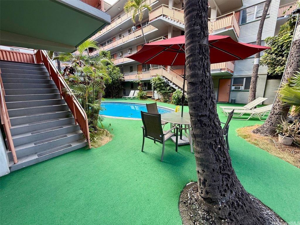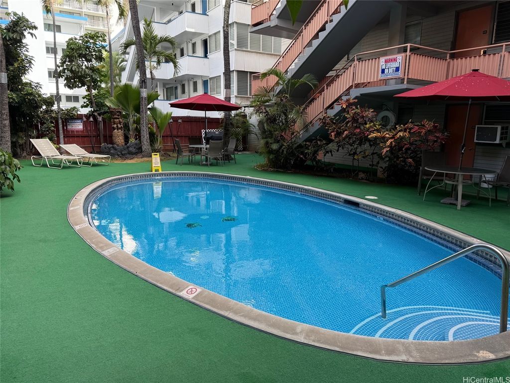 Notable investment opportunity in the iconic Hawaiian King building, located in the heart of Waikiki on coveted Nohonani Street! This first-floor 1-bedroom, 1-bathroom unit offers tremendous potential for the savvy buyer ready to customize their piece of paradise. Sold unfurnished and requiring updating, this property presents incredible value in one of Waikiki's most desirable locations. The Hawaiian King features old-world charm with a central courtyard, swimming pool, BBQ area, community laundry, and secured entry. Just two blocks from world-famous Waikiki Beach and steps from Kalakaua Avenue's premier dining, shopping, and entertainment. Half block to International Marketplace and less than a mile to Honolulu Zoo, Waikiki Aquarium, & Kapiolani Park. Excellent bus access makes island exploration effortless. This leasehold property requires cash purchase with lease expiring 2036. Mixed-use zoning allows flexible rental options for future income potential. Perfect for investors or those seeking an affordable entry into Waikiki's premium real estate market. Bring your vision and transform this diamond in the rough!