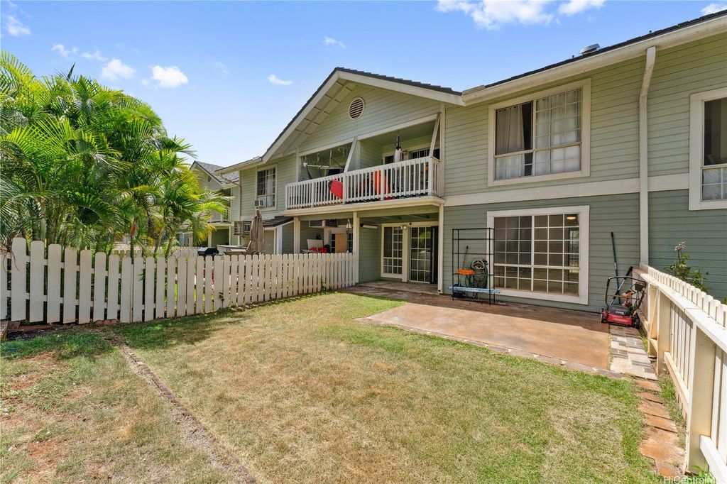 Welcome to your dream home at 94-1467 Waipio Uka St #T103, a charming 2-bedroom, 2-bathroom single-level townhome in the heart of Waipio Gentry! Spanning 797 sq. ft., this pet-friendly ground-floor unit boasts a spacious, fully fenced yard"”perfect for outdoor relaxation, entertaining, or letting your furry friends roam freely. Step outside and enjoy the renowned Waipio Walking Path, ideal for morning jogs or leisurely strolls amidst lush surroundings. Convenience is key with this prime location, just minutes from the H-2 freeway, Costco, Waikele Premium Outlets, and a variety of dining and shopping options. The Villages at Waipio community enhances your lifestyle with amenities like a swimming pool, playground, and car wash area. Inside, the home features vinyl plank flooring, in-unit laundry and fresh paint job. Don't miss this opportunity to own a slice of paradise in a vibrant, accessible neighborhood. ***Assumable VA Loan at 5.125% with a low gap***